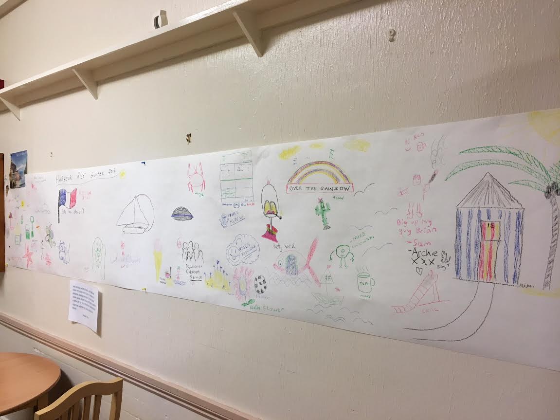 We have a mural on our dining room wall which we are encouraging everyone to draw a picture on, the NCS group added some pictures to this.