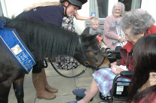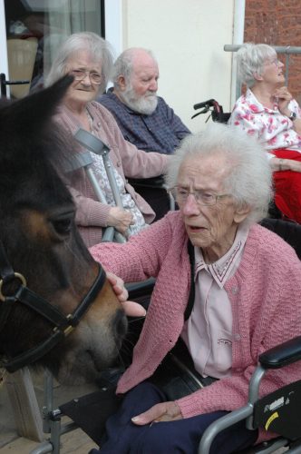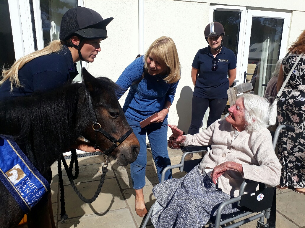 Following our wonderful visit from April and Mare and Foal Sanctuary on Friday 7th September, we are now able to let you enjoy some wonderful photos! What an amazing event this was, April truly enjoyed spending positive time with our residents who could not wait to get a little bit of therapeutic time with our Dementia Friendly Pony.