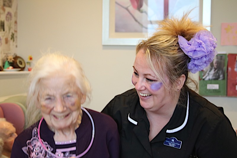 “Amanda was our official entertainer. For the occasion, we dressed in purple, wore purple make up and purple flowers in our hair. Our residents really enjoyed being part of this event and raising awareness of Dementia. We had fun!”