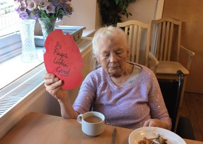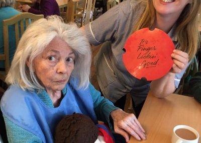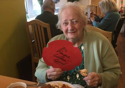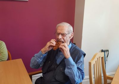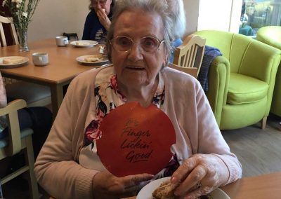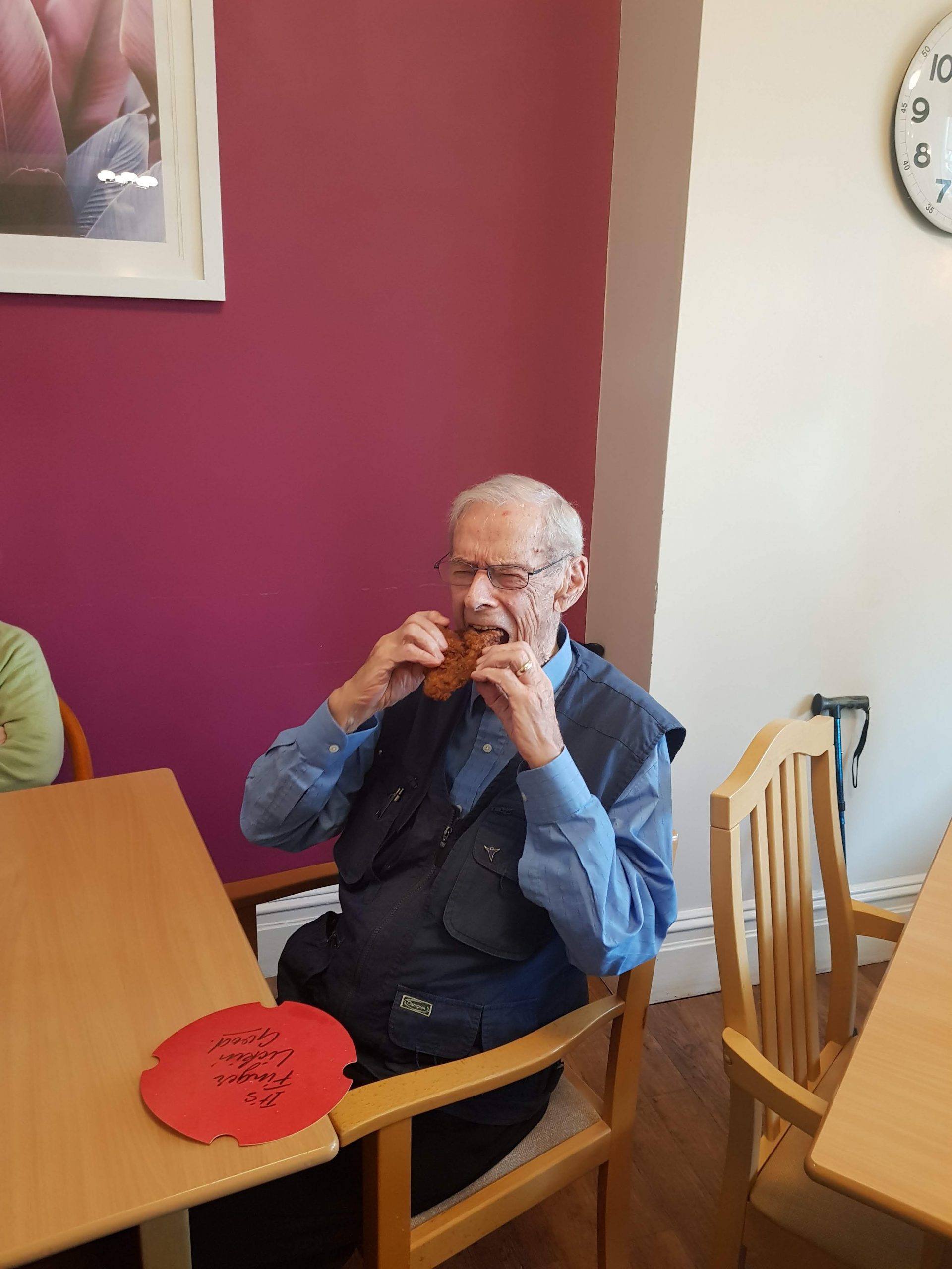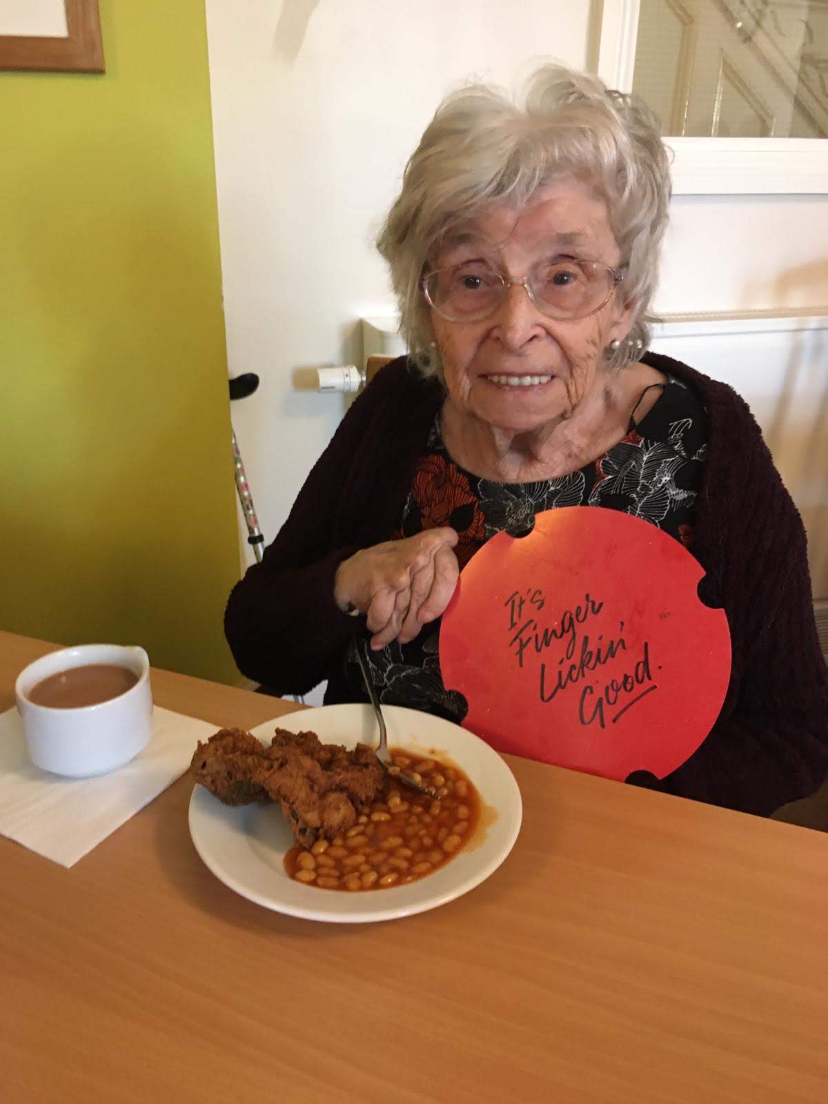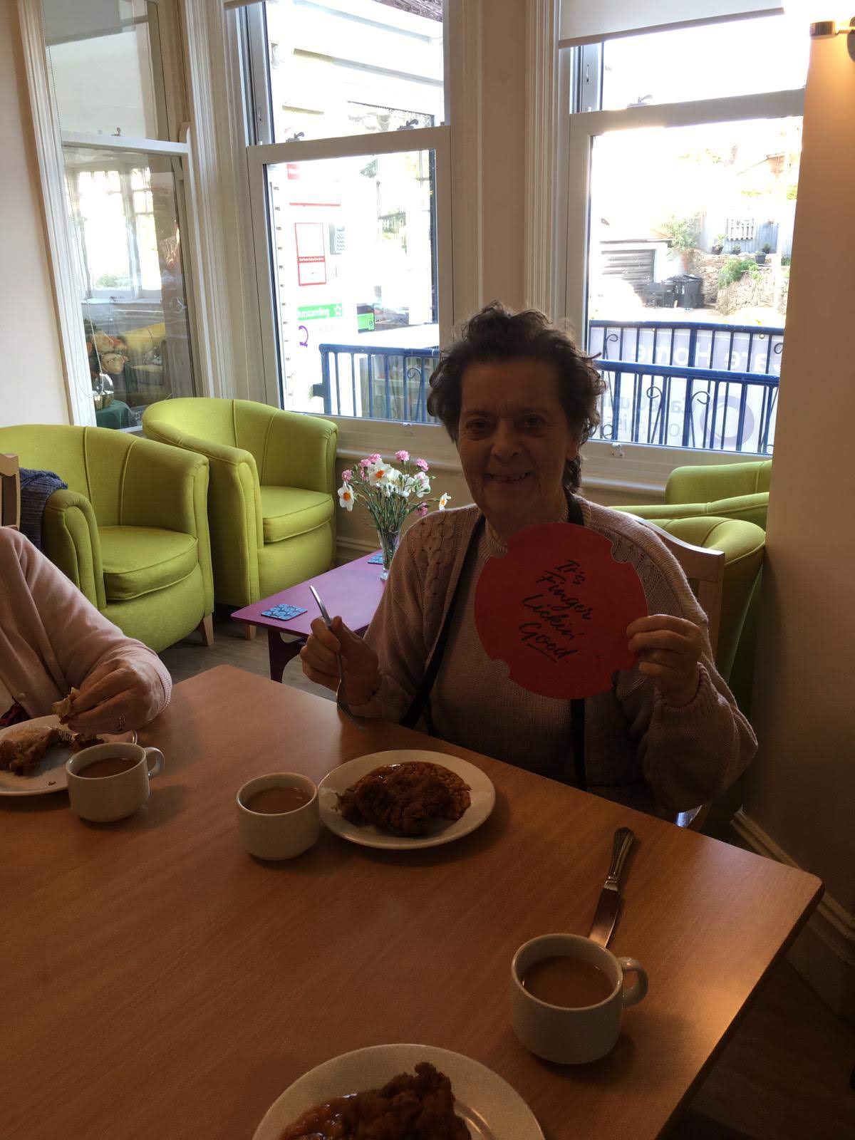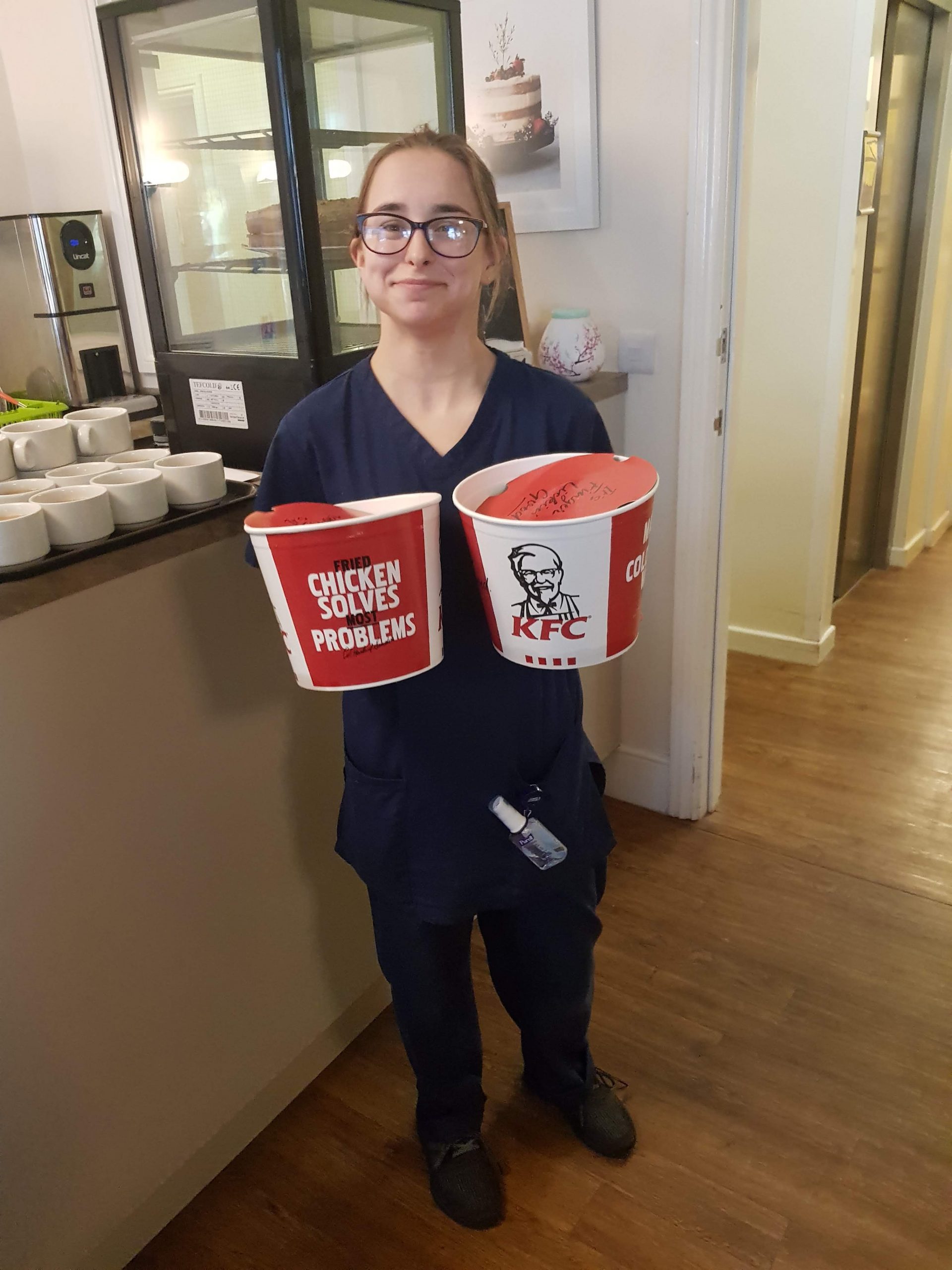 We received an unexpected call from KFC Tuesday afternoon to ask how many residents and staff we have and that they would like to donate us some chicken. Of course we said Yes. This was delivered to the door cooked and ready to eat. And as you can see by some of the residents faces they loved it and one resident kept saying that it was “finger licking good”. Another told me that she had never had this before, dived in and went back for seconds. It was a real treat. And some are still talking about how lovely it was now.