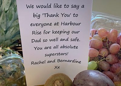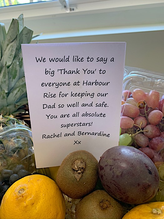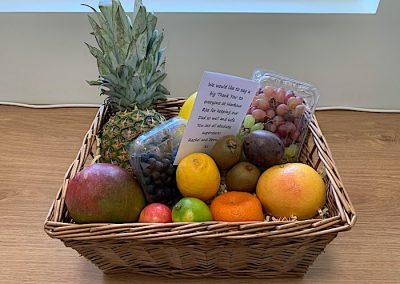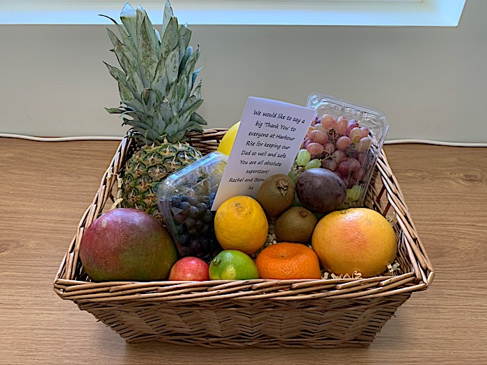 Thank you to Bernardine and Rachel, John’s daughters for sending a gorgeous fruit basket to cheer our staff up. We are looking forward to our healthy fruit salad!!
