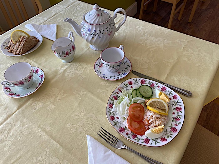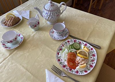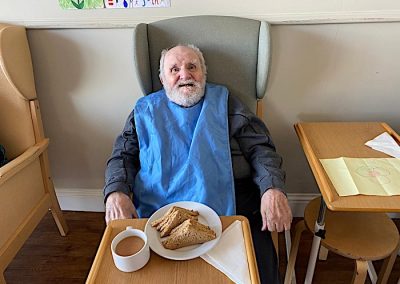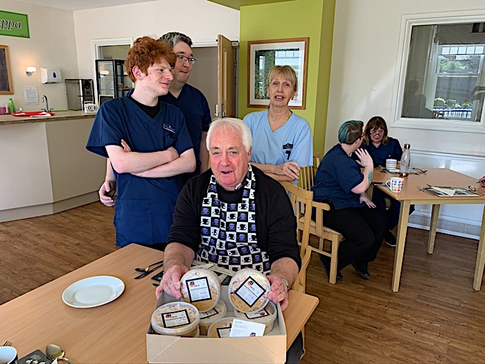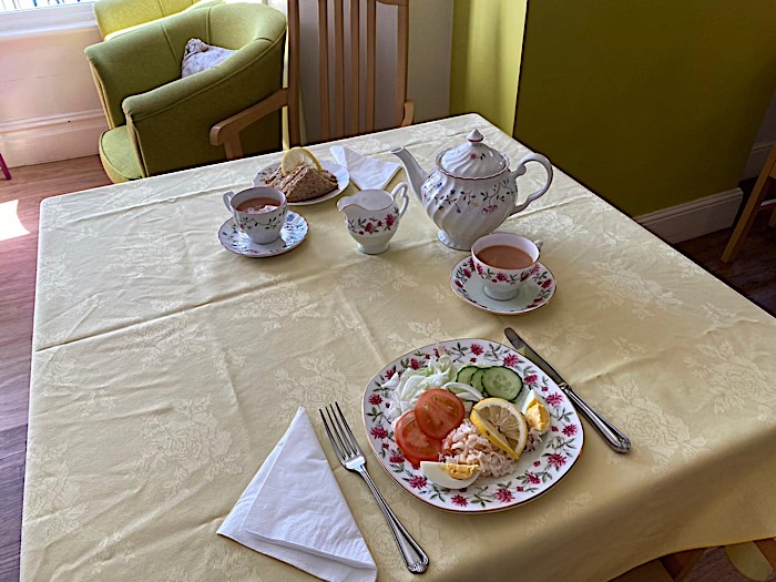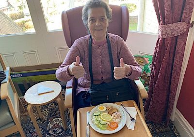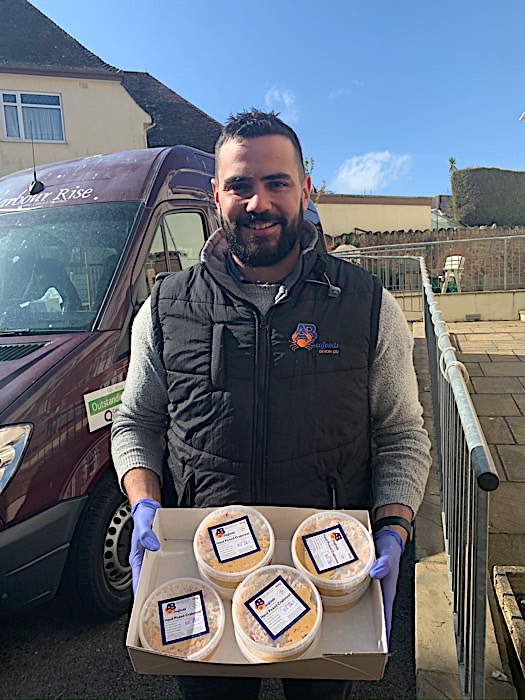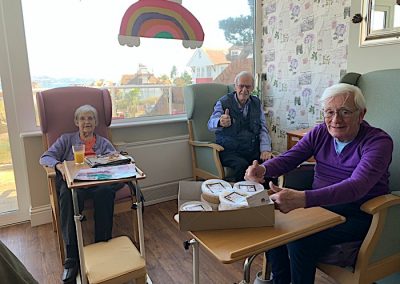 We have had an exciting weekend where we have had a delivery of fresh… CRAB! Some of us – me – got very very excited indeed! Dylan and Peter work for Dartmouth Crab Company Ltd and deliver the fresh crab to Adam who works for AB Seafoods Devon Ltd. AB Seafoods prepares the crab for us to eat and enjoy. What a lovely gesture guys, thanks so much! It was hard to keep our distances on the photos but we did manage it! Needless to say it was a wonderful surprise by all. I presented the fresh crab to the residents who got excited. Thank you to Al for preparing a lovely afternoon tea with Crab sandwiches!! You will notice on the photos that we all had our crab differently, what is your favourite way?