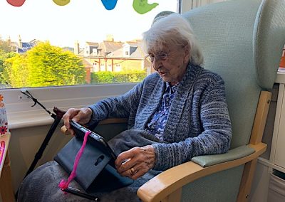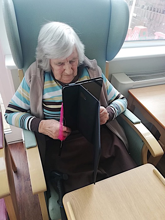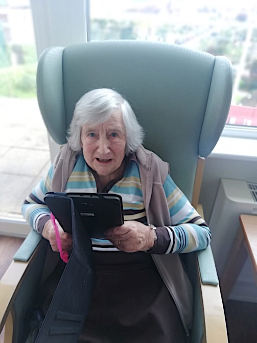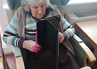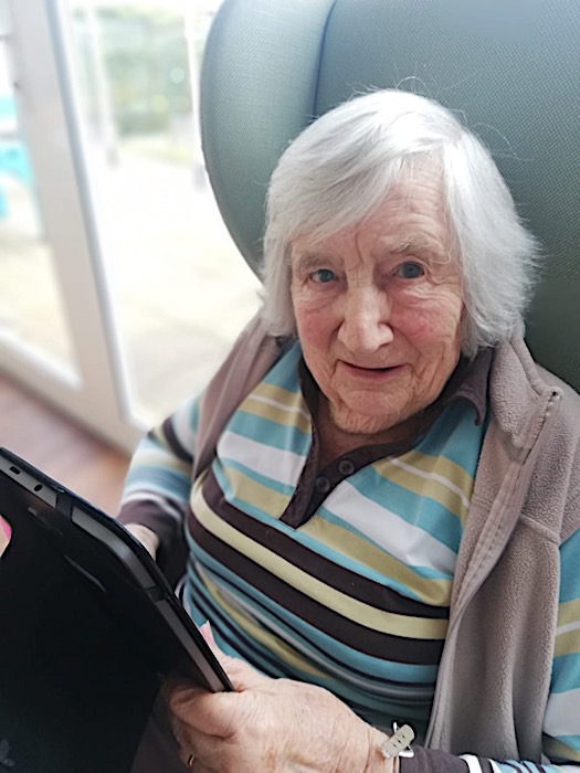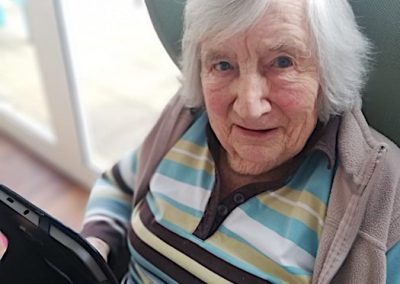Skype has been a great success for us to link some of our residents and their families this week. I have personally been so moved to see the total happiness expressed on your faces while holding the tablet. It was so touching to hear you all say “don’t you look lovely, don’t you look well, or Happy Birthday”. Thanks so much for those that have agreed to join in the Skype experience. If you want to join us on Skype, all you need to do is download the free app, look for Harbour Rise Care Home and ask to connect with us. Once the connection is ready, just let us know when you want the call to be arranged and that is it! I hope you enjoy some of the Skype pictures. Sadly, I do not have photos for all the calls which took place.