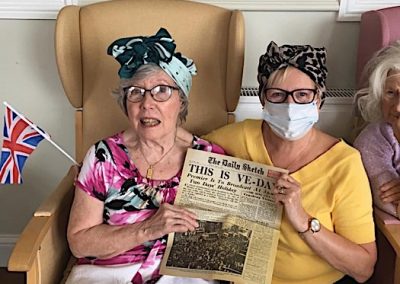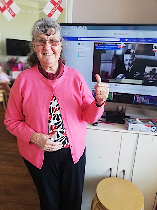 Our Residents also watched a live streaming concert with Mike Sidaway Music Entertainment: Special 75th Anniversary Concert to commemorate VE Day – Friday 8th May 2020. This entertainment went down really well. All in all, we had a Jolly good time! Thank you to all the staff for joining in.