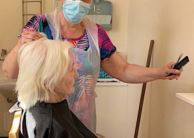 I am very grateful for Julie, one of our carers, for agreeing to come in and cut some of our residents’ hair last Tuesday while another carer covered her shift. Julie used to be a hairdresser and Julie did a cracking job! As you can imagine, our relatives loved being pampered – don’t worry your time will come too in July!! Given how popular the hairdressing session was, we will soon plan another cutting visit so that other residents can also enjoy it.
