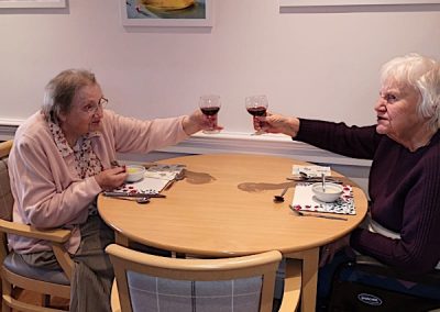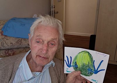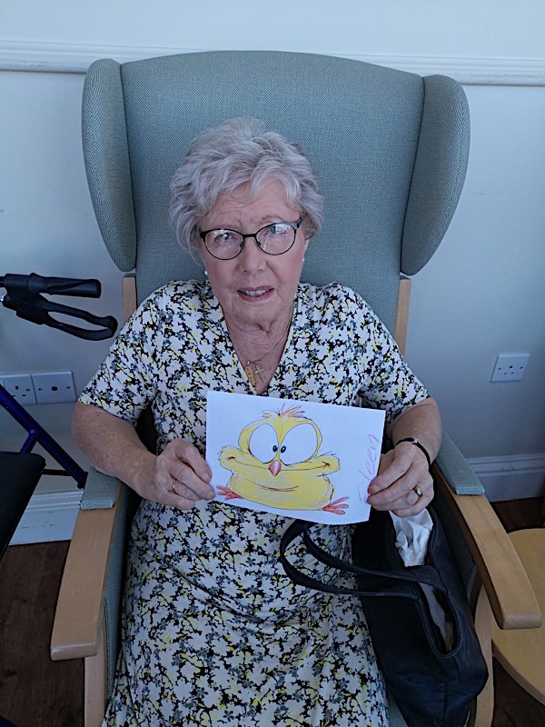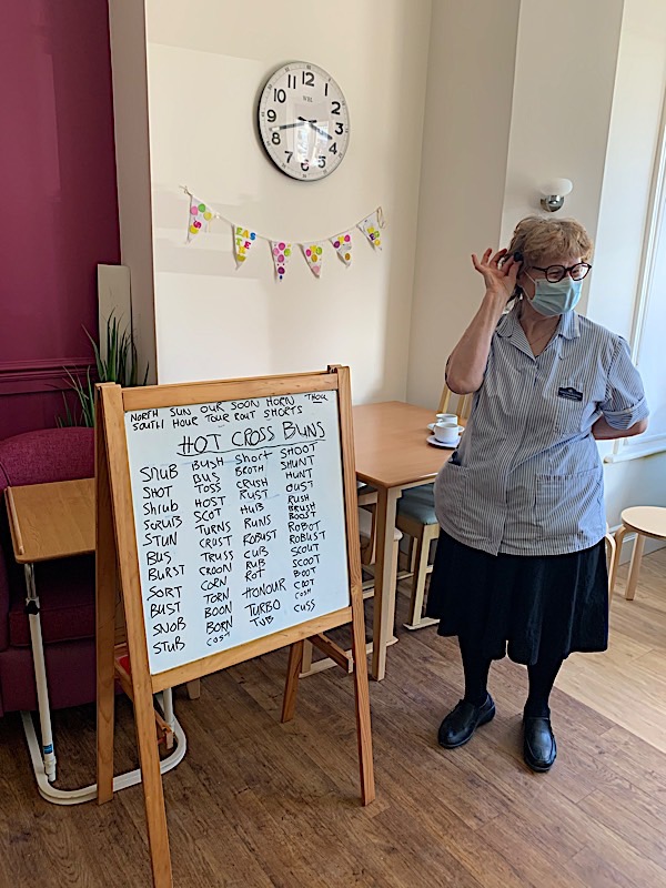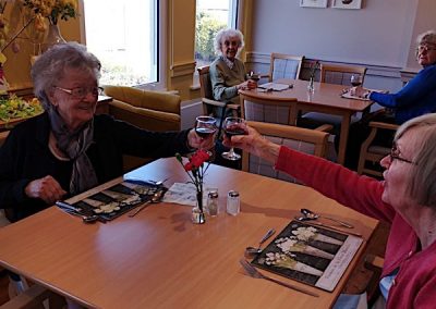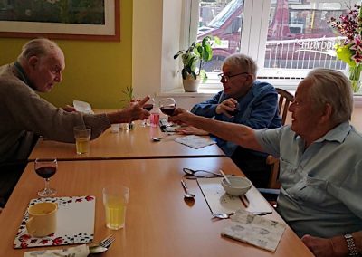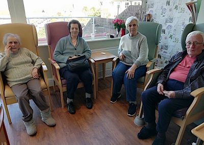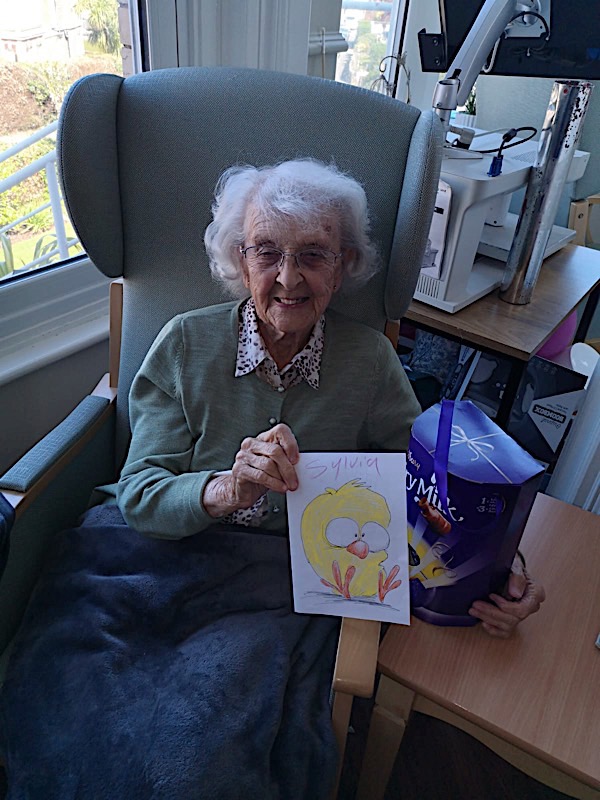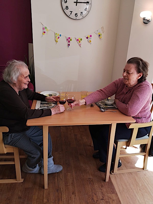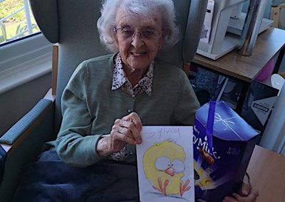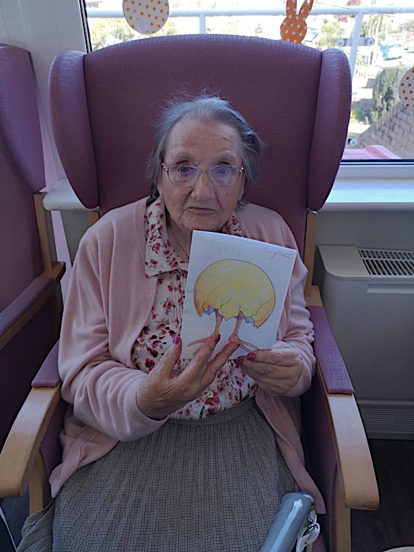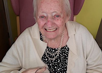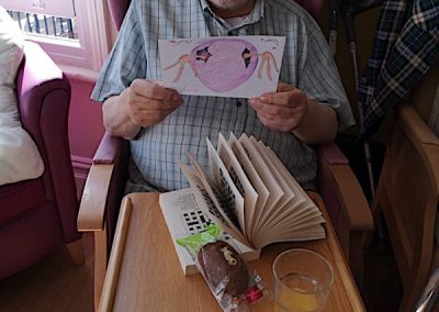 For Easter, we went the extra mile with non-alcoholic wine which went down like a dream, strawberries and cream, hot cross buns, many many chocolate eggs! Each resident was given either a chocolate Bunny or chocolate Egg from us. Joy regaled us with her infamous Easter Quiz.