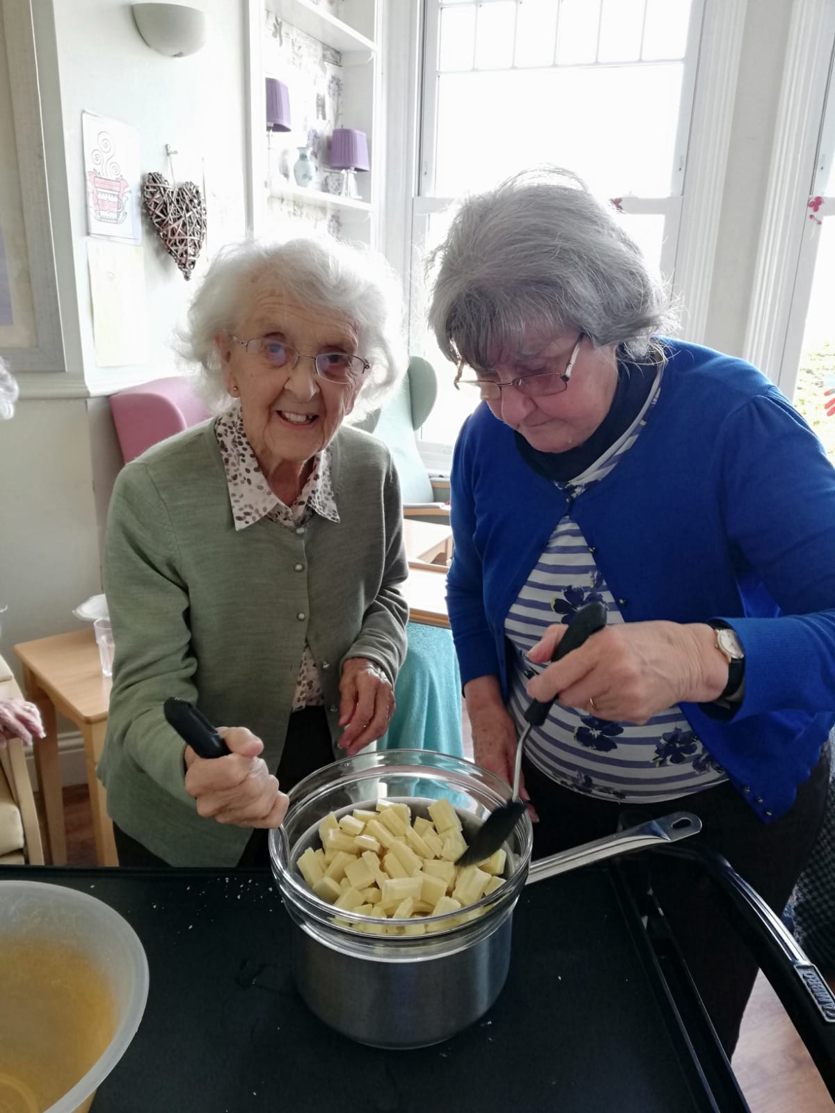 This weeks activities have included making white chocolate crispy cakes, which were yummy and a tad messy as you can see by the photographs they had to check they tasted ok (strict hygiene was adhered to between licks)