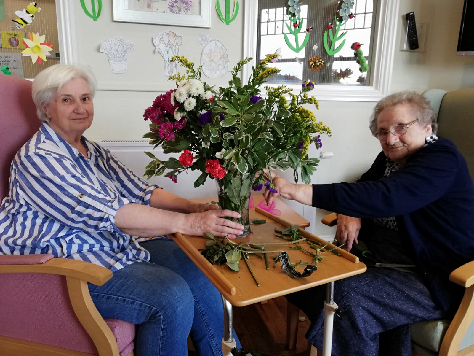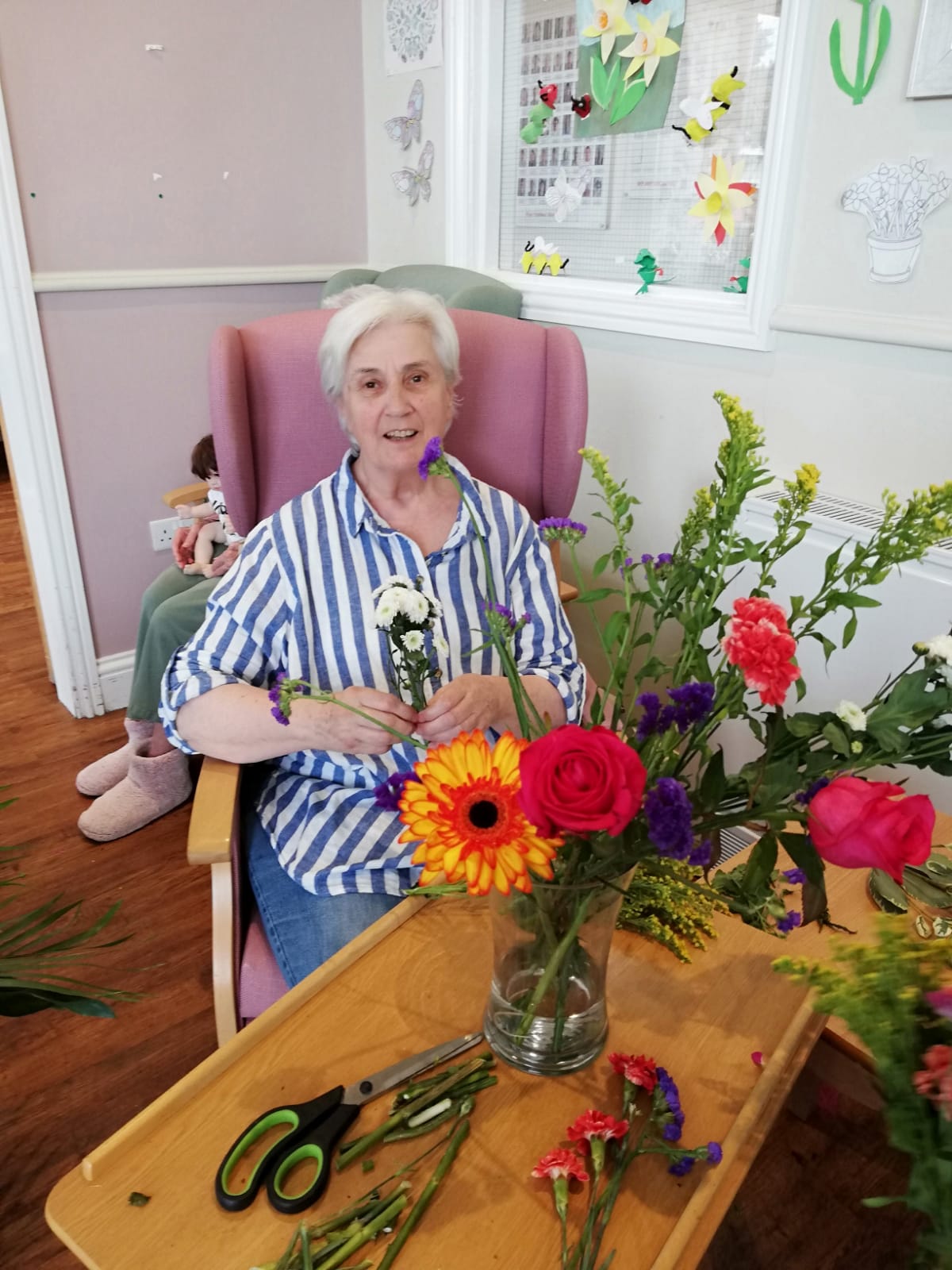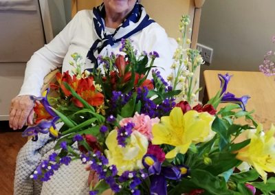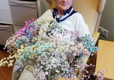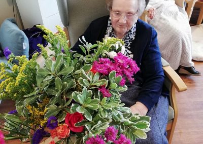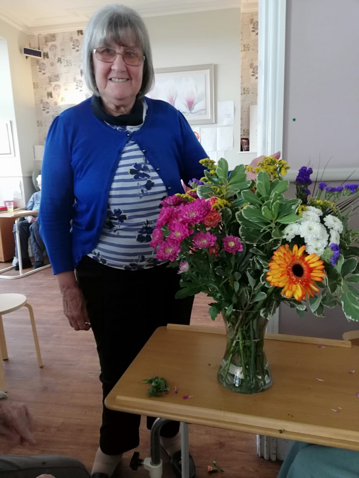Our residents have had a good week. We celebrated Sylvia’s, Min’s and Heather S’s birthday! The home has gorgeous flowers everywhere which the residents have done an amazing job of arranging. This week, our residents have been busy carrying crafts, singing, exercising, playing noisy musical instruments, making a fresh fruit salad and quizzes etc.