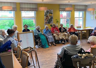 This week, our residents have enjoyed the visit of Chrissie on Monday which they always enjoy singing along to. The octopus has returned too, and many big group activities have been organised including singing, quiz etc. The weather is expected to brighten up after Saturday, so hopefully we will be able to enjoy the garden a bit more at last.