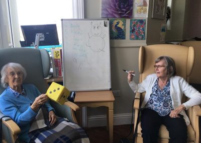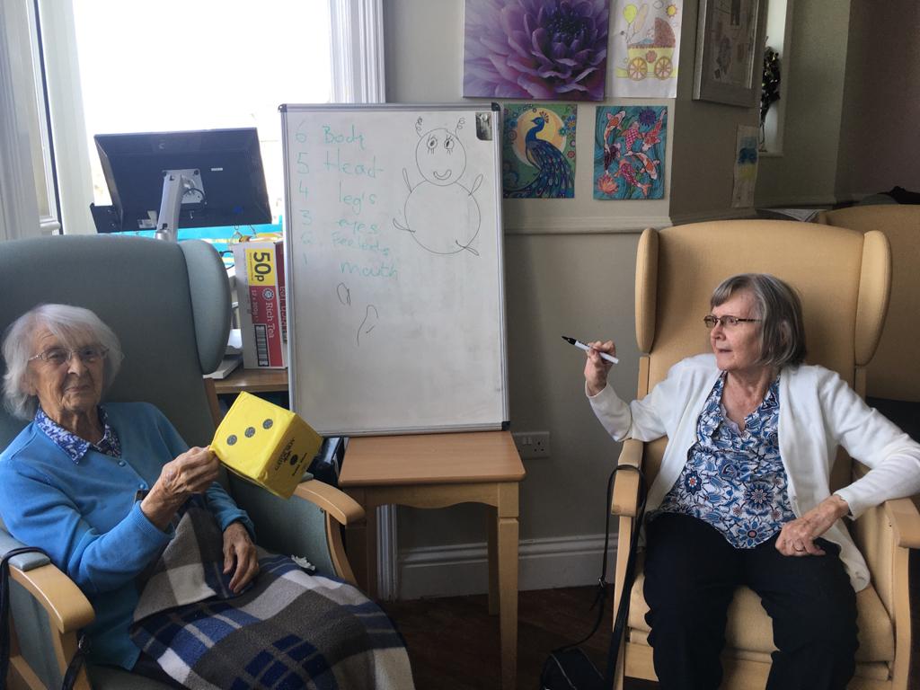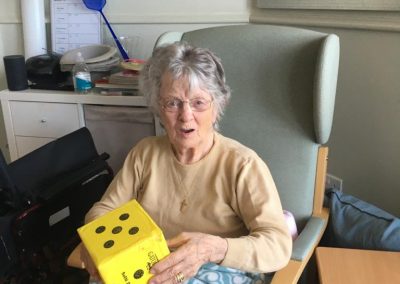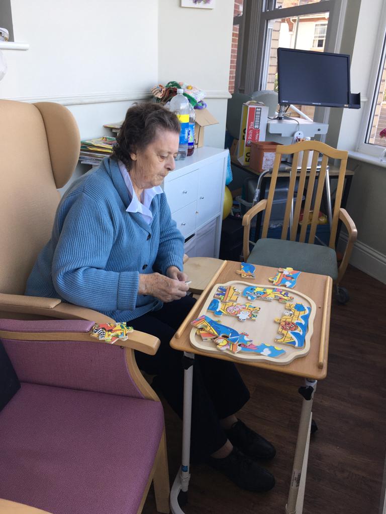 This week, our residents have been busy doing exercises ( breast stroke, doggy paddle and crawl) from their armchairs! Kim worked on reminiscing with ‘our very first holiday taken’ and we heard some very interesting stories. Anne and Amy worked on word games, chair aerobics, singalong and ball games. Lorna worked on making glitter jelly and magic whip dessert, painting and playing games. Today everyone enjoyed a tennis game with balloons and fly swatters which I thought was hilarious. Let’s hope it will bring good luck in the US Open final in the early hours of Saturday – we wish Emma Raducanu every success!