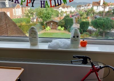 Halloween at Harbour Rise: the home looked lovely and spooky but this year, a huge special mention to the fact that the Halloween decorations were mostly made by the residents and recycled from material from the Home. How very inspiring and certainly the way to go!