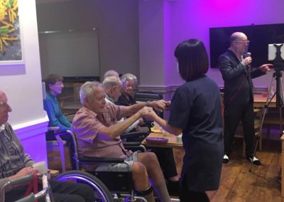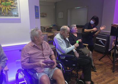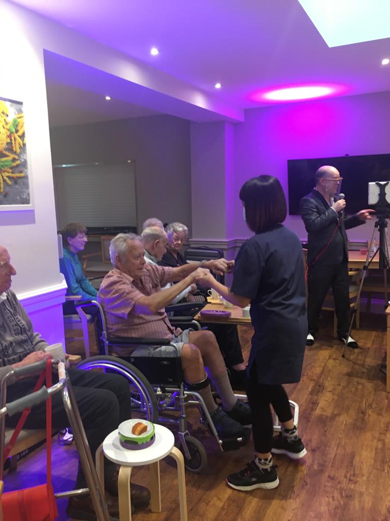 Our residents have enjoyed many Christmas shows this week with Sean Hodder, our very own Erich who brought her guitar, keyboard and Ukulele, Andrew Rieu ( online of course! ) and Patrick who is our entertainer on Christmas Eve. He is singing as I am typing! We have had a festive afternoon tea scone on Sunday 20th and a full Christmas Eve buffet on 24th. In between, the residents have enjoyed making more Christmas candles, a Christmas afternoon tea and going round on the bus to see the Christmas Lights in Torbay and also the Train of Lights.