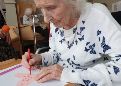 Our residents this week: due to the current outbreak, our lounge assistants have been focusing on activities such as individual craft projects. There is never been a better time than now to share some love and make love cards!!