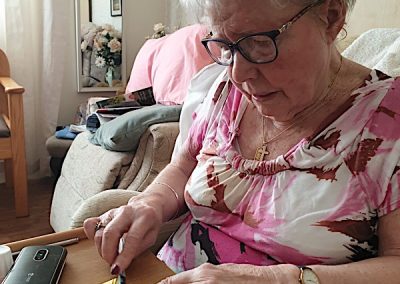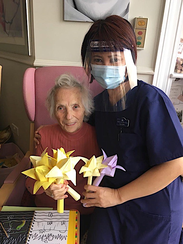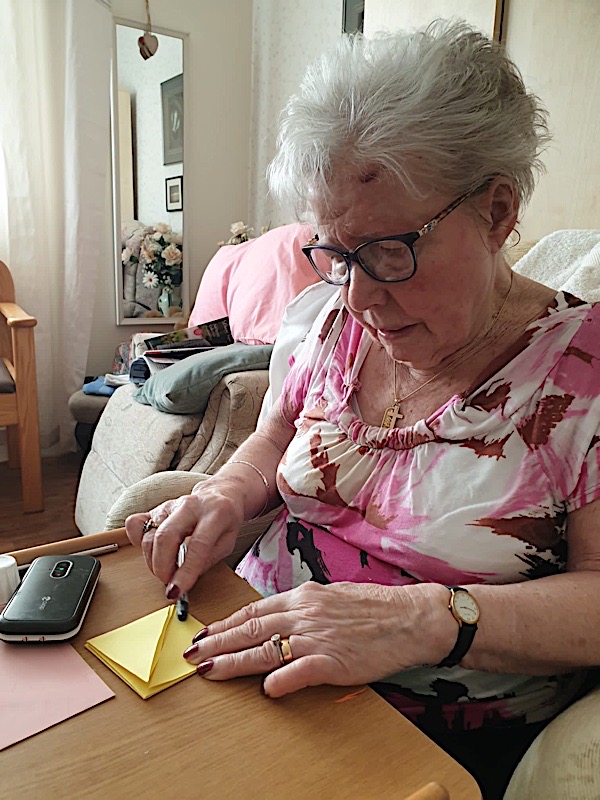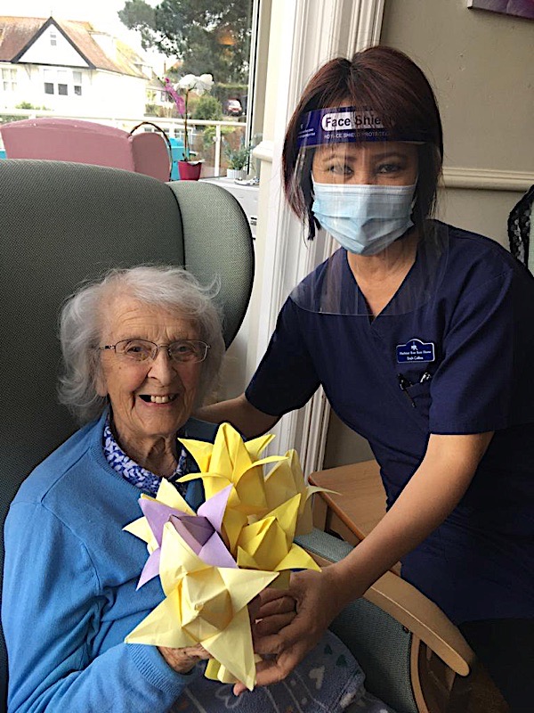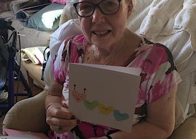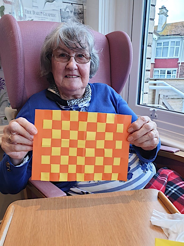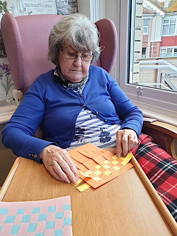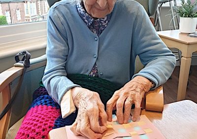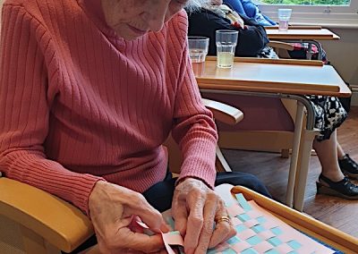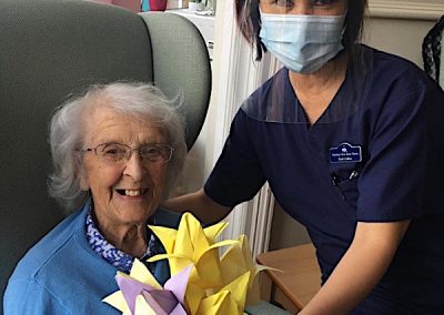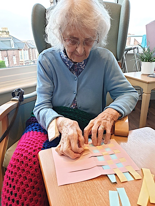 Our lounge assistants have had to work slightly differently while we are in outbreak as indeed there are a few activities we can not do at the moment. For instance: singing, anything that promotes sharing and touching the same object like a ball. So we are thrilled to see our residents have enjoyed ‘origami’ and making paper flower bouquets. This activity has also taken place in bedrooms too. Craft with origami and making valentine cards has certainly been one of the highlights of the week.