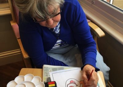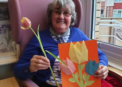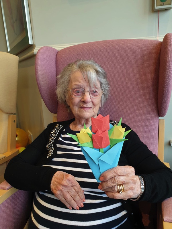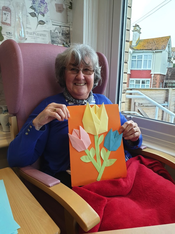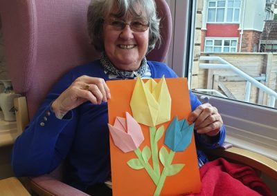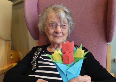 Our lounge assistants focused on the following activities for our residents who wanted to come downstairs and spend their day in the communal areas: Origami, arm and chair exercises and craft activities as well as enjoying films on TV and watching the winter Olympics of course!