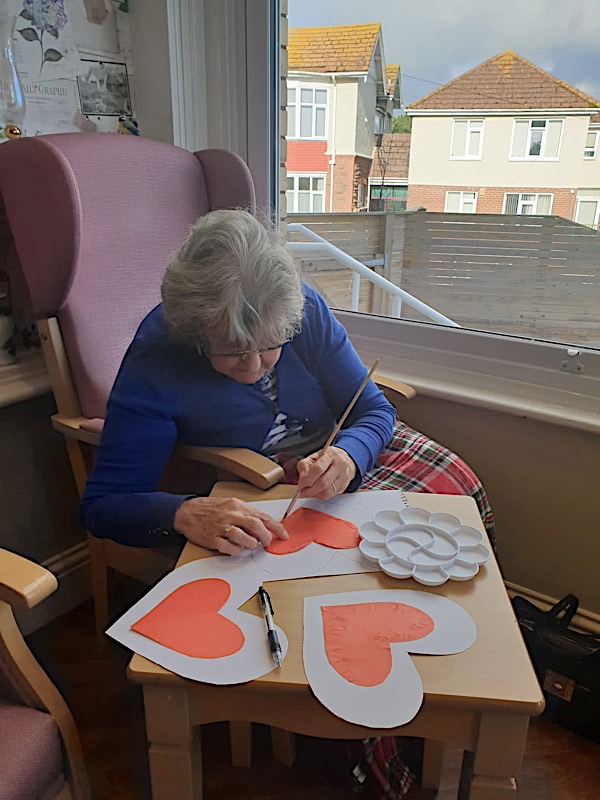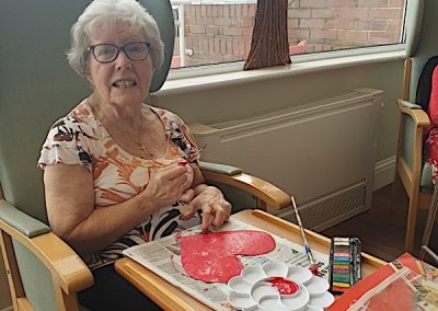 Our residents have also enjoyed arranging the flowers which we bought for Valentine, and making cards, painting spring flowers and butterflies.