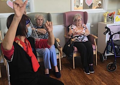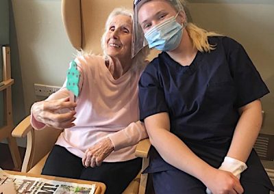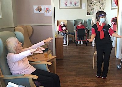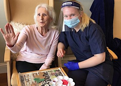 We have enjoyed some physical exercise sessions too this week. We have seen more and more residents coming back to the communal lounges, it nearly feels normal. We are really all secretly praying that we can move away from working with visors, looking like astronauts, but most of all seeing you all again and starting to enjoy going out again and doing more fulfilling activities. It will be really nice to welcome Linnie our hairdresser too!