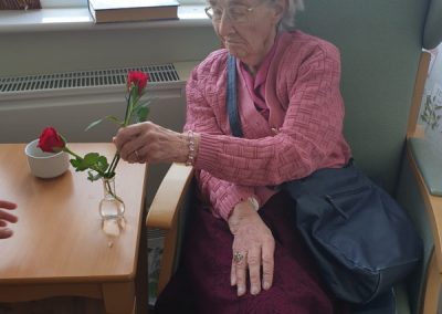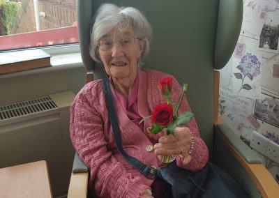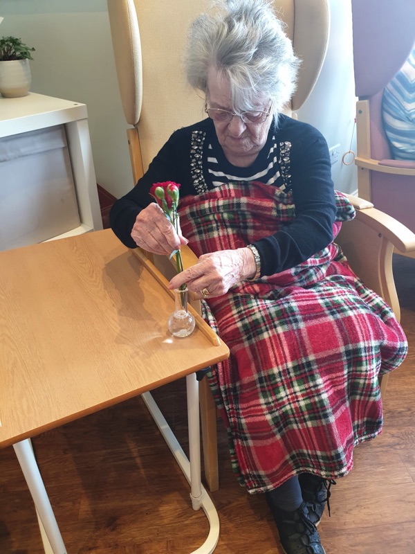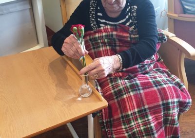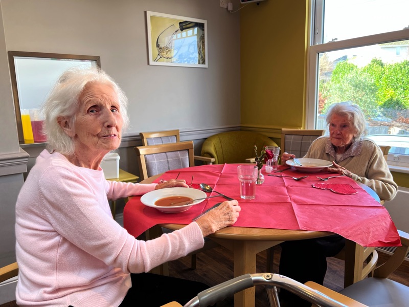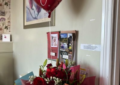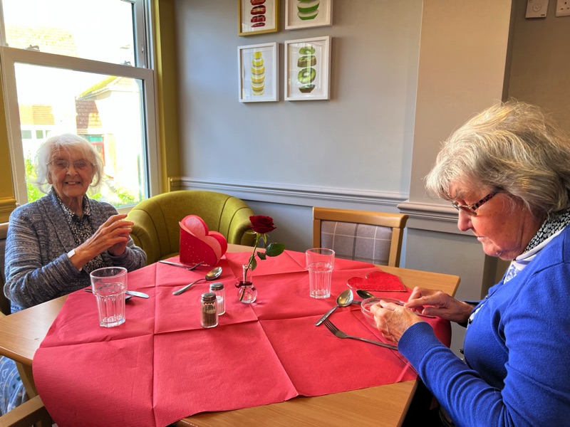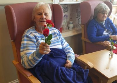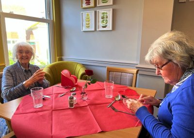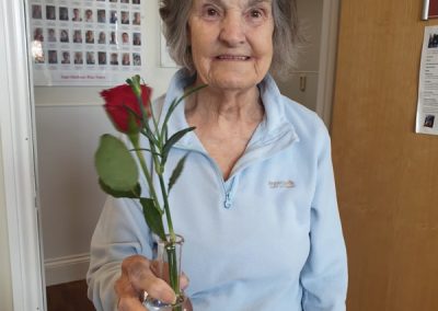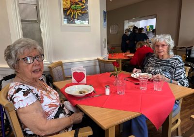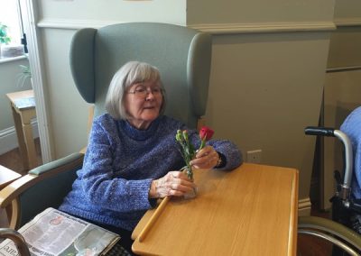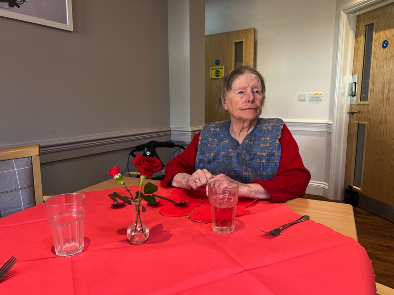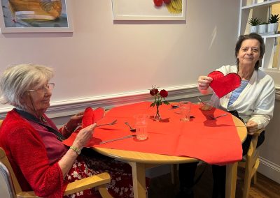 This week, we celebrated Valentine in style and staff and relatives were prompted to wear red. Ian chose to wear a bow tie on his maintenance T-shirt, very sweet! One of our female residents received the most gorgeous bouquet of flowers and which made many members of staff very jealous. We enjoyed some Victoria sponge cake, pink shloer sparking drinks, home-made cupcakes with hearts on them. Home-made valentine cards were distributed too and all tables were decorated with red table clothes and heart shape napkins. We had lovely flowers scattered around the home. All together, it really felt that we did Valentine’s Day justice and it was really enjoyable by all.