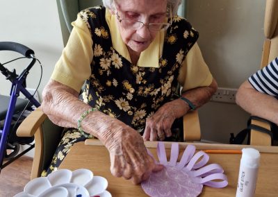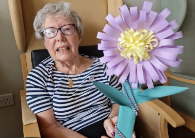 The residents carried on doing more origami this week – this activity is proving to be very popular at Harbour Rise! The whole home is decorated with Happy Easter decorations which is lovely.