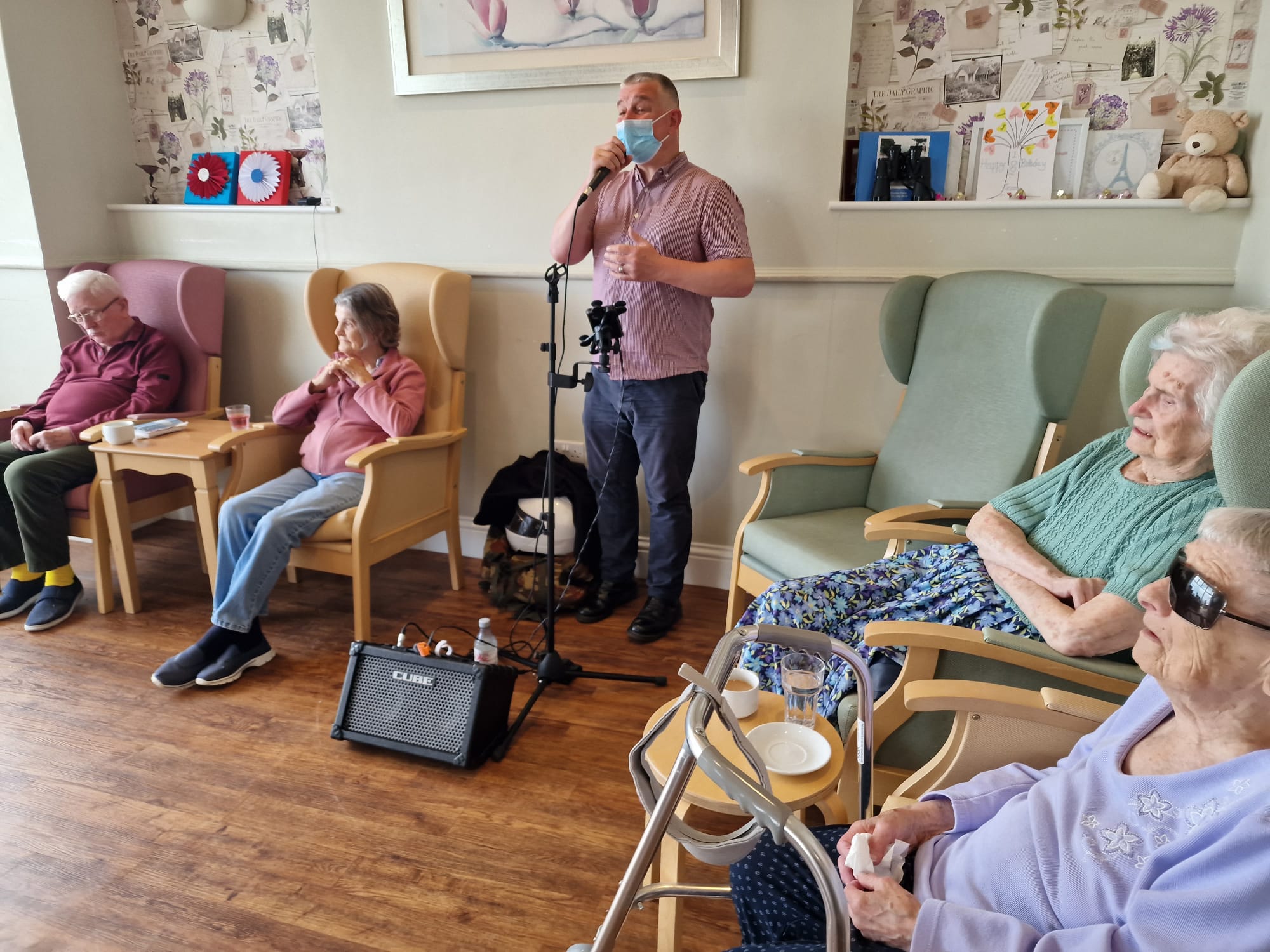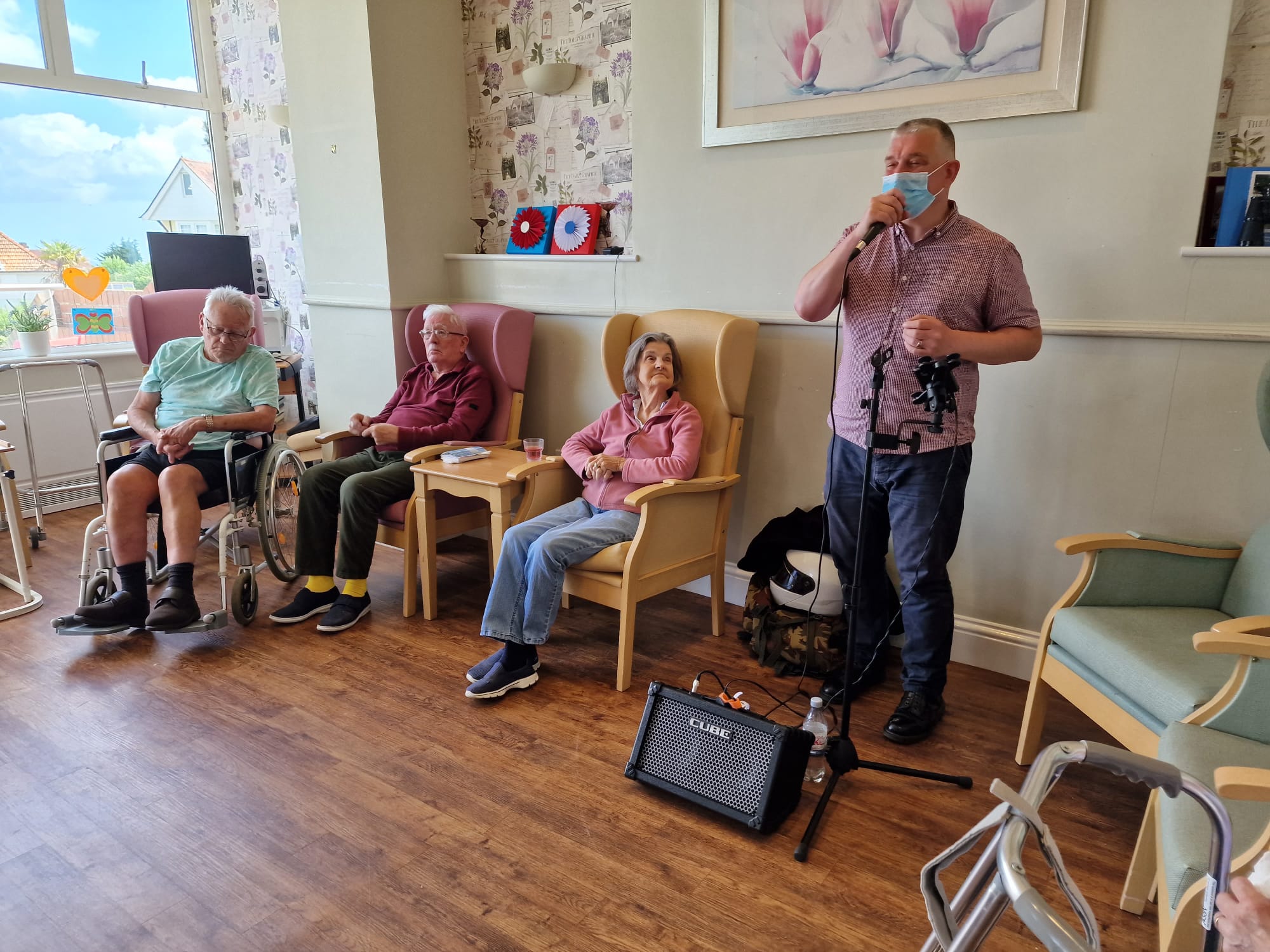 Well, we are making the most of the sunny weather whilst keeping safe of course. It has been all about music this week and exercises. We have enjoyed the visit of Patrick who sang his good old classics. It was lovely to see some of our residents enjoying the singing whilst sat on the balcony and enjoying the sun.  Amanda came back this week and put a smile on our faces. Our third entertainer this week was Luc the Harpist who played the Harp in the residents’ lounges but also in some of our residents’ rooms. We have also organised a couple of bus trips to Torquay to see the marina and Babbacombe Downs to enjoy an ice cream of course!. Finally, well done to our lounge assistants for doing gentle exercise to keep our residents’ muscles nice and flexible. We are also making the most of Ascot and will be enjoying some strawberries and Shloer