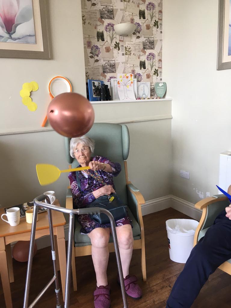 Craft activities are very much back and we also have Wimbledon coming up. I love to see how creative the lounge assistants are and how the residents love to get involved with the activities, either doing it or watching and commenting. It was funny to see the balloon tennis starting again. Beware: balloon tennis can seem a little vicious at times but all in good spirits of course and with lots of giggles – I am sure SP will agree with this 😊