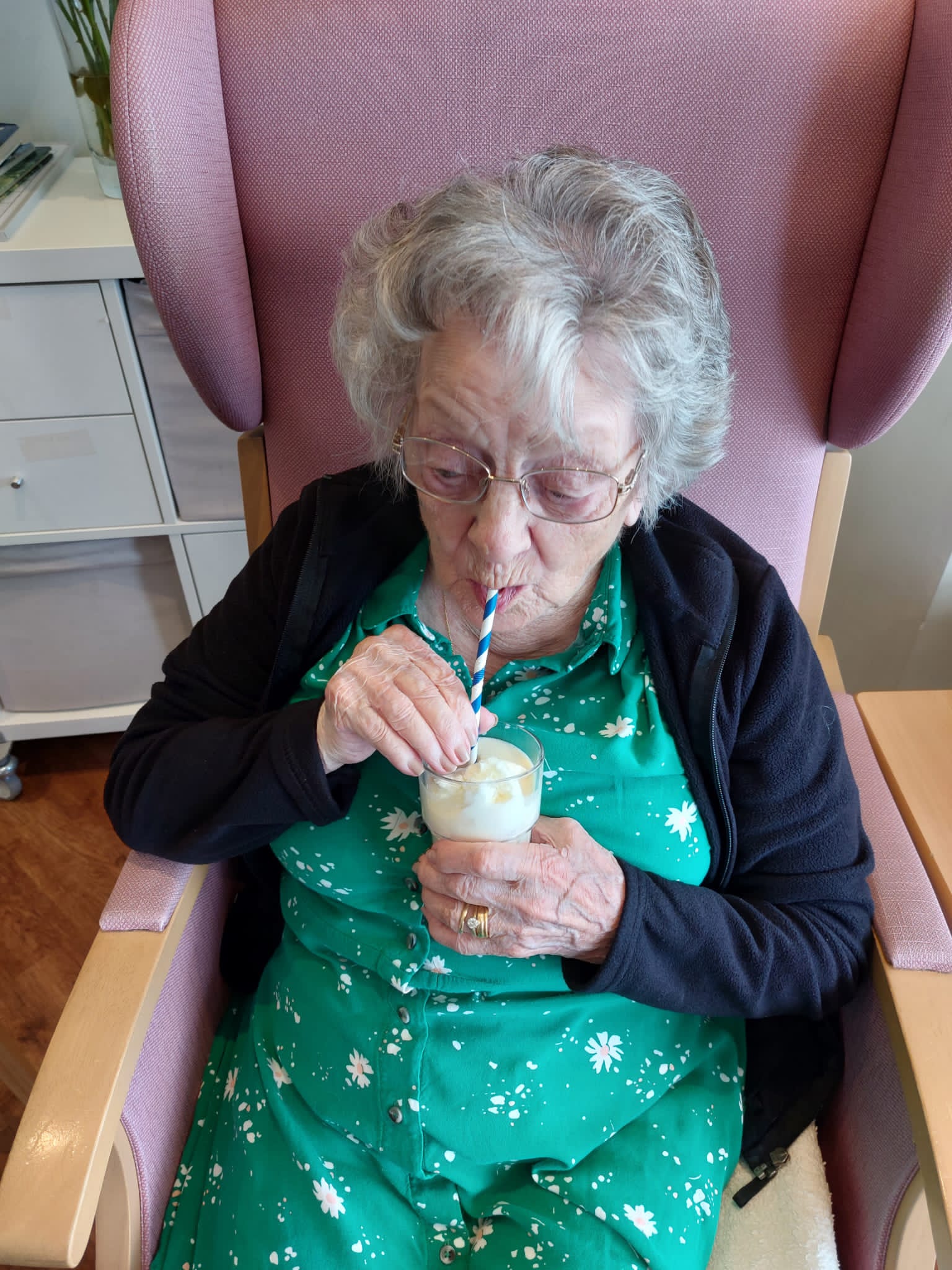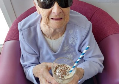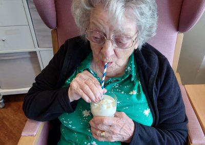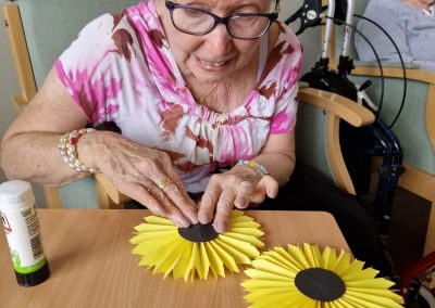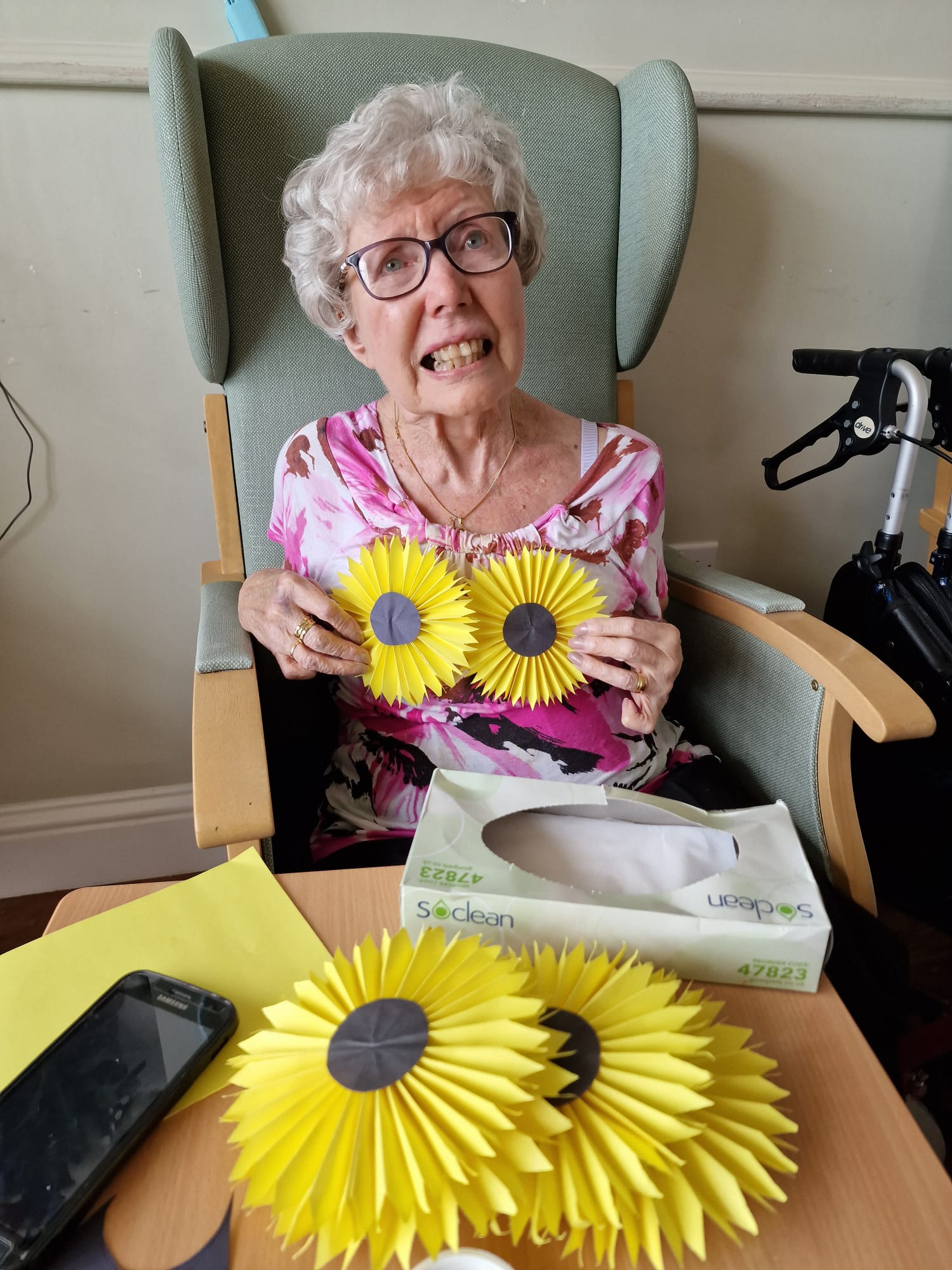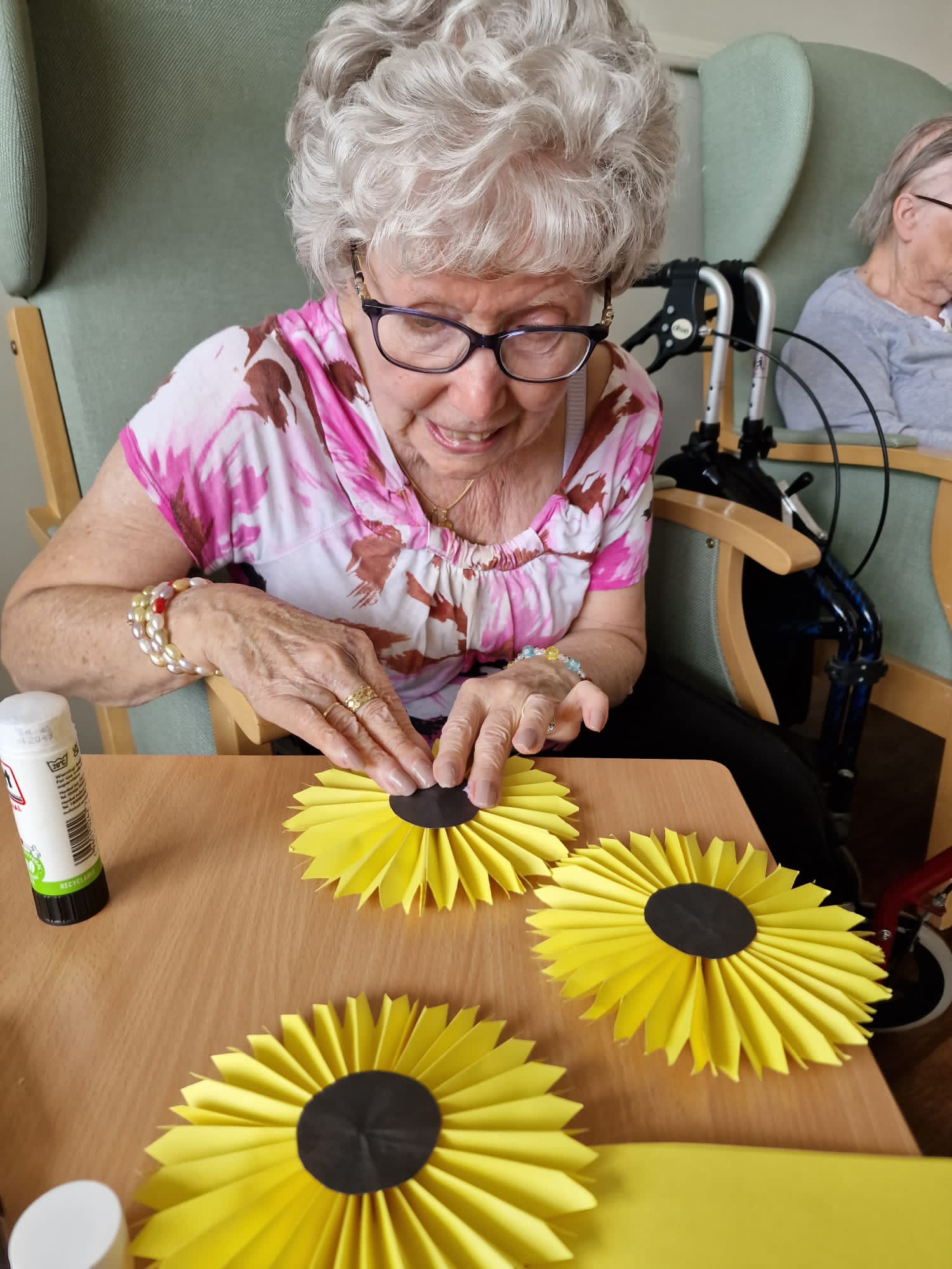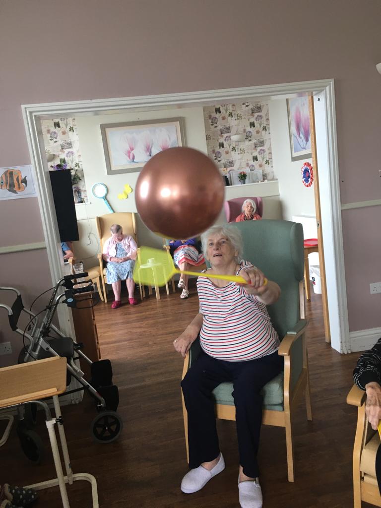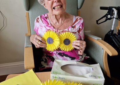 Well done to the lounge assistants who have now moved on to more origami making sunflowers. Our residents love joining in and doing team work. Displaying the artwork around the lounges makes it all worthwhile for them too! This week, we have had some pampering time with nails treatment and hand massage, we kept fit with balloon tennis and dancing, and we were naughty with some delicious chocolate milkshakes!!