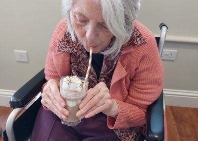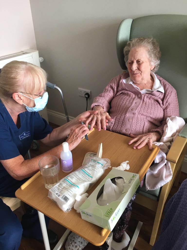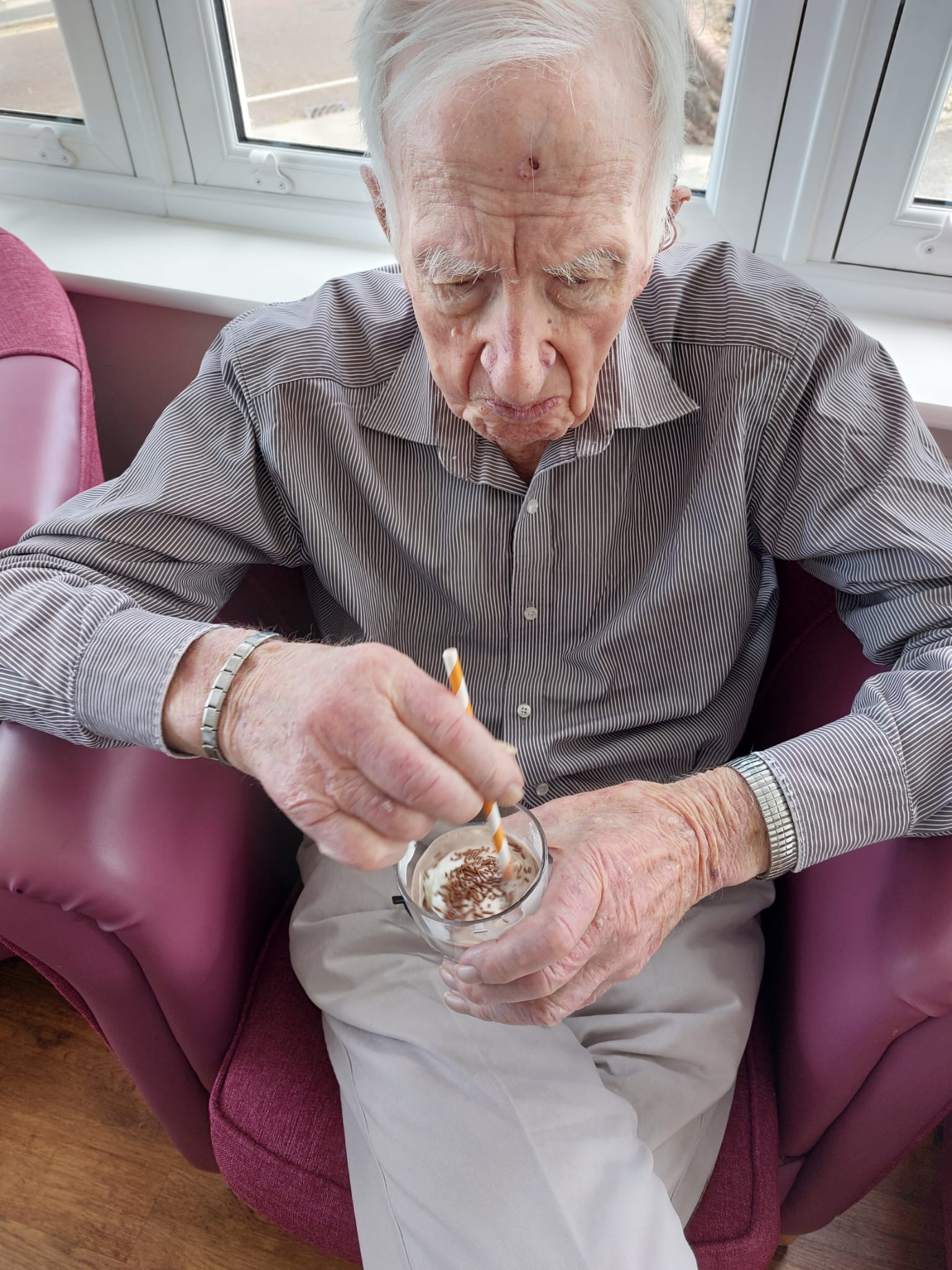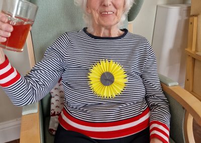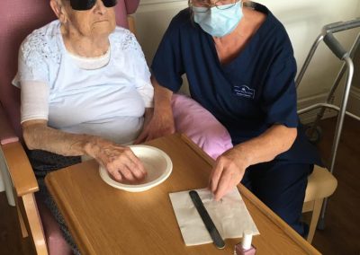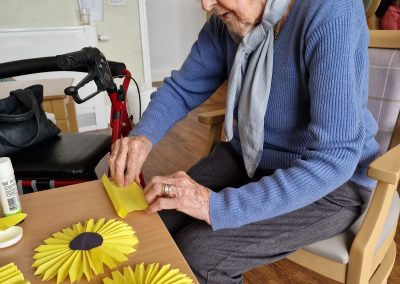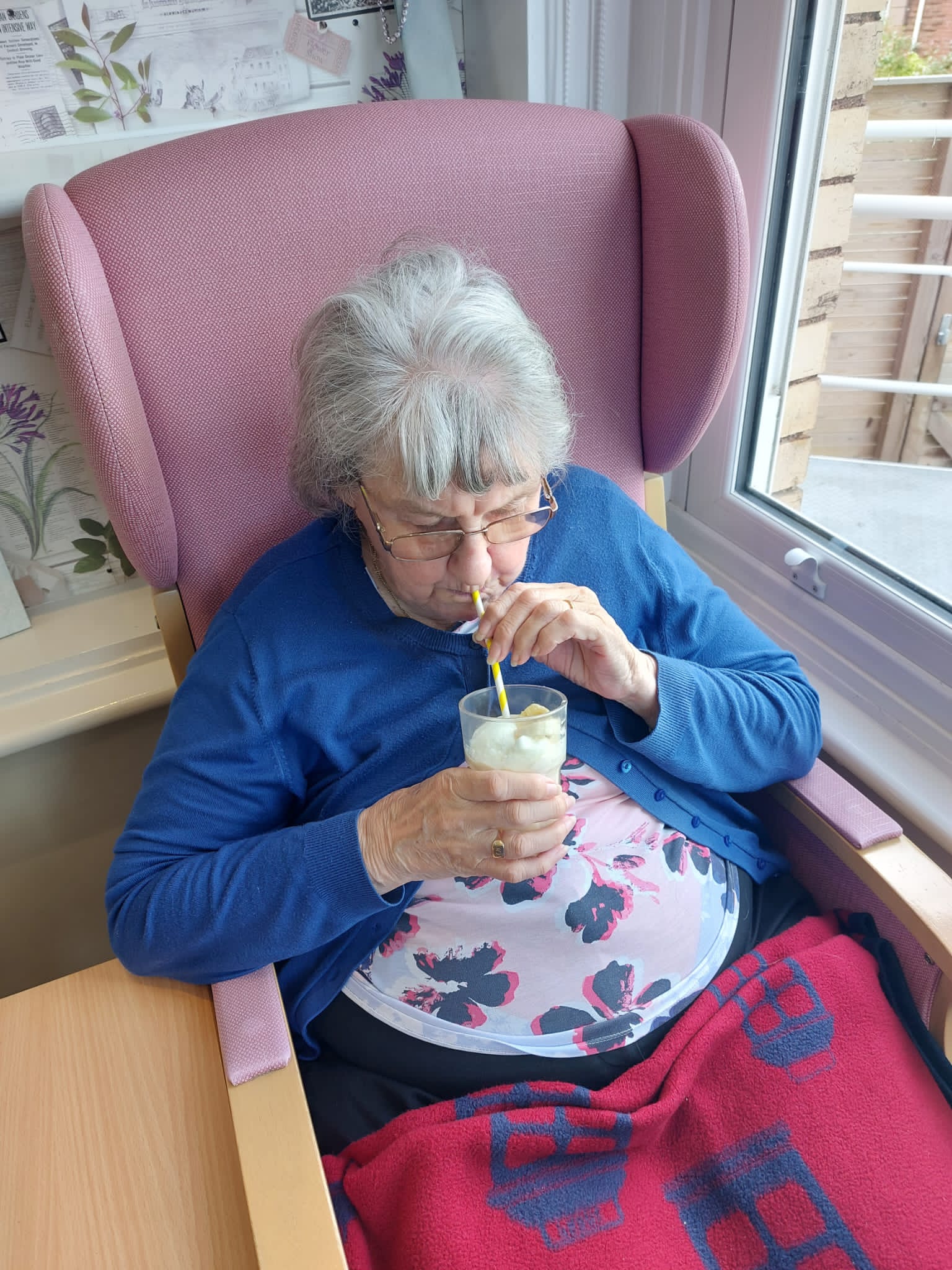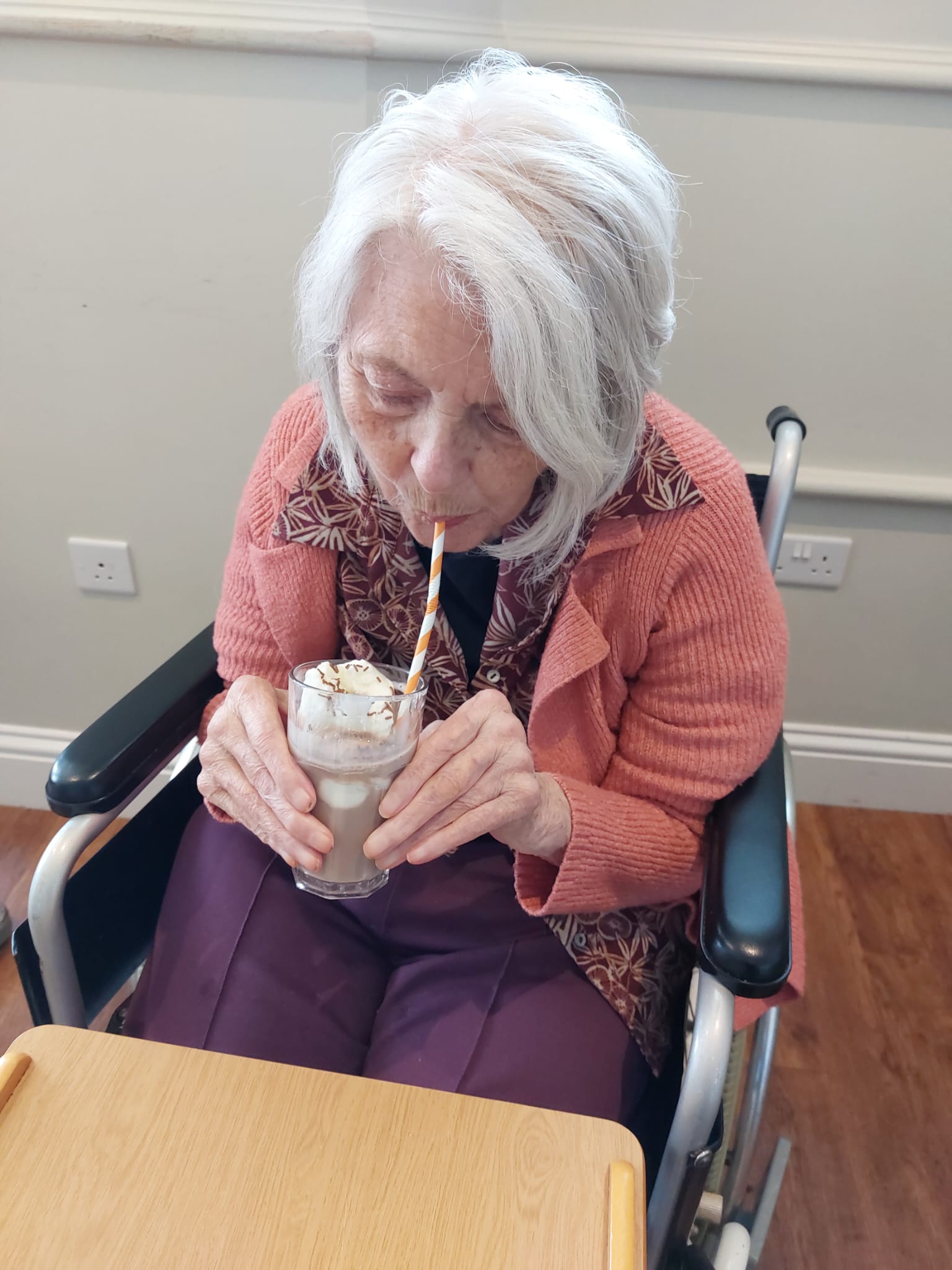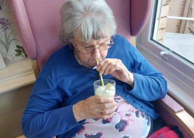 Well done to the lounge assistants who have now moved on to more origami making sunflowers. Our residents love joining in and doing team work. Displaying the artwork around the lounges makes it all worthwhile for them too! This week, we have had some pampering time with nails treatment and hand massage, we kept fit with balloon tennis and dancing, and we were naughty with some delicious chocolate milkshakes!!