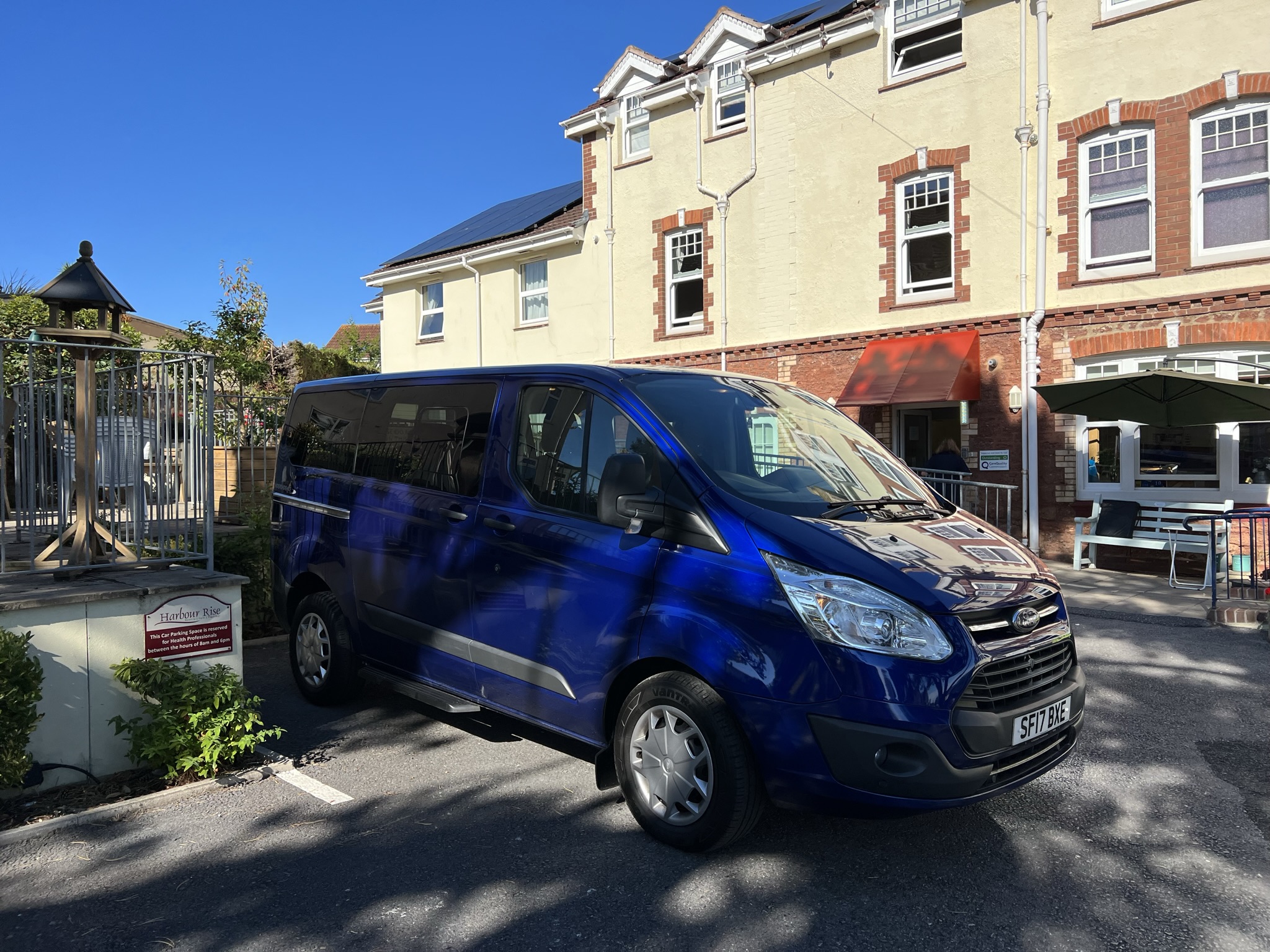 We have made a new acquisition this week to help with hospital transport, bus trips in Torbay and our Day Care Centre: we have a bought a new Ford Tourneo Bus, 2017, which includes 3 seats at the front and in the 3 in the middle, huge leg room for all, as well as head room, an integrated step and handrail and of course a space for wheelchairs. We are really excited about this new acquisition which I expect will be used on a daily basis. The Ford Tourneo Bus has got a big capacity although very compact, which will allow us to travel round in smaller areas. It will go to be sign written with Harbour Rise logo and details next week. So expect to see us around in a Blue Ford Tourneo Bus, as well as our burgundy Mercedes Sprinter.