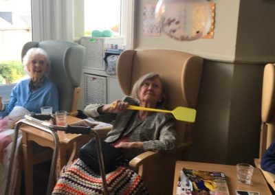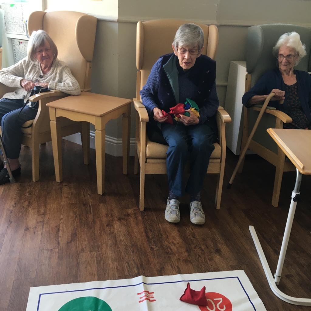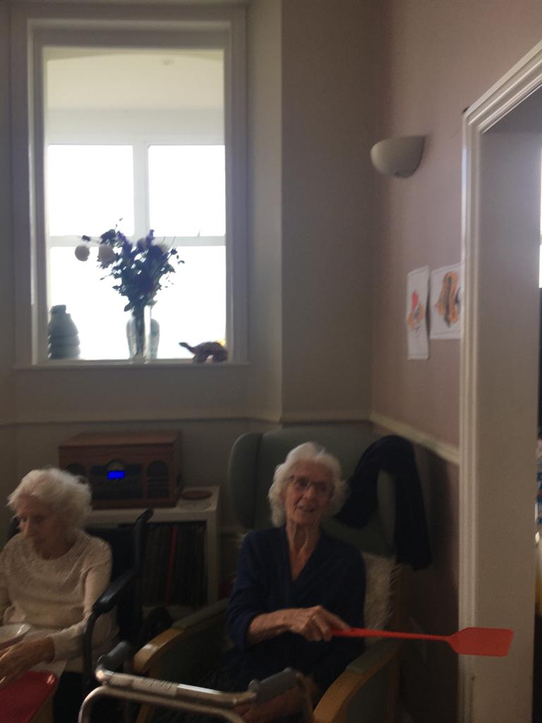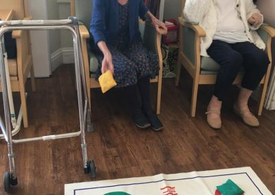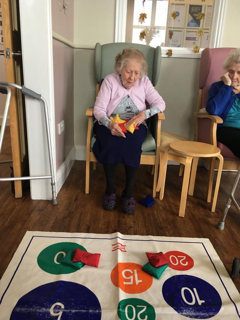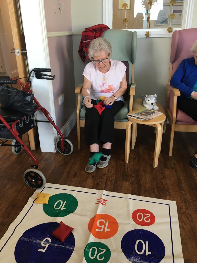 The autumnal craft is going very well and we have lots of nice touches decorating the lounges. We welcomed Louise our lovely Saxophone player and enjoyed singing and dancing. We also very much enjoyed Chrissie’s visit who is always as cheerful as ever. Chrissie got staff and residents dancing! Our residents enjoyed target games and of course the usual but super popular tennis game.