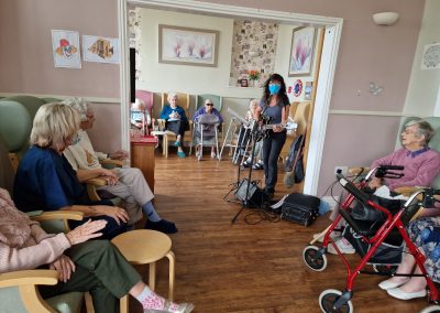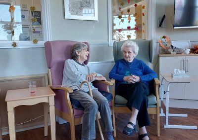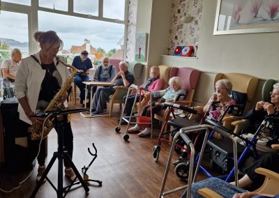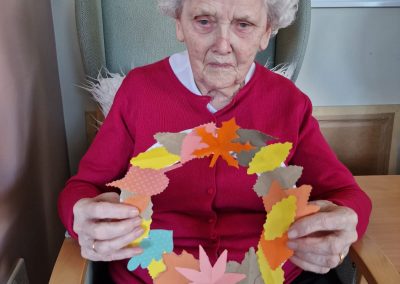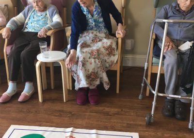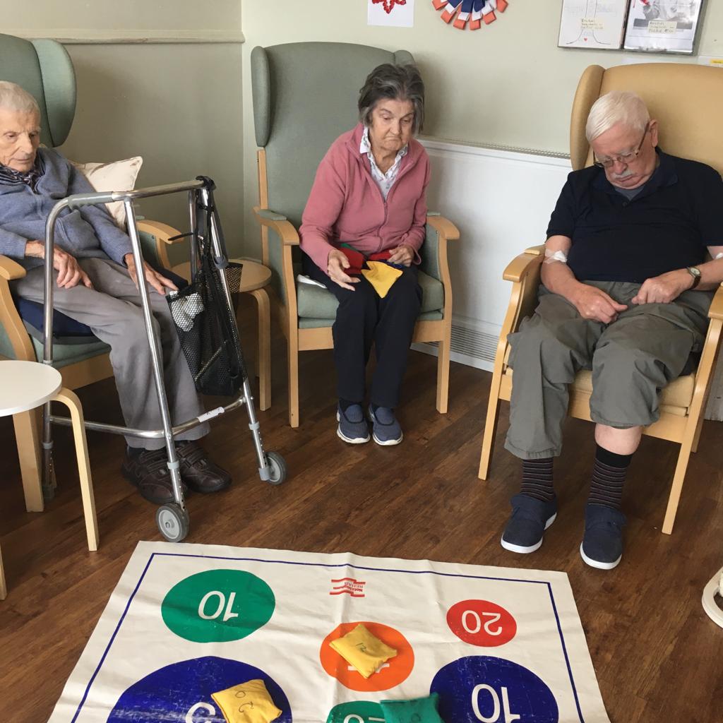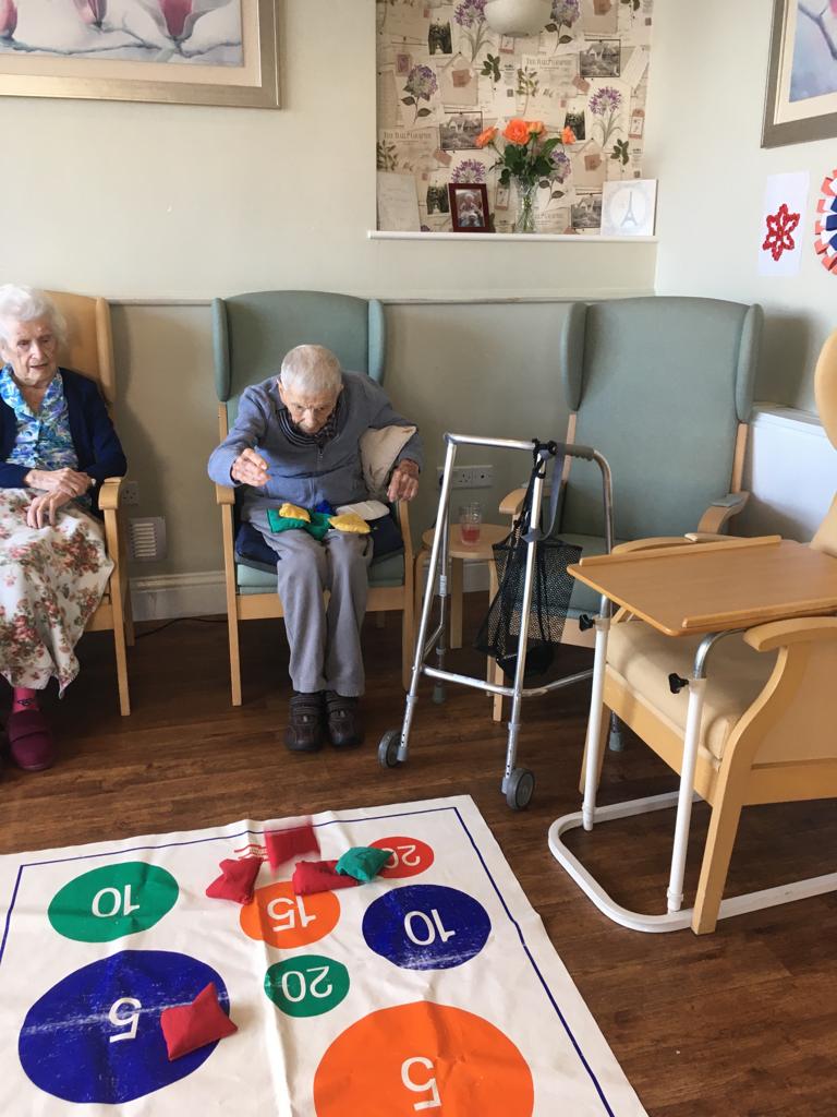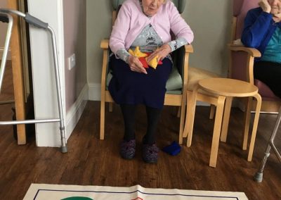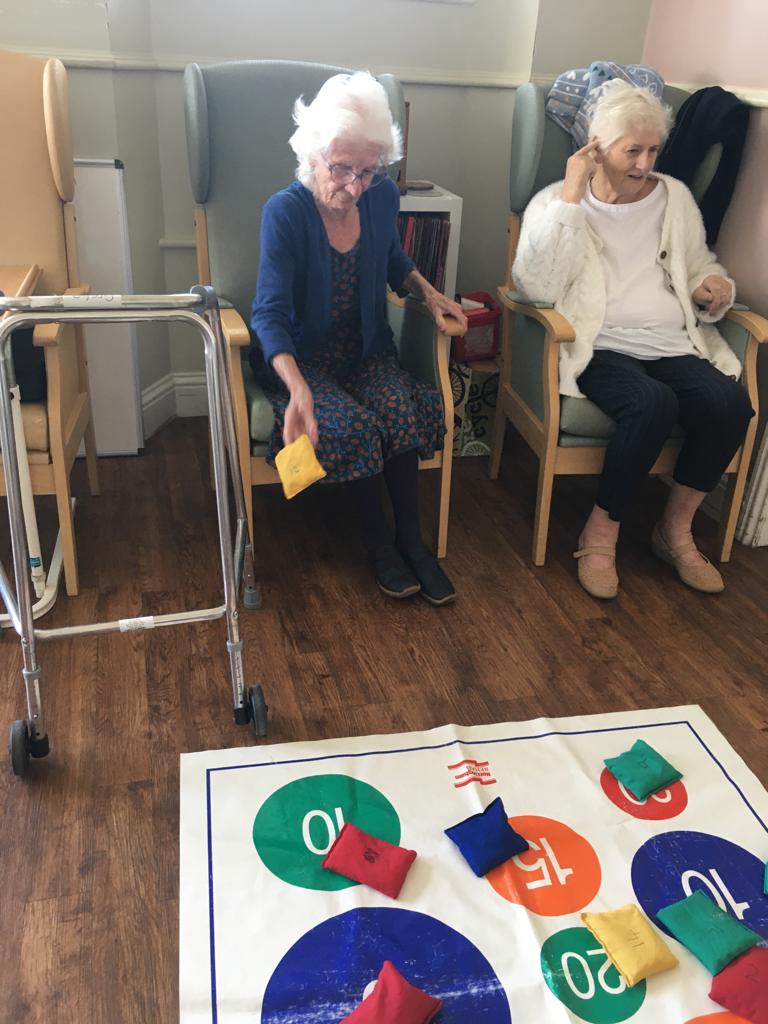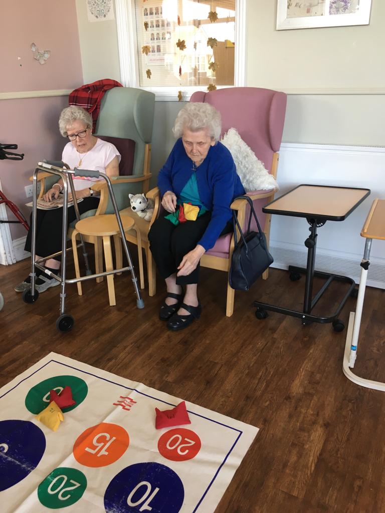 The autumnal craft is going very well and we have lots of nice touches decorating the lounges. We welcomed Louise our lovely Saxophone player and enjoyed singing and dancing. We also very much enjoyed Chrissie’s visit who is always as cheerful as ever. Chrissie got staff and residents dancing! Our residents enjoyed target games and of course the usual but super popular tennis game.