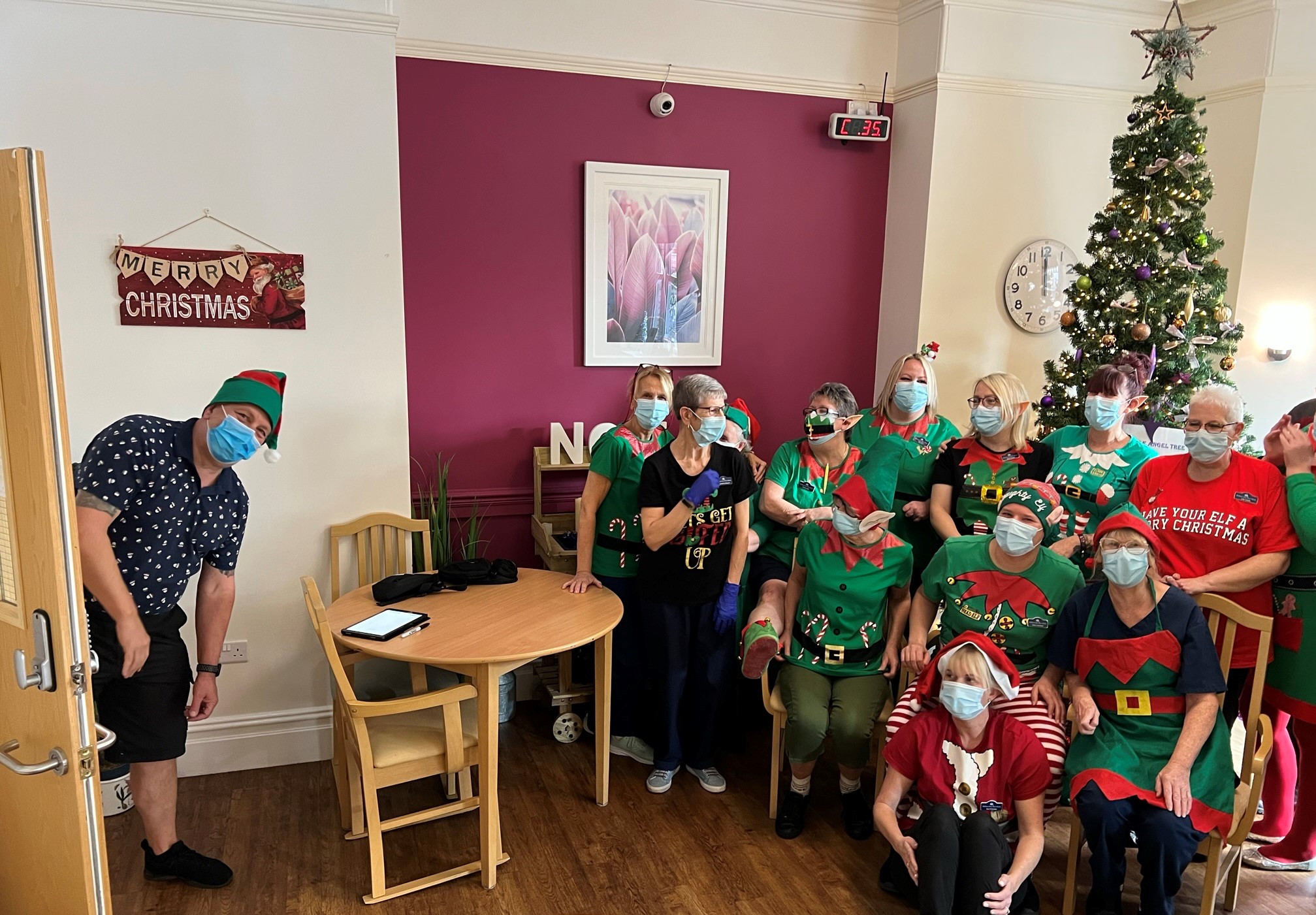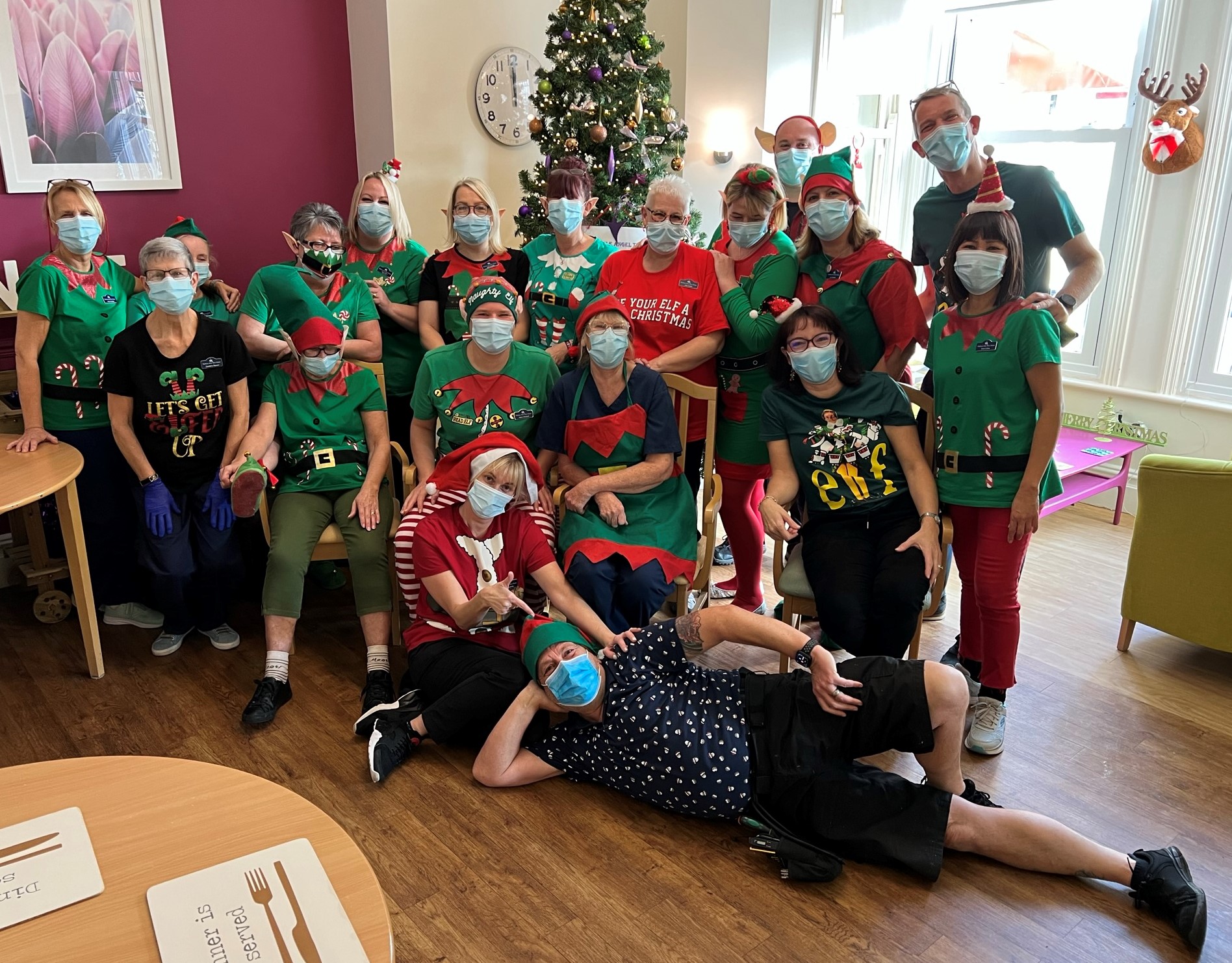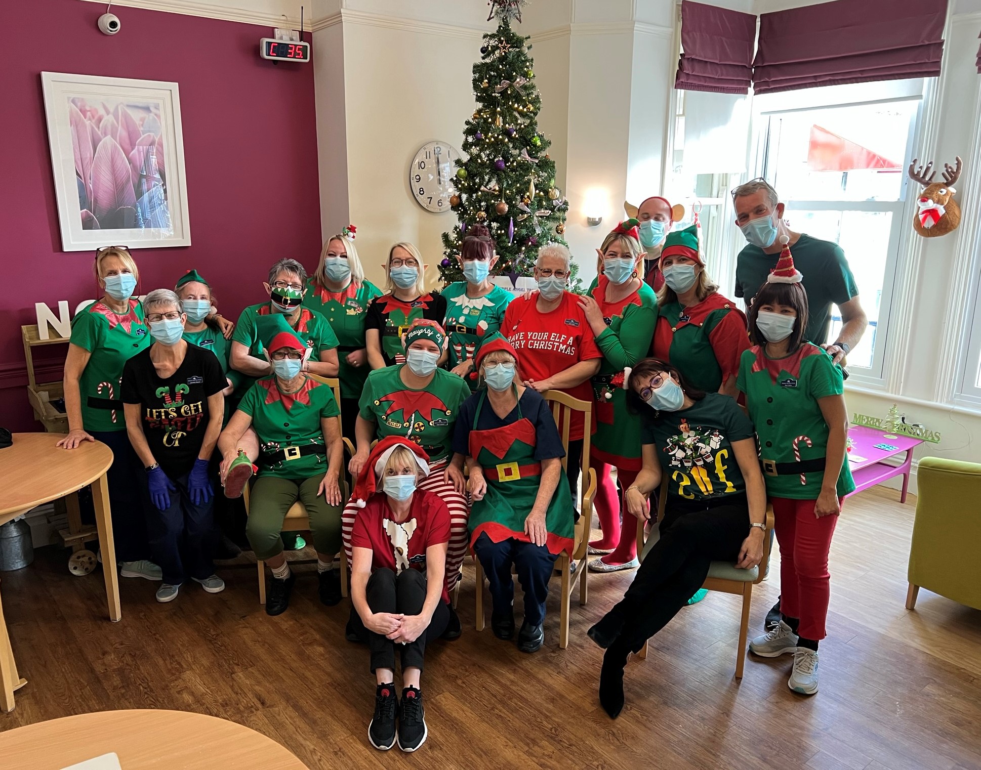 Today is Elf day and most of us are wearing Elf outfits. We have all had a giggle, including our lovely residents. You can hear Jingle bells literally everywhere round the building as we have lots of Elves caring for our residents! The atmosphere is brilliant and we are all having a nice time!