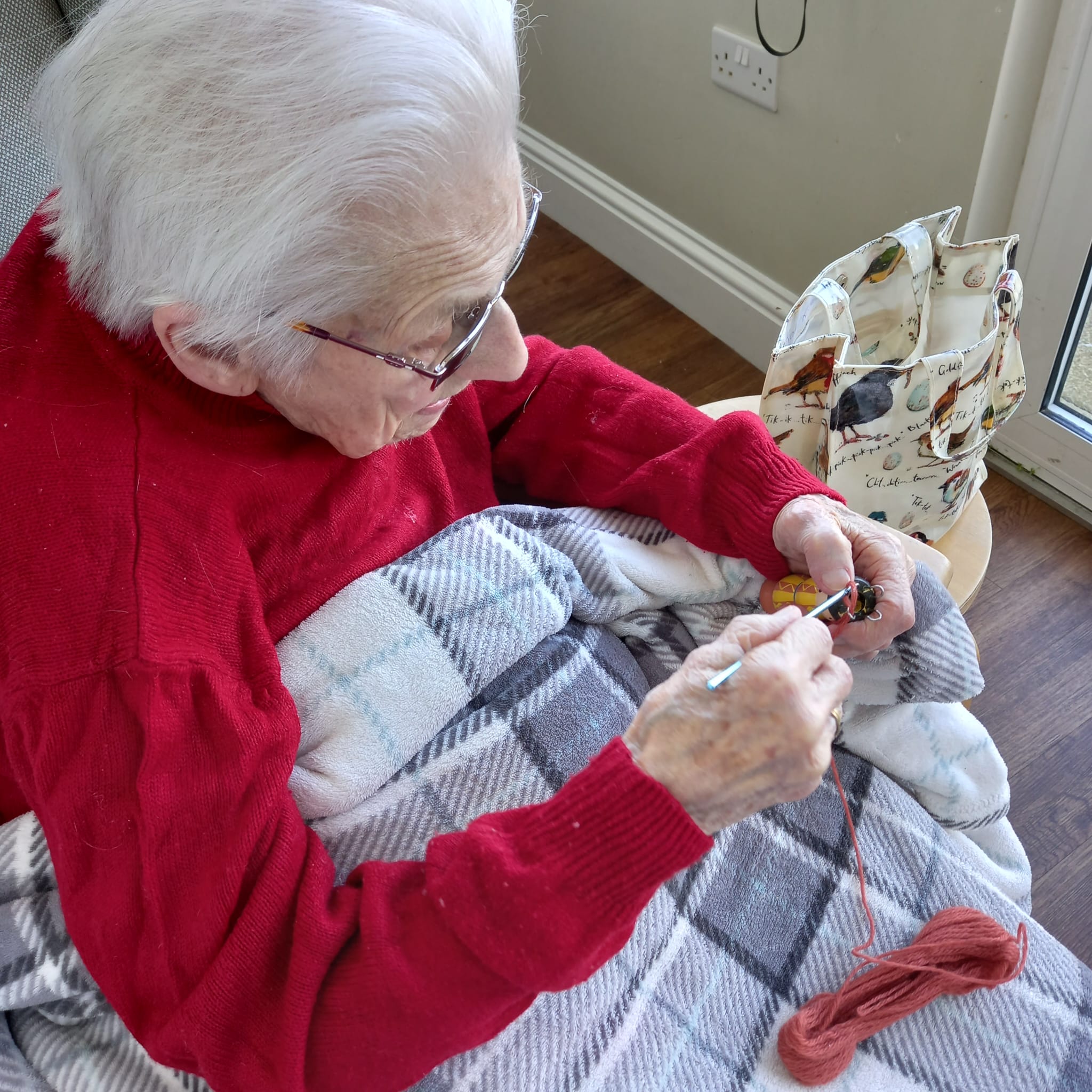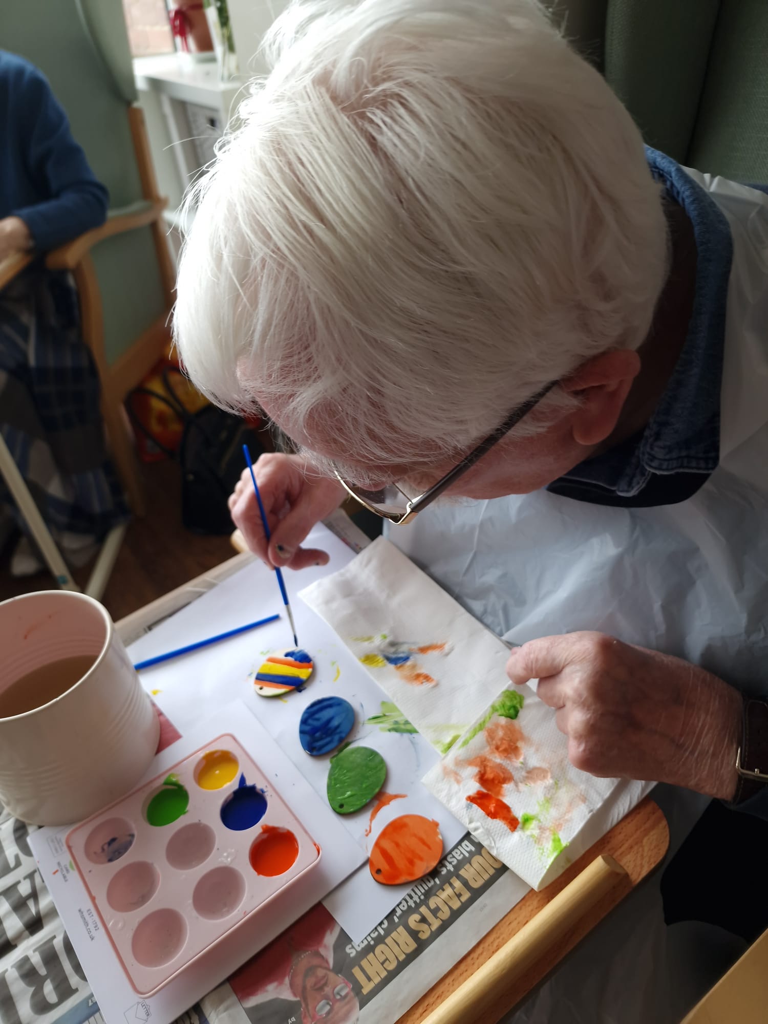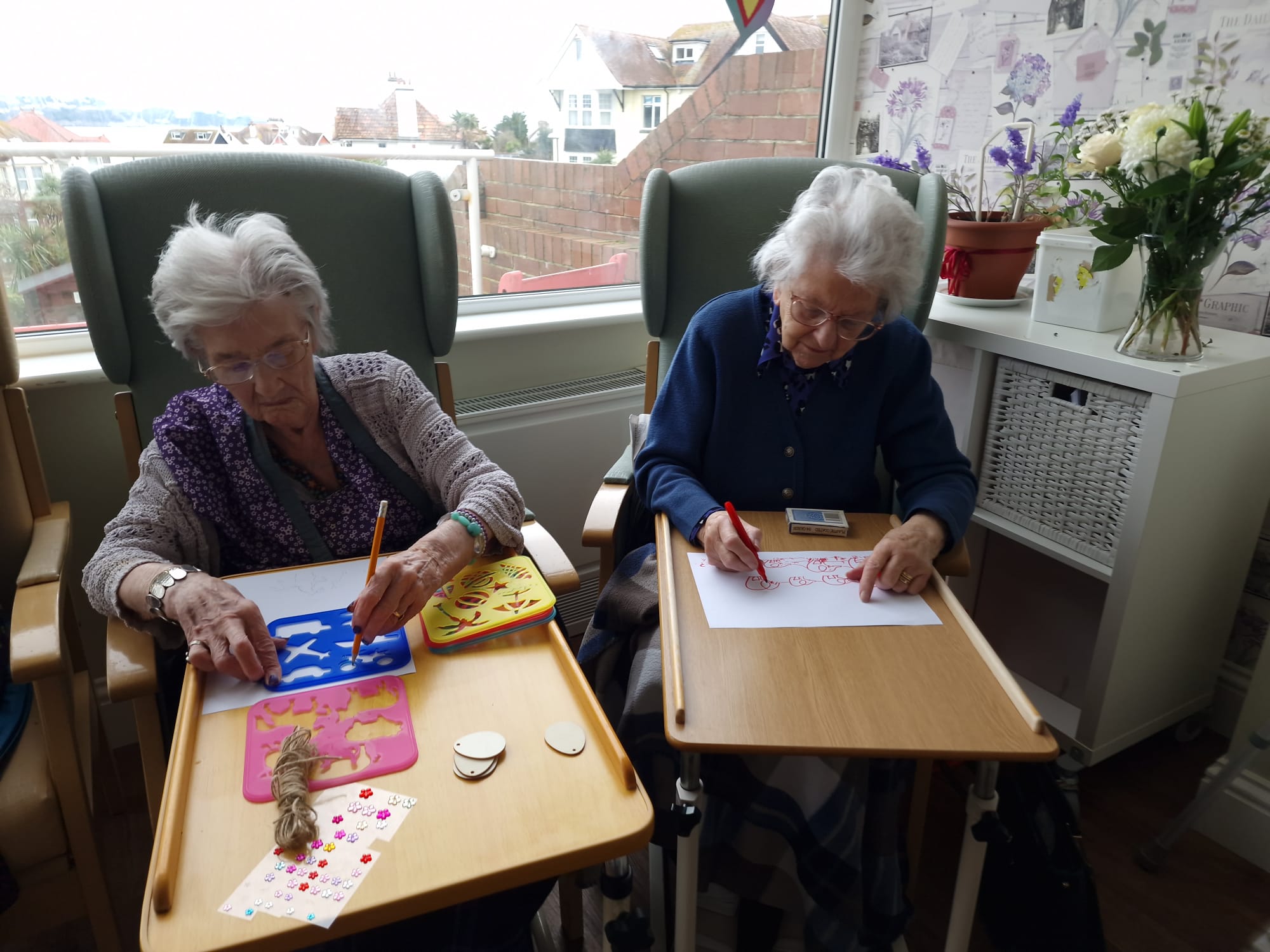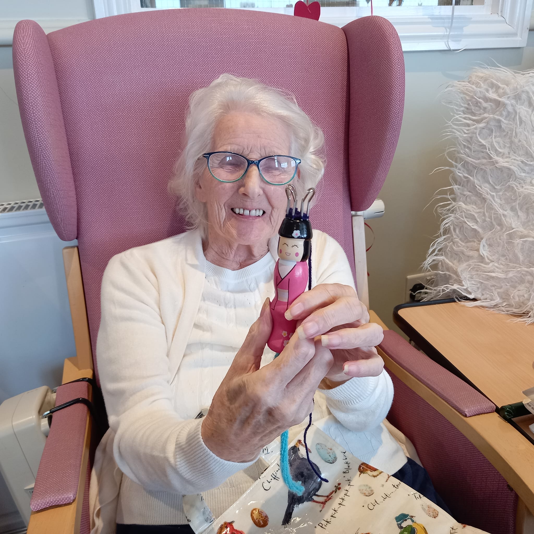 There is a lot of Easter craft going on with Penny having a real go at “knitting Nancy” – I seem to remember I used to have one when I was younger! Greta showed off her sewing repair skills too! Well done to all those who had a go at making bunnies. The spring theme is clearly displayed in our lounges with gorgeous notes of green and yellow around the rooms which we are all enjoying. Dot has enjoyed rummaging the bag of “bits and pieces” and said it was a bag full of memories! We also organised a bus trip to Paignton, Torquay and Babbacombe. The weather was debatable but it was lovely to be able to go out and get some fresh air and a change of scenery. We have also enjoyed the visits of Luke the harpist, Amanda and Chrissie the singers. The Falcon display is coming on Monday at 2.30pm which will be nice for a change.