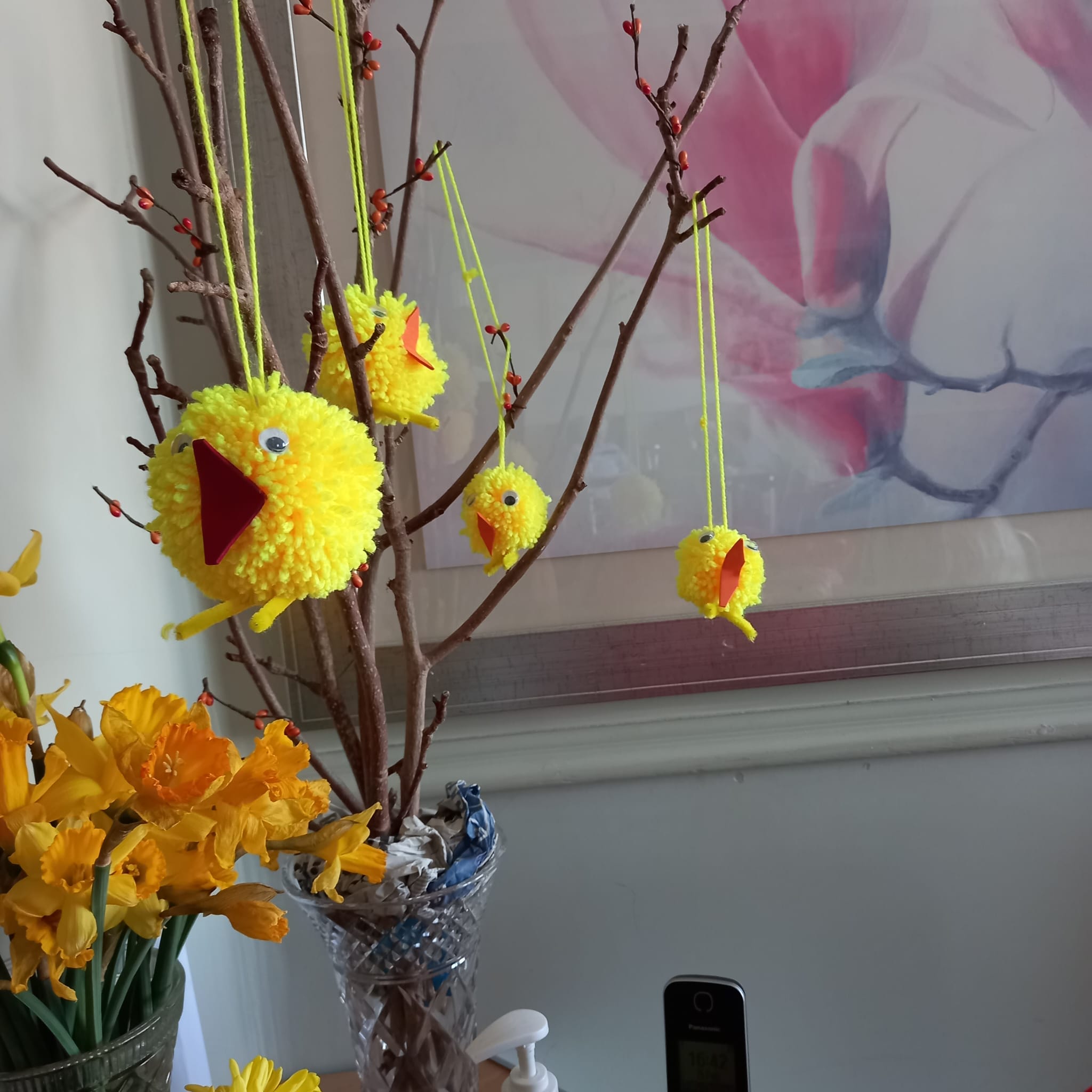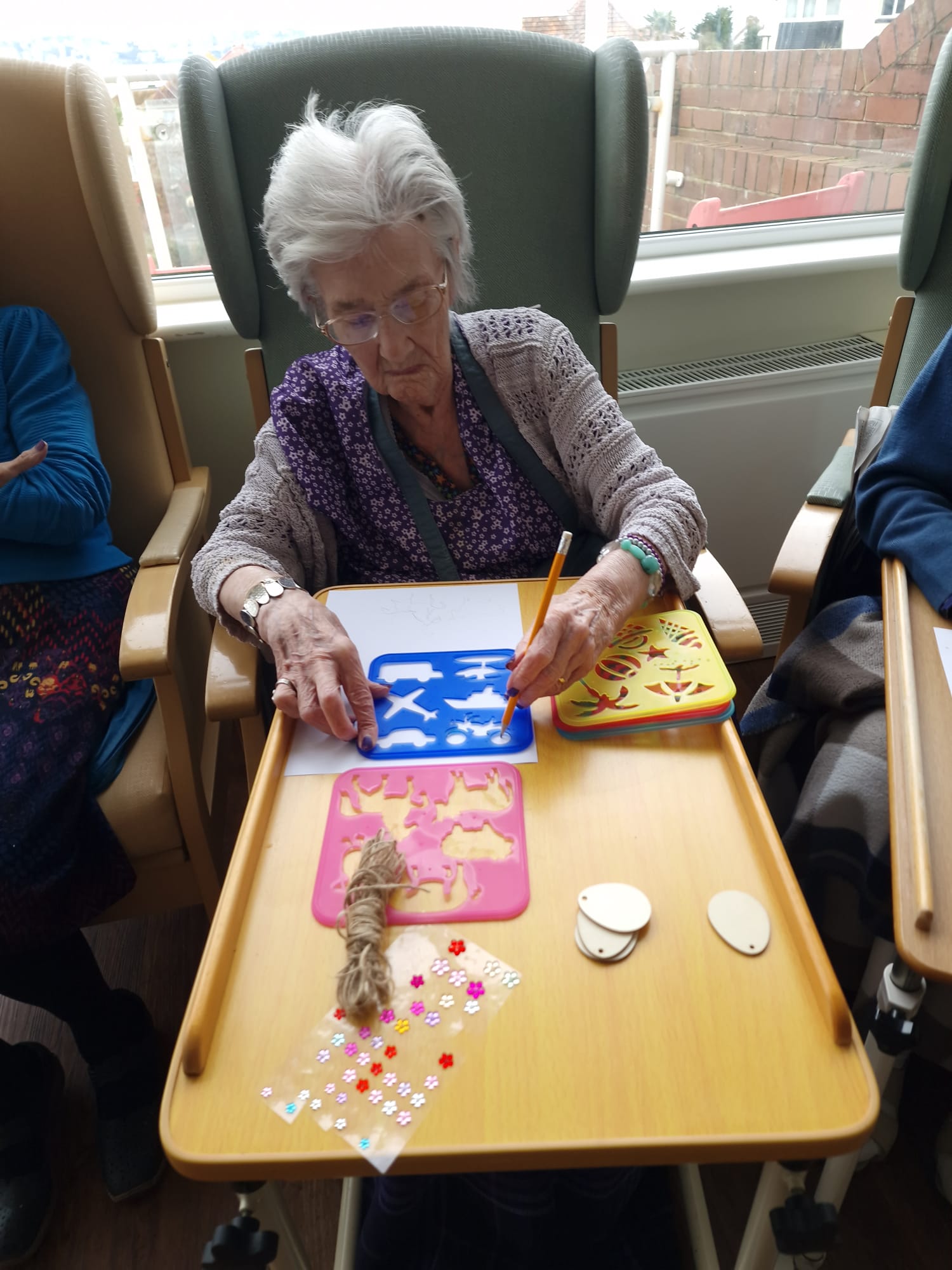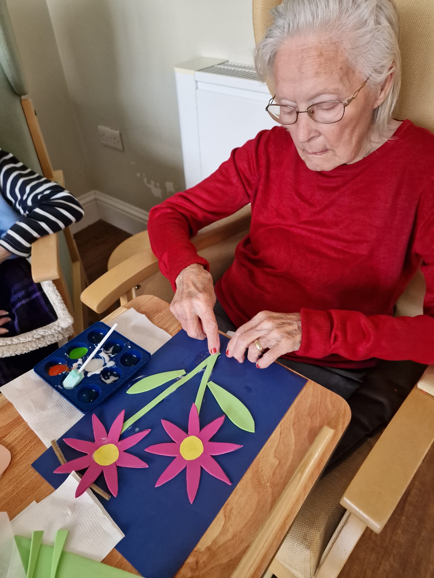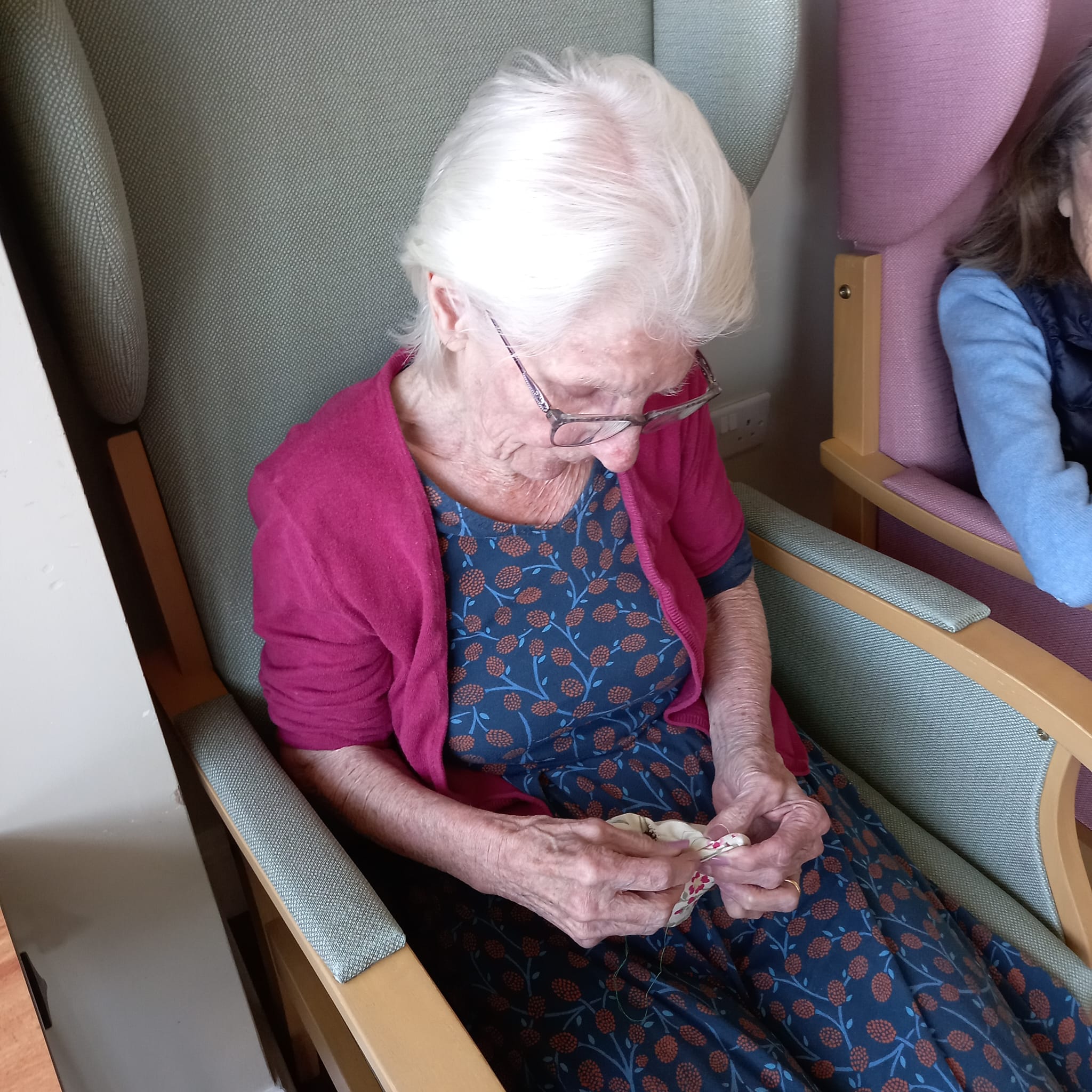 There is a lot of Easter craft going on with Penny having a real go at “knitting Nancy” – I seem to remember I used to have one when I was younger! Greta showed off her sewing repair skills too! Well done to all those who had a go at making bunnies. The spring theme is clearly displayed in our lounges with gorgeous notes of green and yellow around the rooms which we are all enjoying. Dot has enjoyed rummaging the bag of “bits and pieces” and said it was a bag full of memories! We also organised a bus trip to Paignton, Torquay and Babbacombe. The weather was debatable but it was lovely to be able to go out and get some fresh air and a change of scenery. We have also enjoyed the visits of Luke the harpist, Amanda and Chrissie the singers. The Falcon display is coming on Monday at 2.30pm which will be nice for a change.