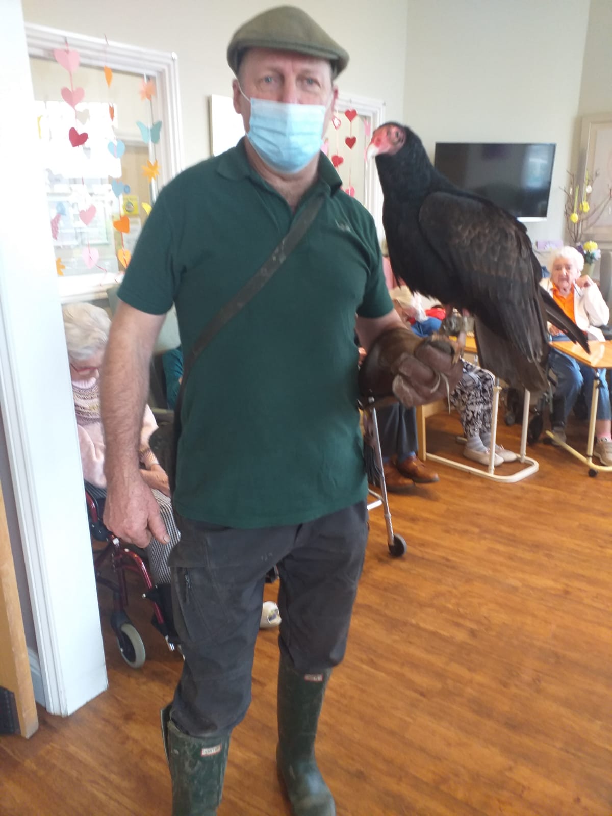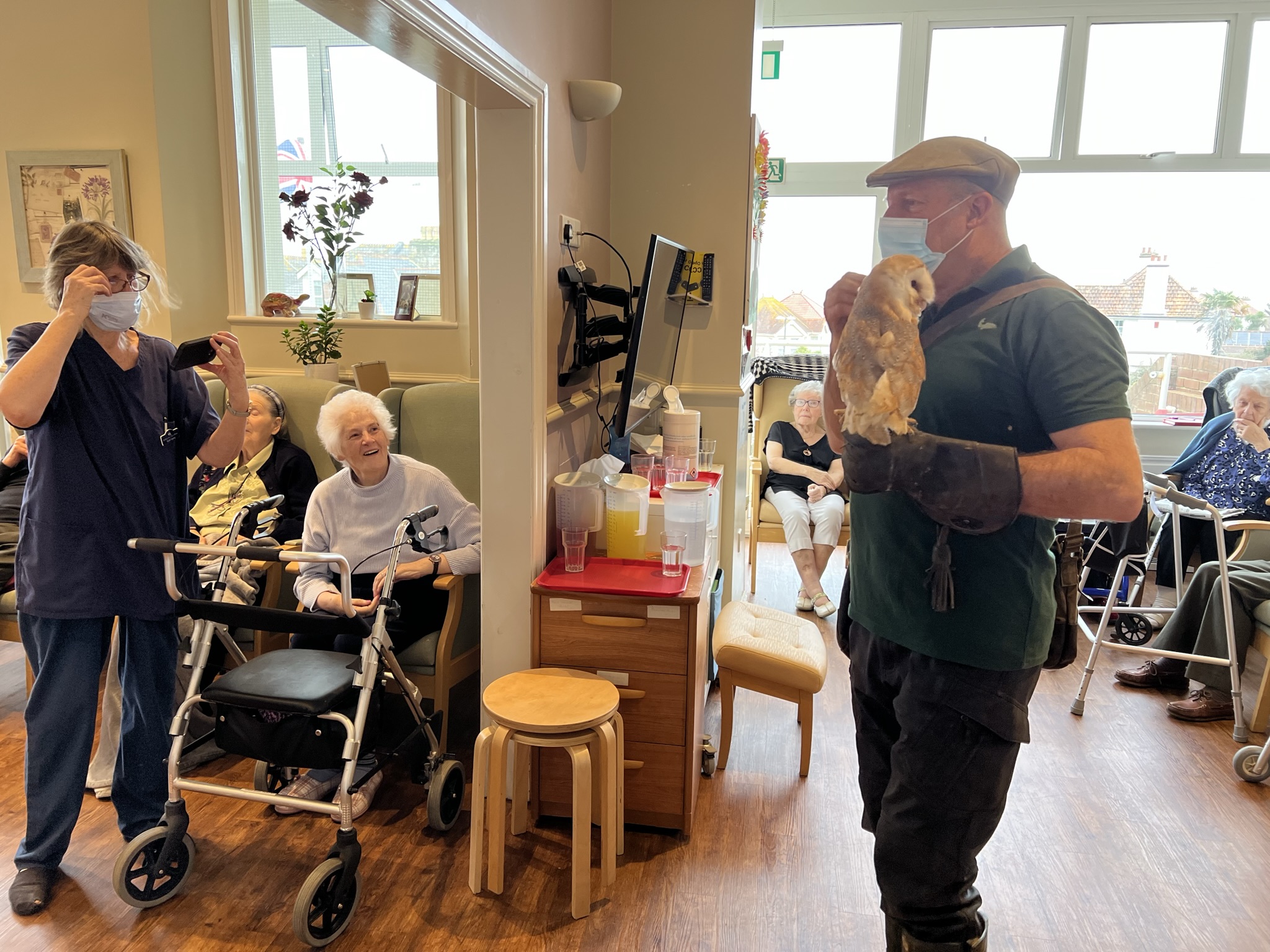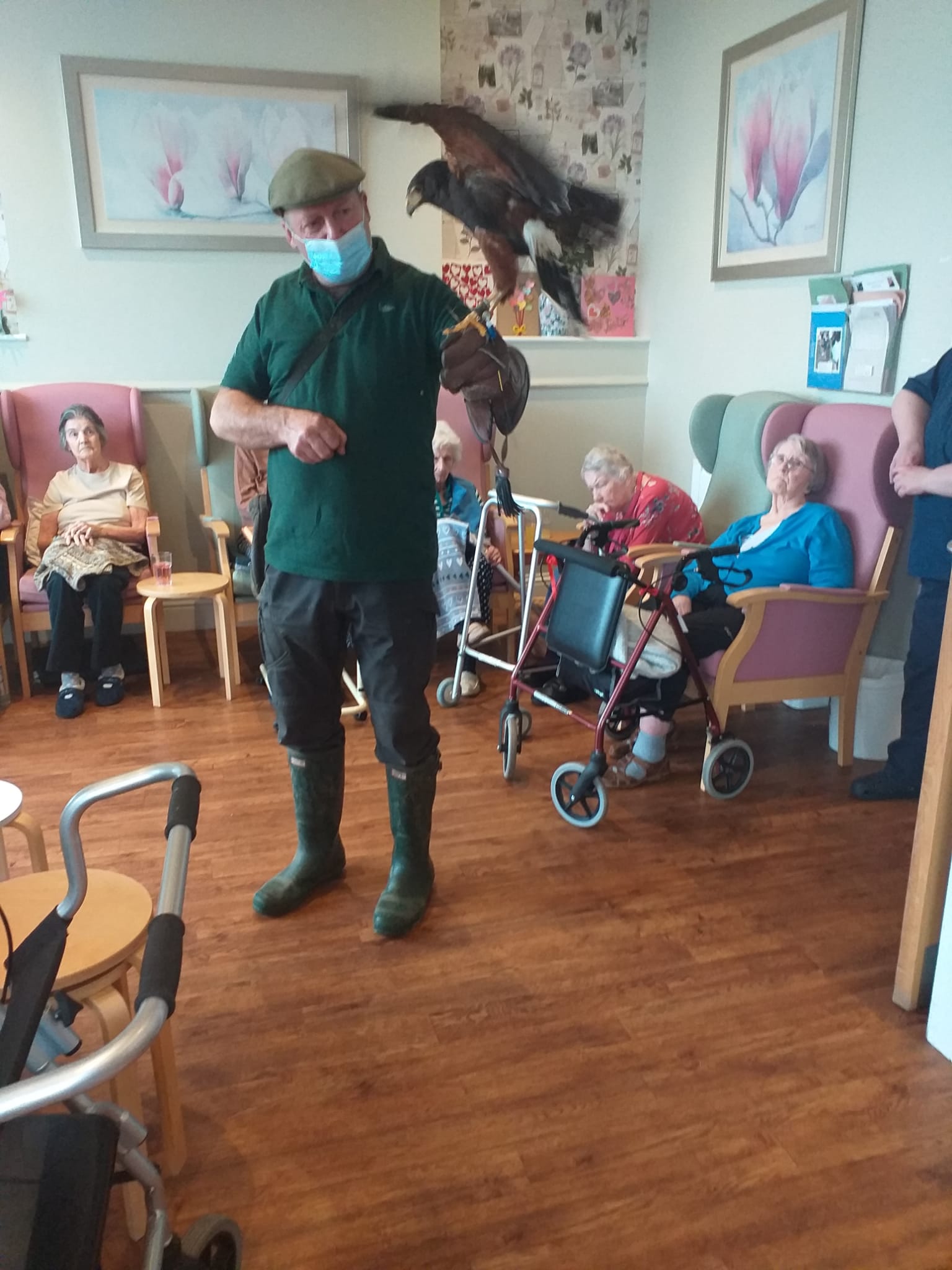 We welcomed the falcon display which gave us a lesson on gorgeous birds of prey. Our residents seemed to be fascinated by them. We also enjoyed Erich who brought her ukulele and sang ( amongst other songs ) happy birthday with our residents to our kitchen manager – talk about being put on the spot!! Finally Luke the Harpist also visited us and played some lovely melodies. He is a very popular entertainer at the home amongst our residents.
