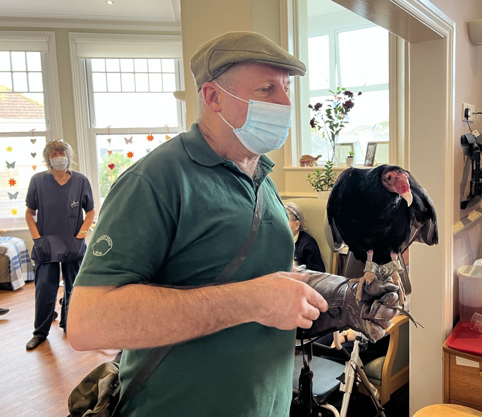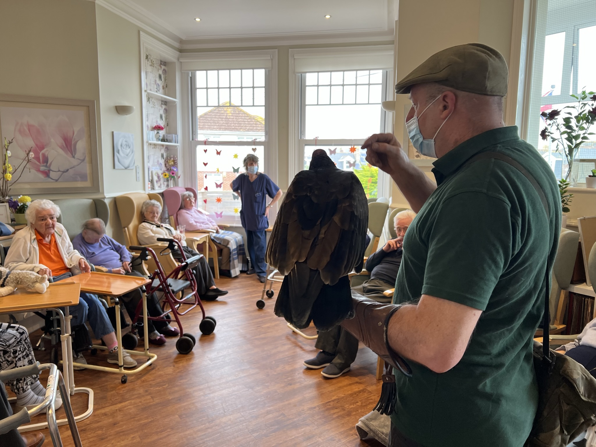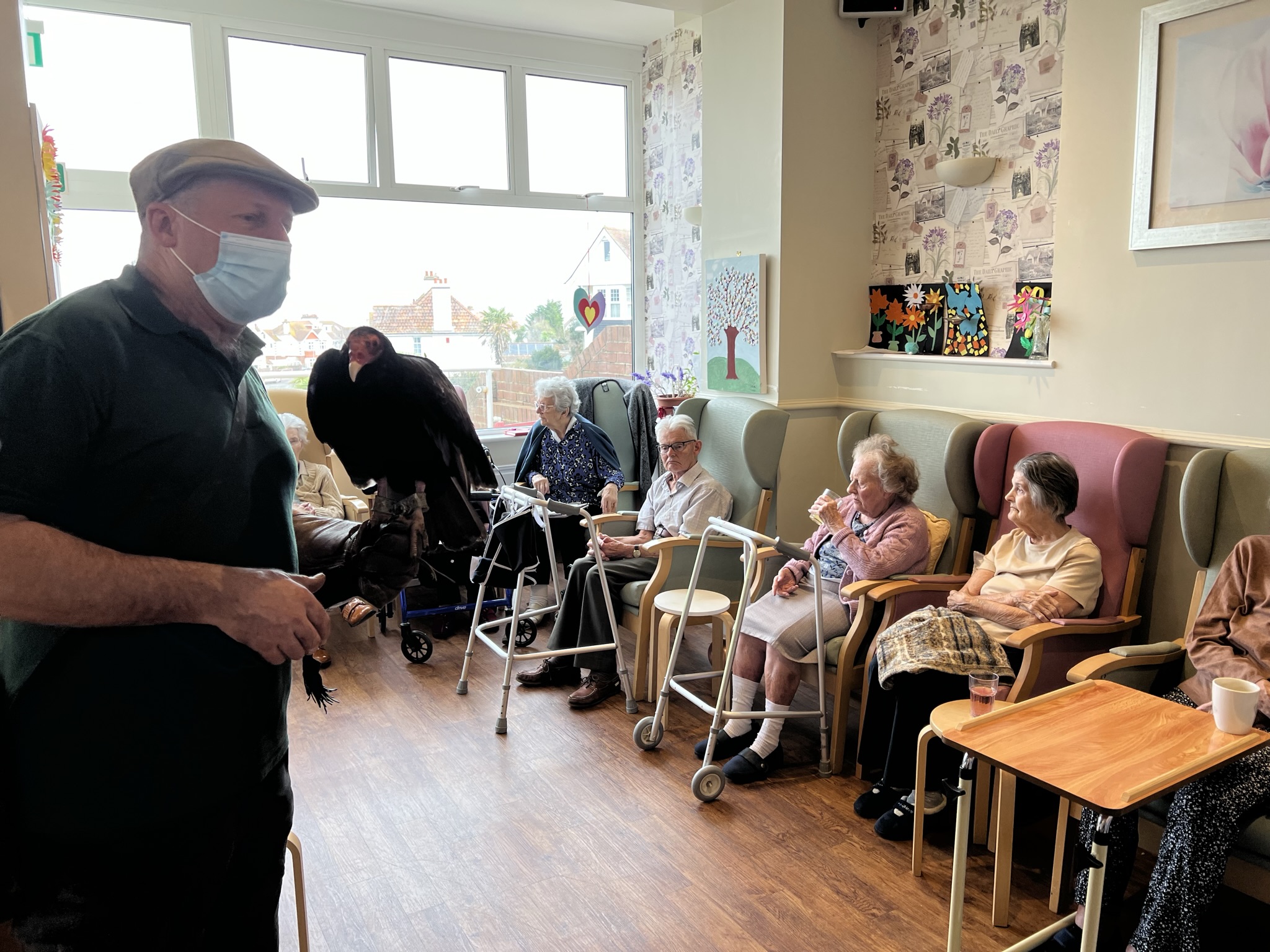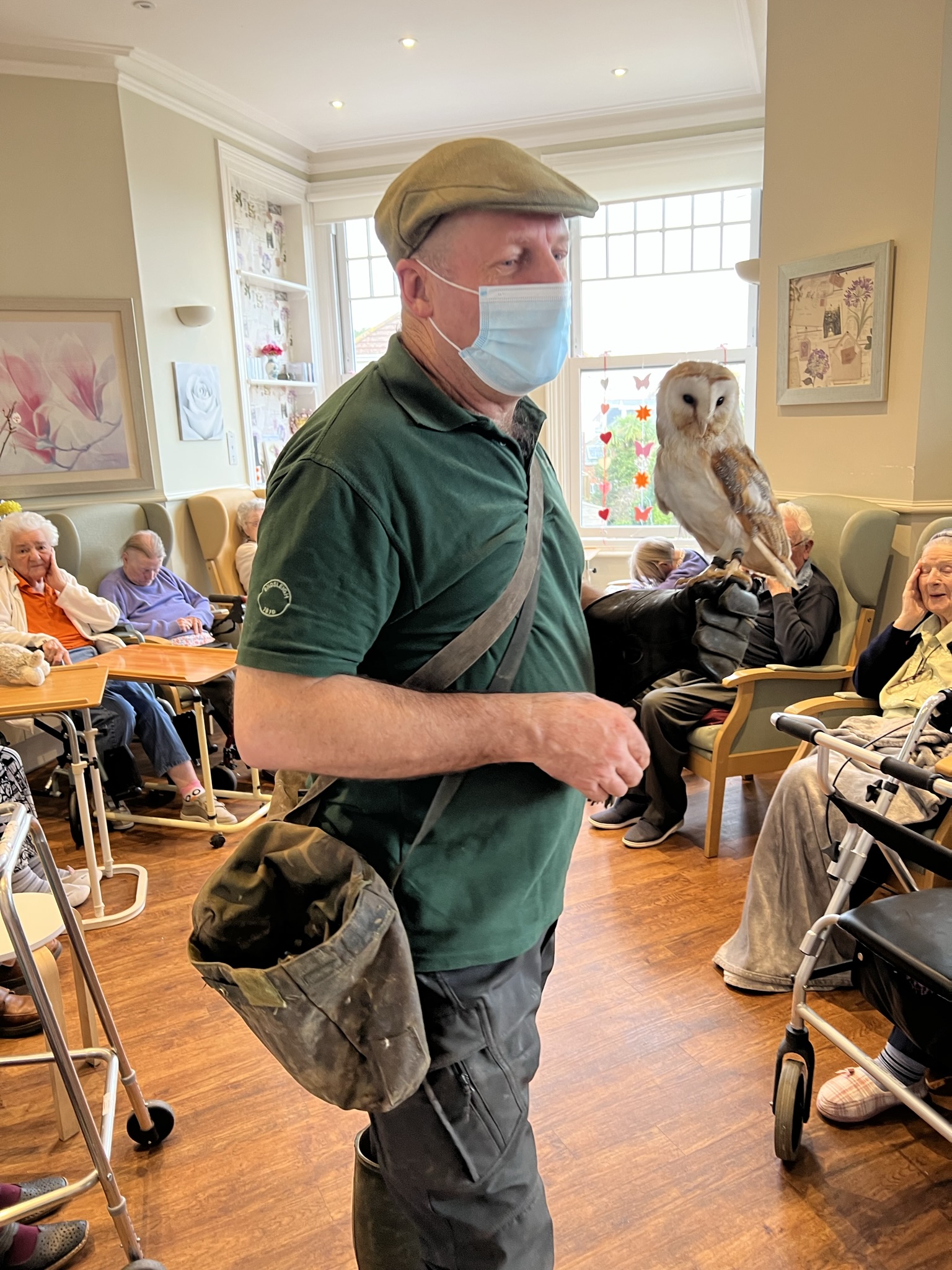 We welcomed the falcon display which gave us a lesson on gorgeous birds of prey. Our residents seemed to be fascinated by them. We also enjoyed Erich who brought her ukulele and sang ( amongst other songs ) happy birthday with our residents to our kitchen manager – talk about being put on the spot!! Finally Luke the Harpist also visited us and played some lovely melodies. He is a very popular entertainer at the home amongst our residents.