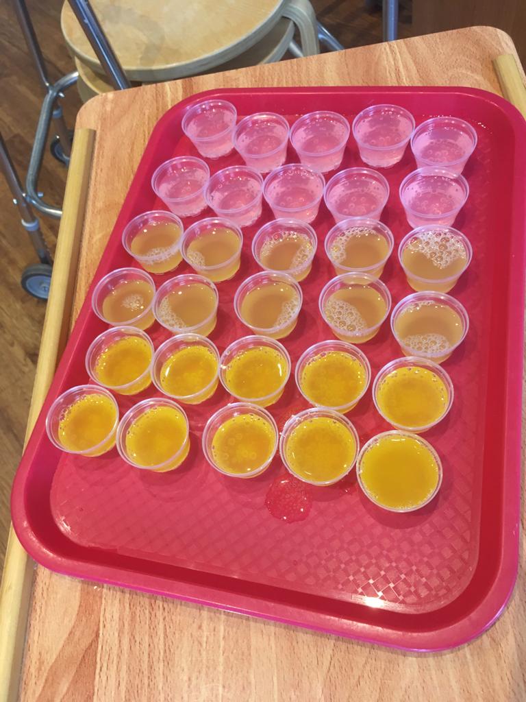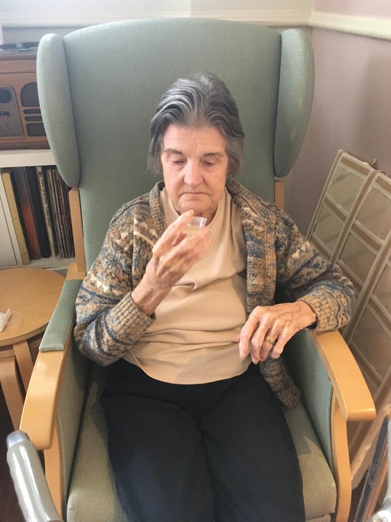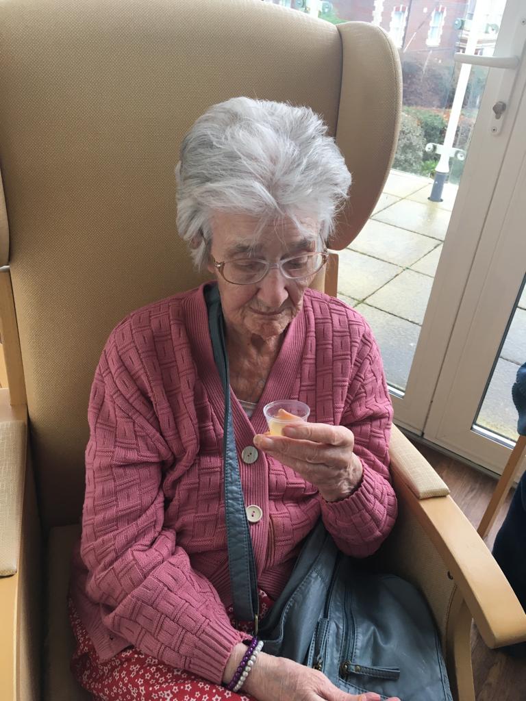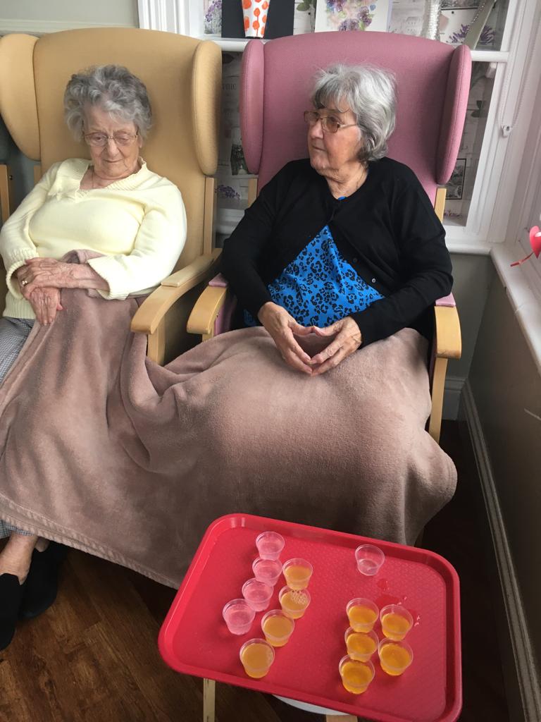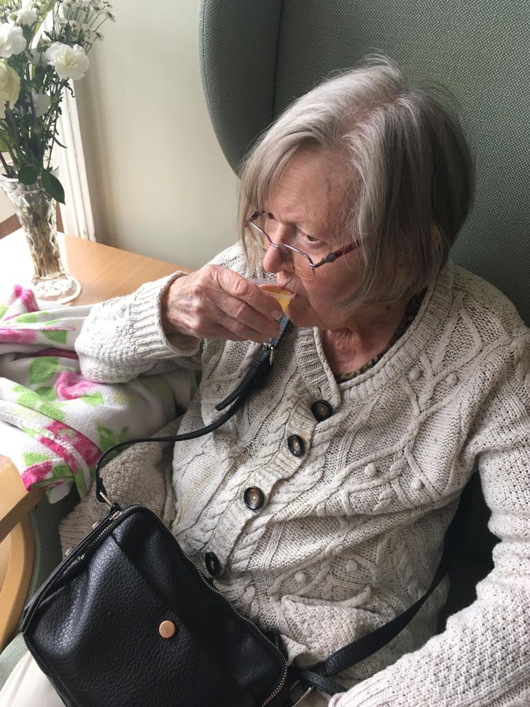 This week was nutrition week and we have been serving our residents a great selection of innovative drinks to assess whether we can stimulate their fluid intake. As we know, the link between good nutrition and wellbeing is not new – we all know that eating and drinking well are key to feeling well. You will notice in our photos that they are testing orange with pink lemonade – looked a bit zingy!! They also had pineapple which was their favourite with fizzy orange a close second.