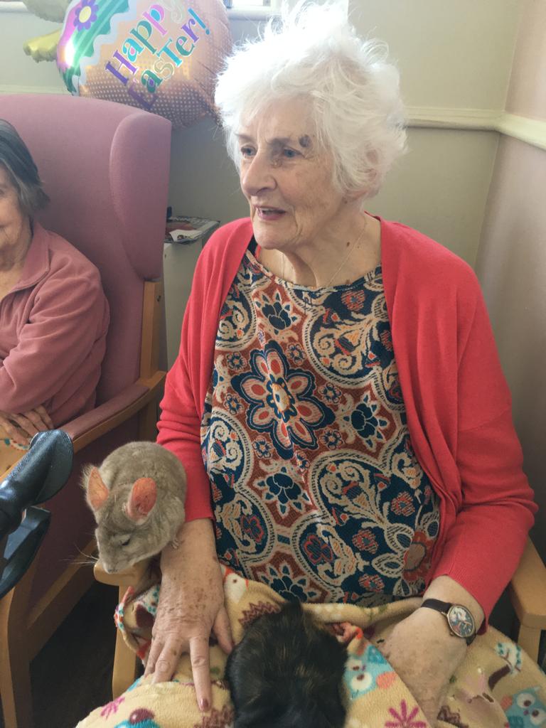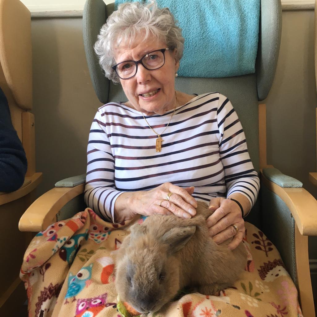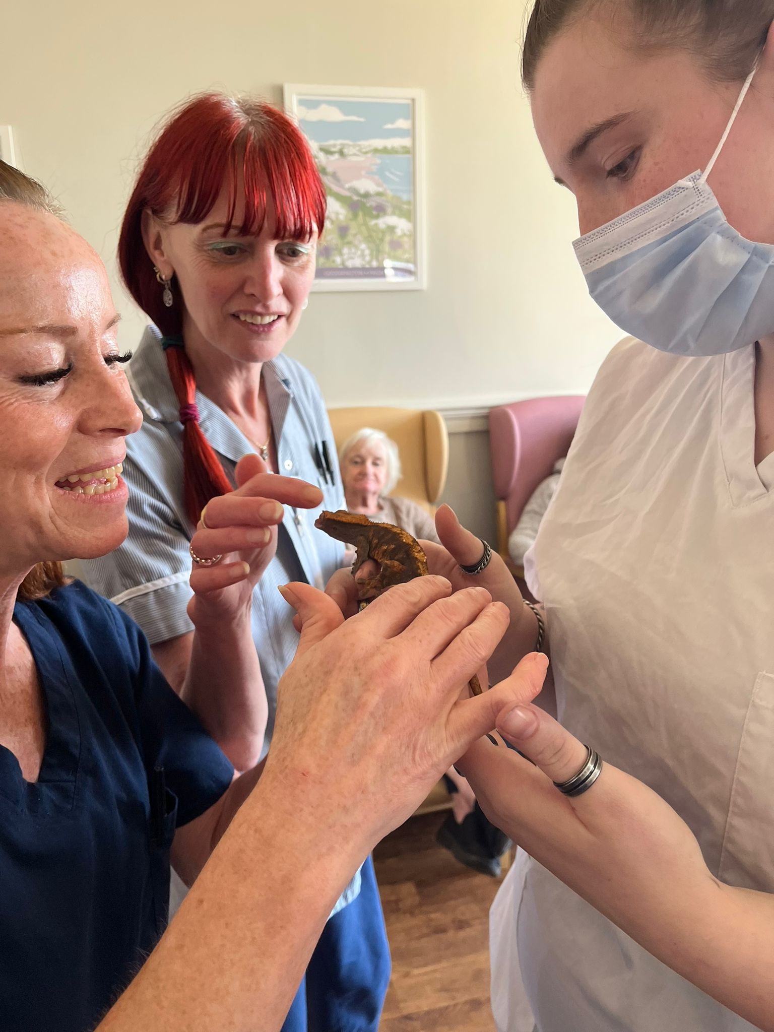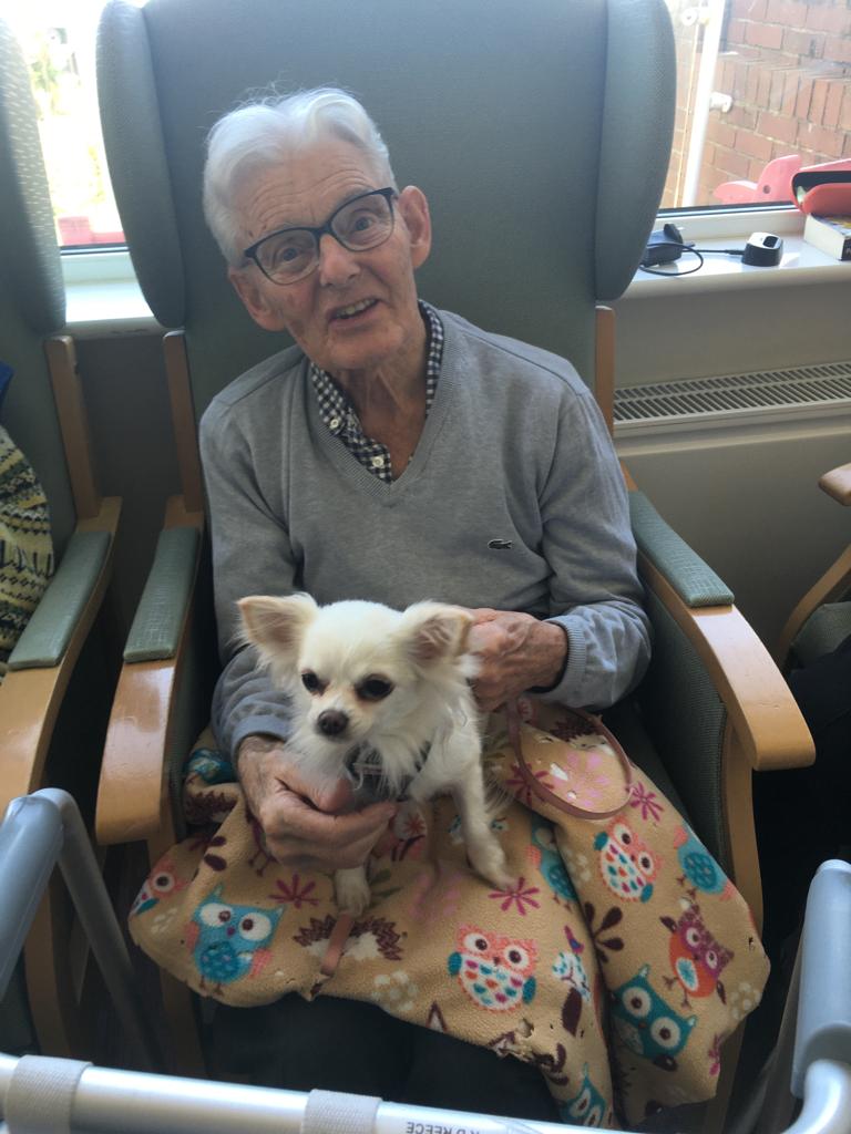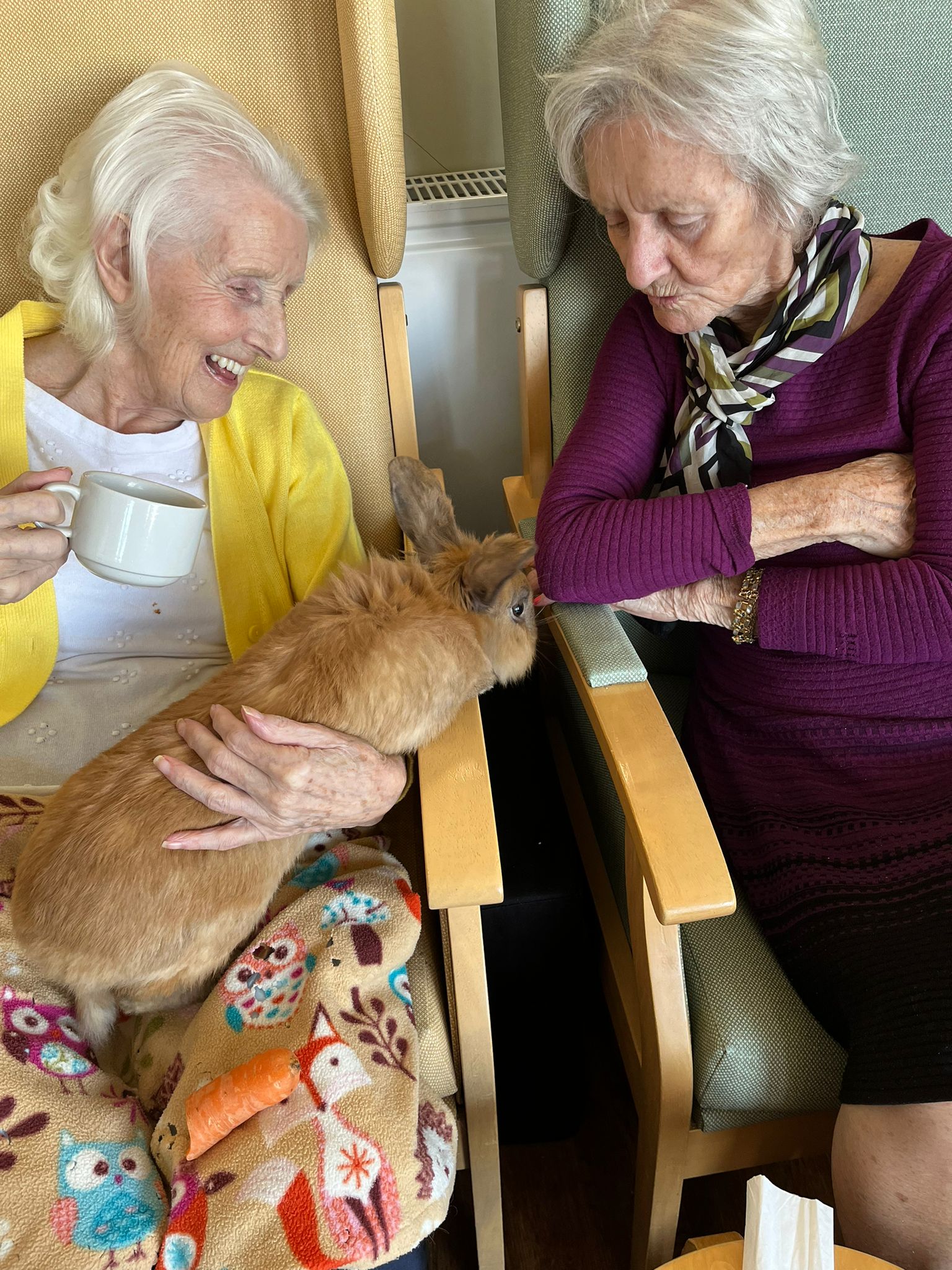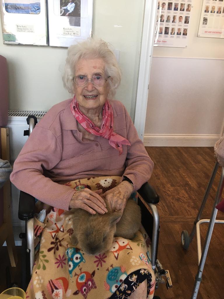 I will start with a bang and talk about the amazing visit we had with the animals on Wednesday. You might have seen some photos already? We had it all: dogs, snakes, tortoise, chihuahua, rabbits, bearded dragon and the rest!! The lovely pets brought so much fun, excitement and love to our lovely residents who could not stop laughing. Even our members of staff joined it – what a fabulous afternoon it was and we will book them again within the month! The lovely touch was that some of the pets were able to visit our residents in their room.
