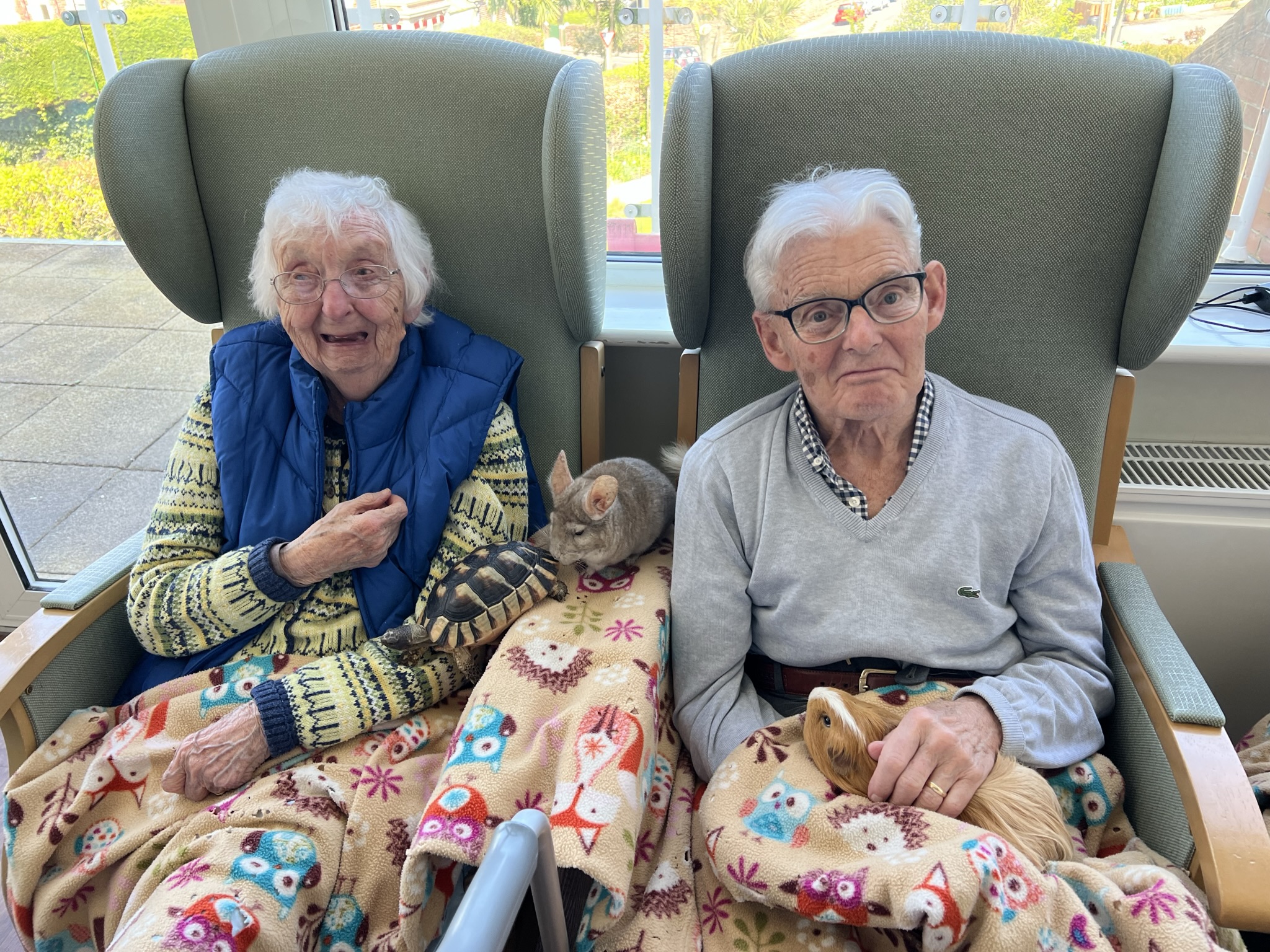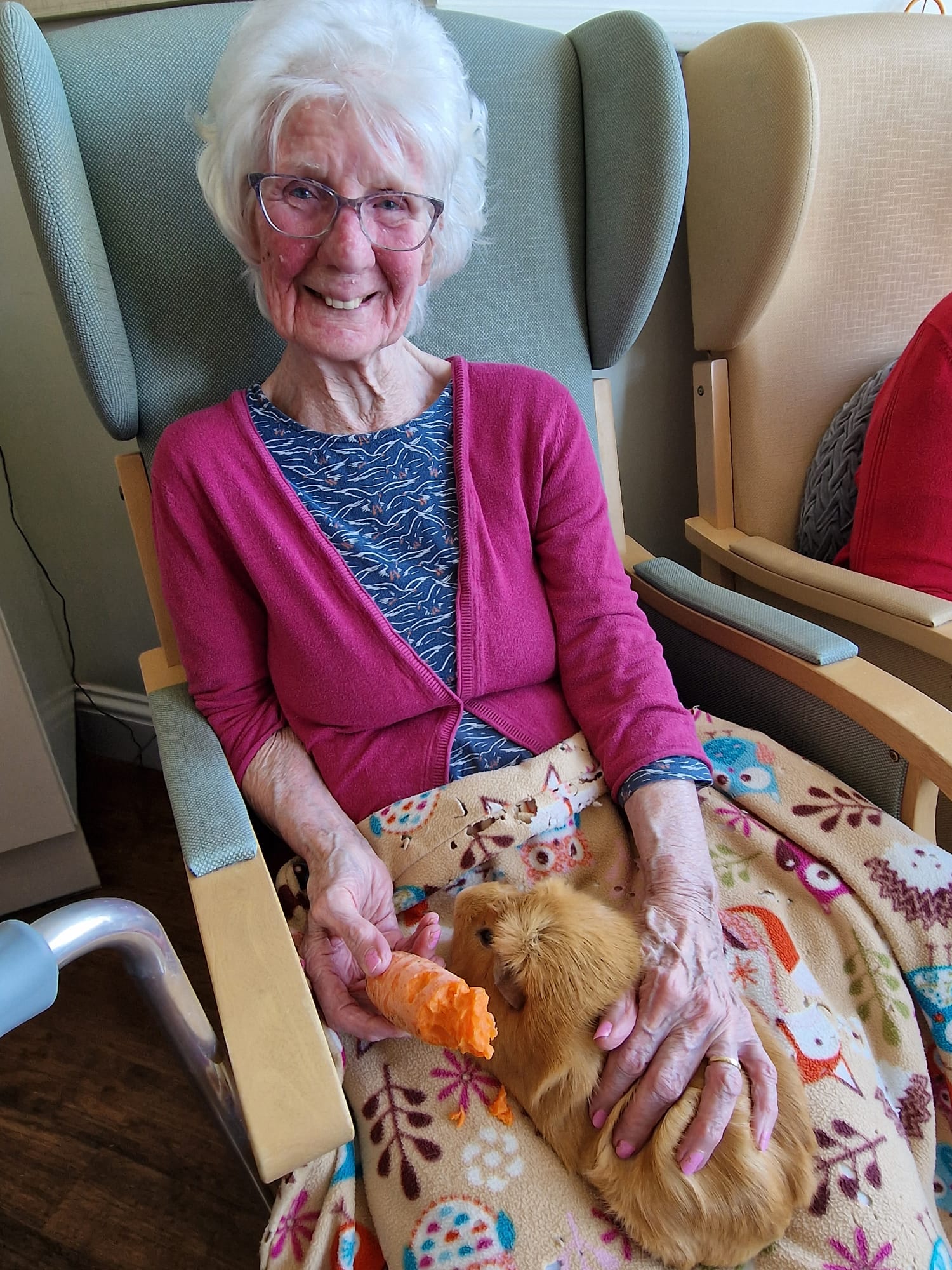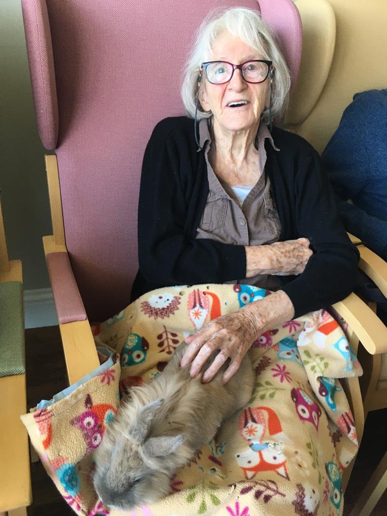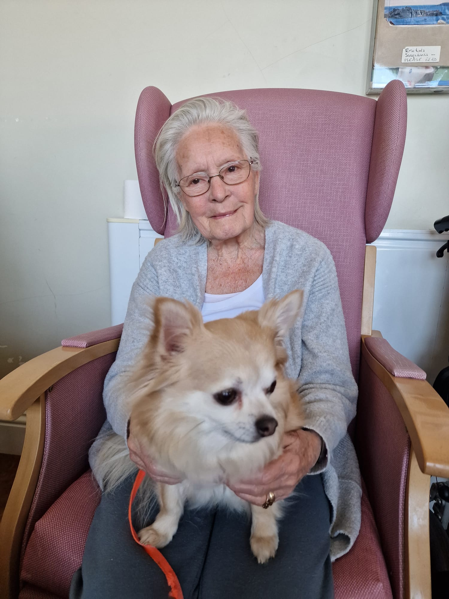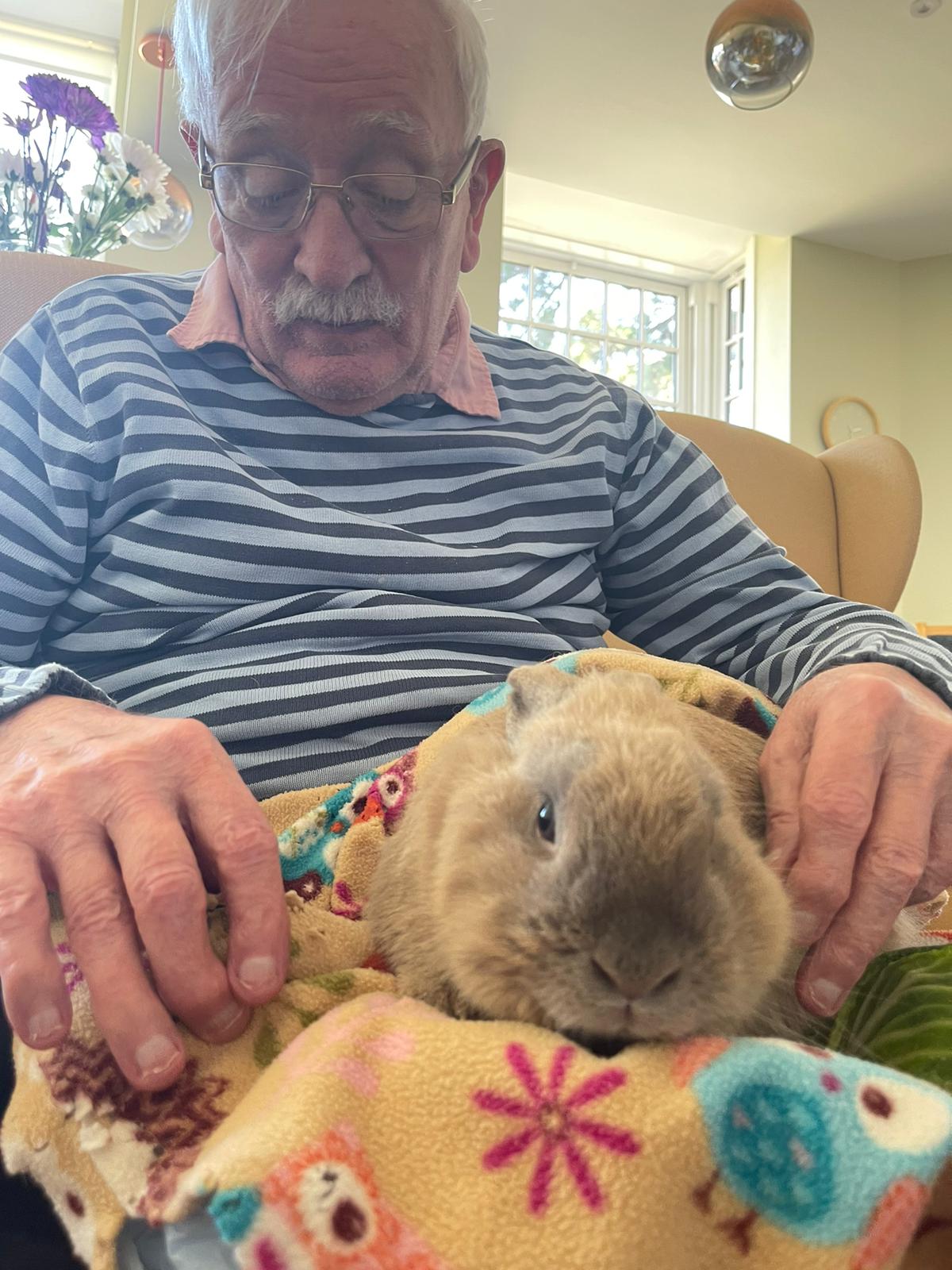 I will start with a bang and talk about the amazing visit we had with the animals on Wednesday. You might have seen some photos already? We had it all: dogs, snakes, tortoise, chihuahua, rabbits, bearded dragon and the rest!! The lovely pets brought so much fun, excitement and love to our lovely residents who could not stop laughing. Even our members of staff joined it – what a fabulous afternoon it was and we will book them again within the month! The lovely touch was that some of the pets were able to visit our residents in their room.