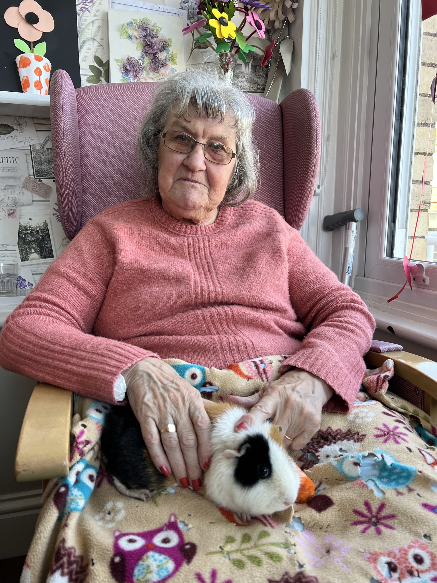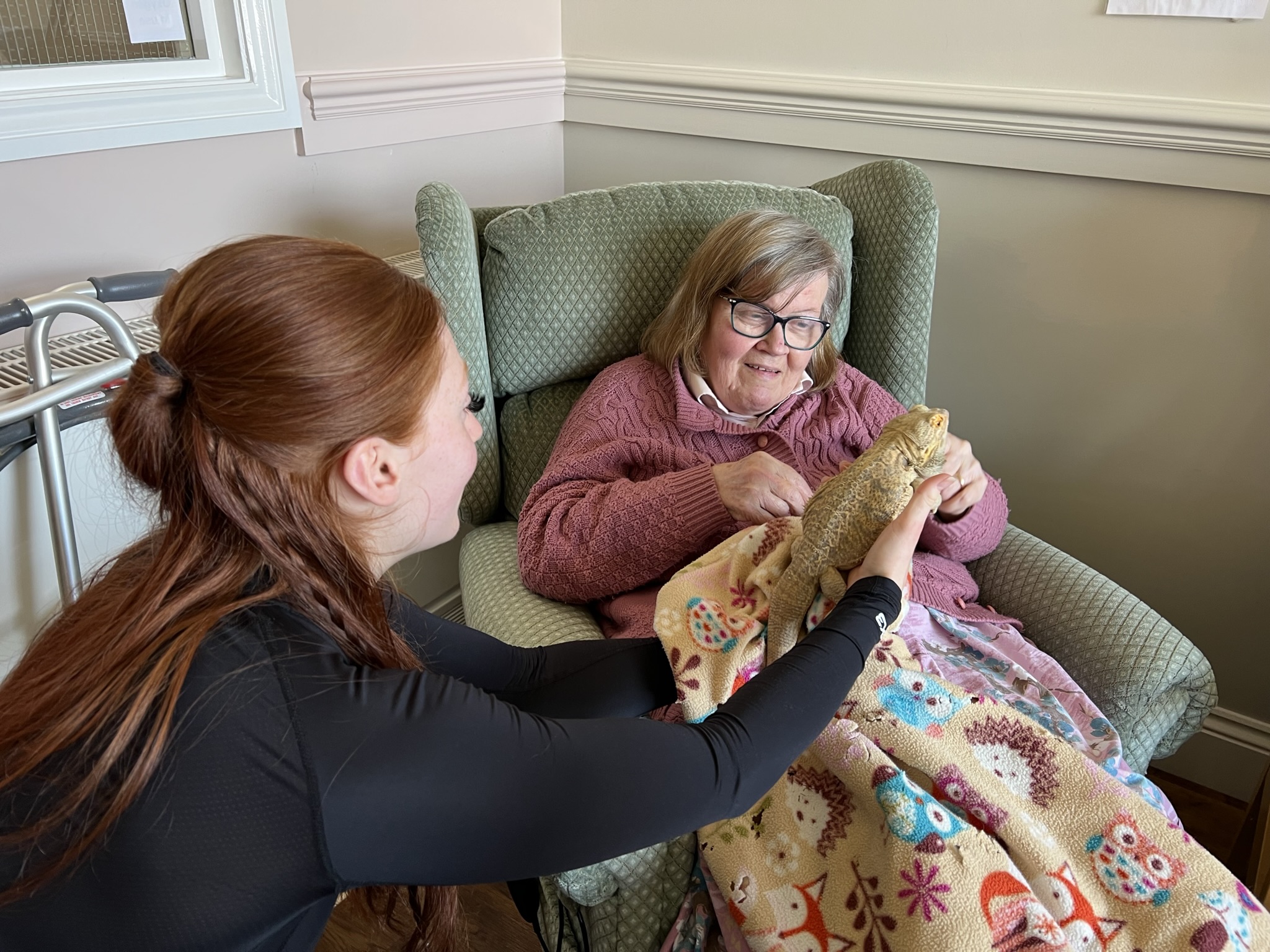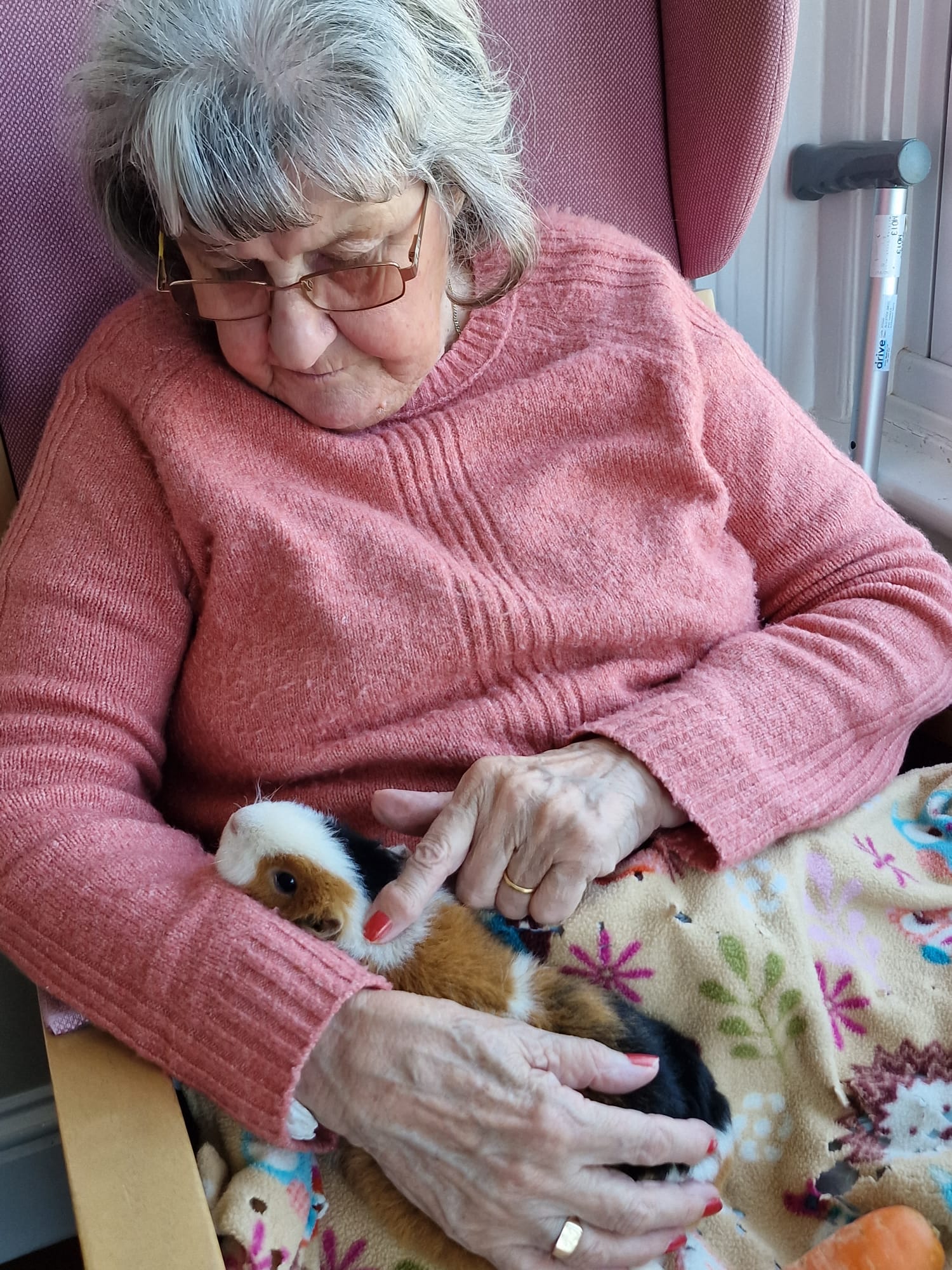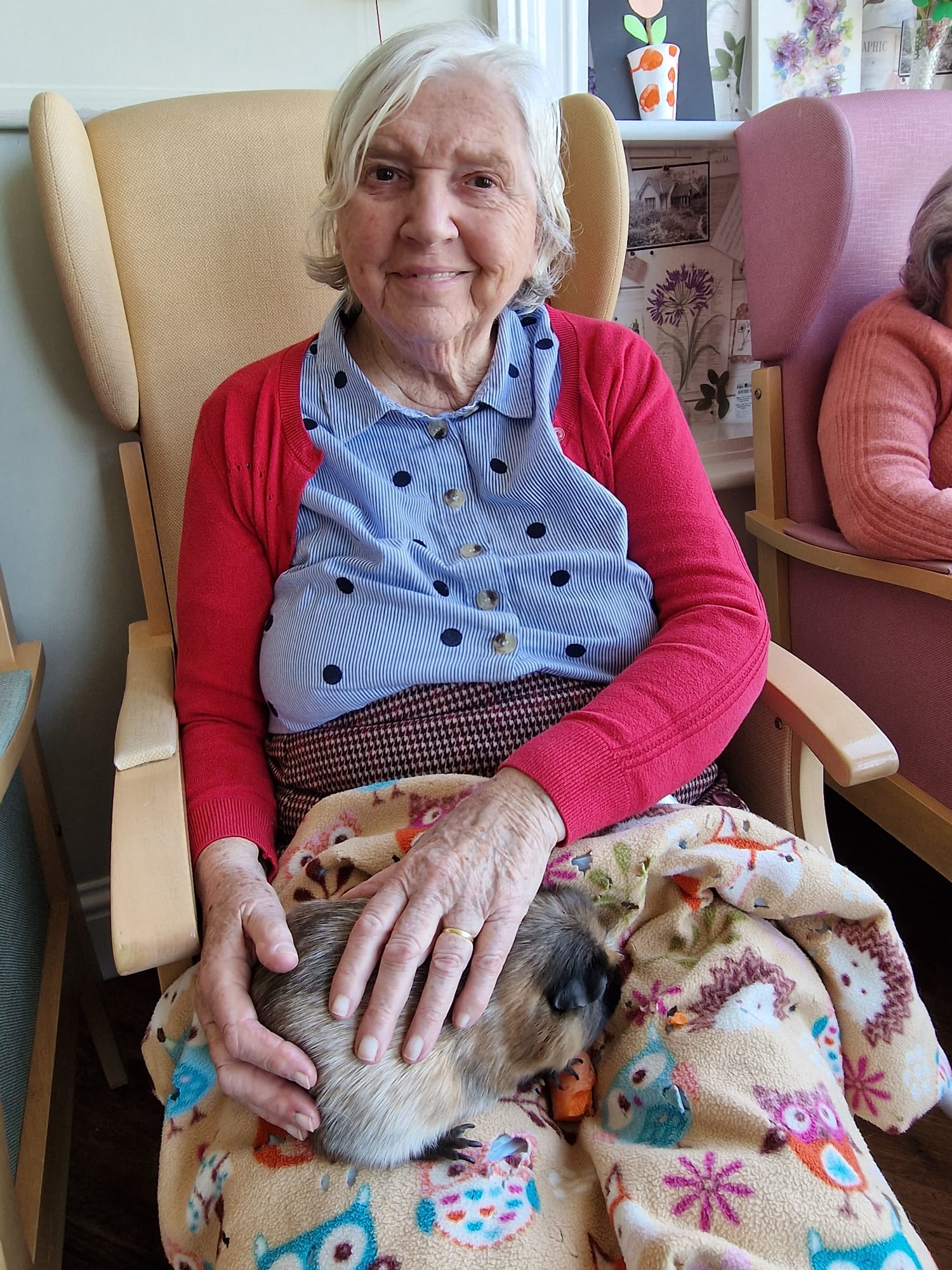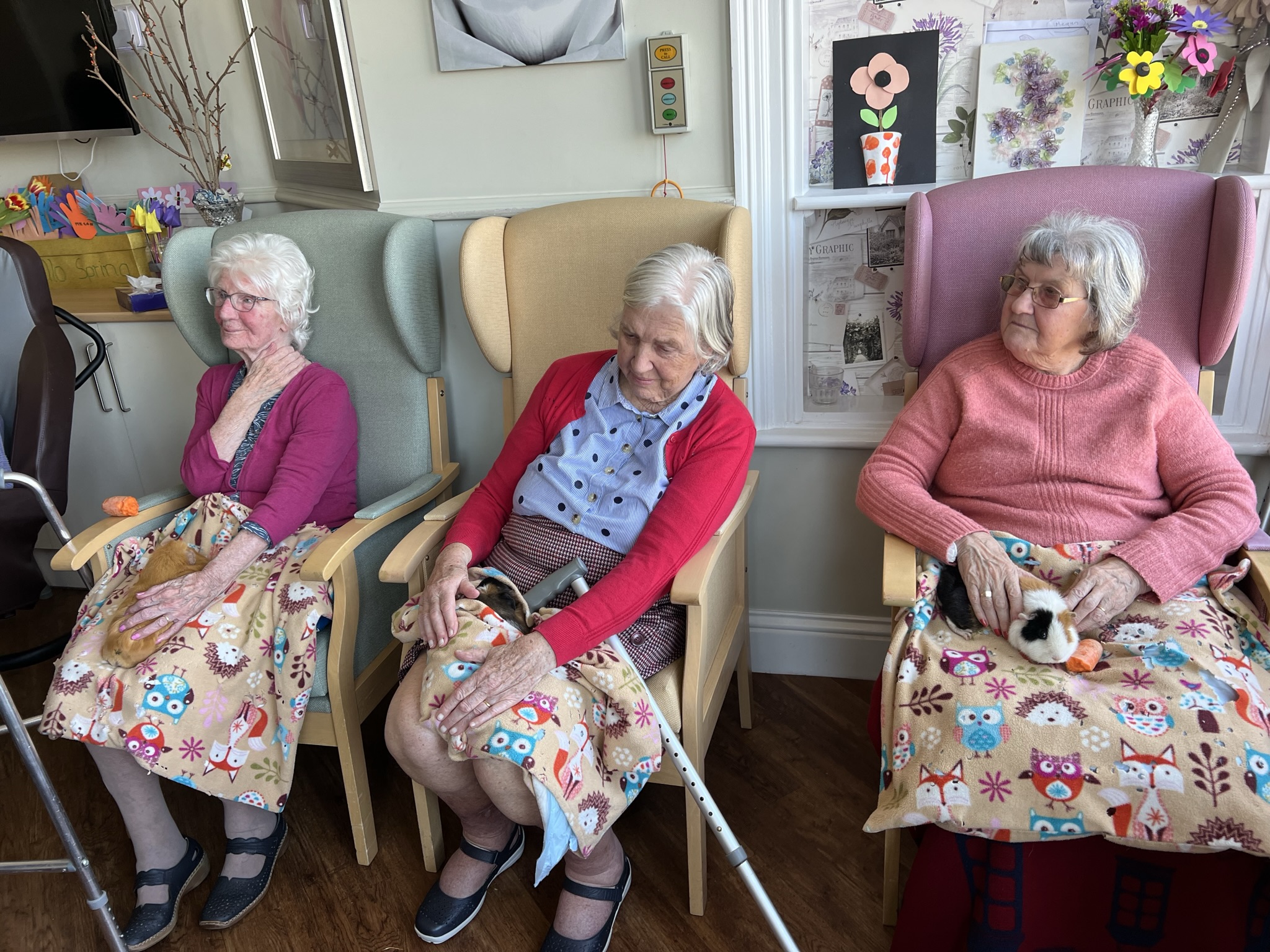 I will start with a bang and talk about the amazing visit we had with the animals on Wednesday. You might have seen some photos already? We had it all: dogs, snakes, tortoise, chihuahua, rabbits, bearded dragon and the rest!! The lovely pets brought so much fun, excitement and love to our lovely residents who could not stop laughing. Even our members of staff joined it – what a fabulous afternoon it was and we will book them again within the month! The lovely touch was that some of the pets were able to visit our residents in their room.