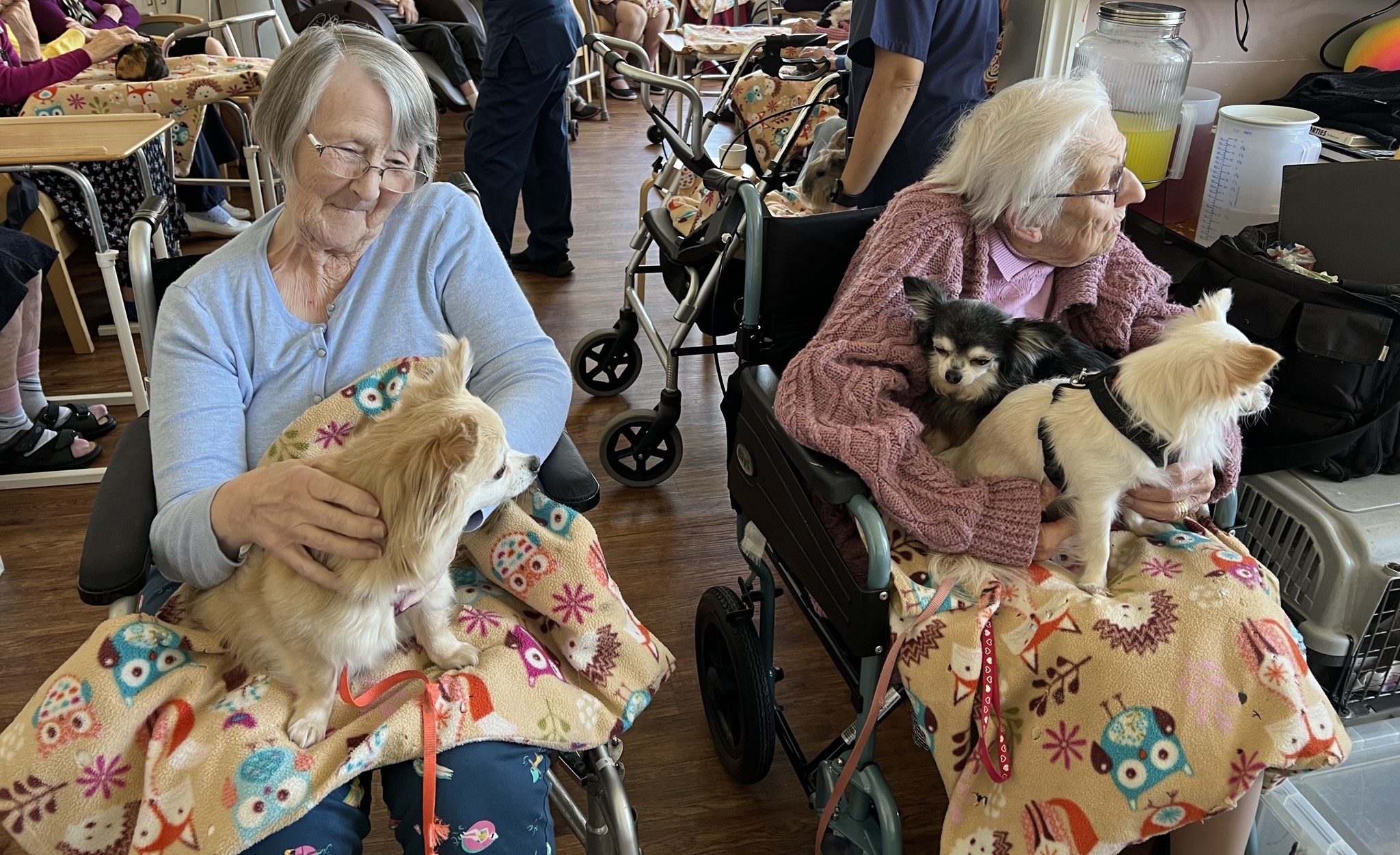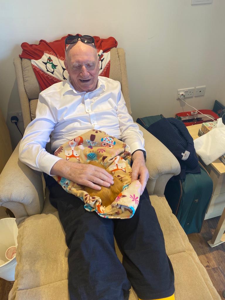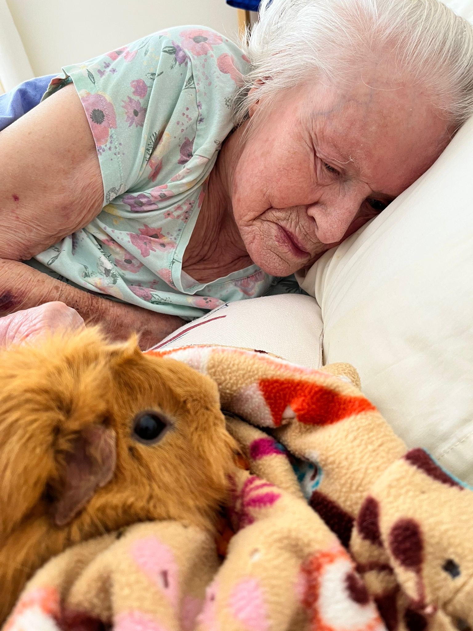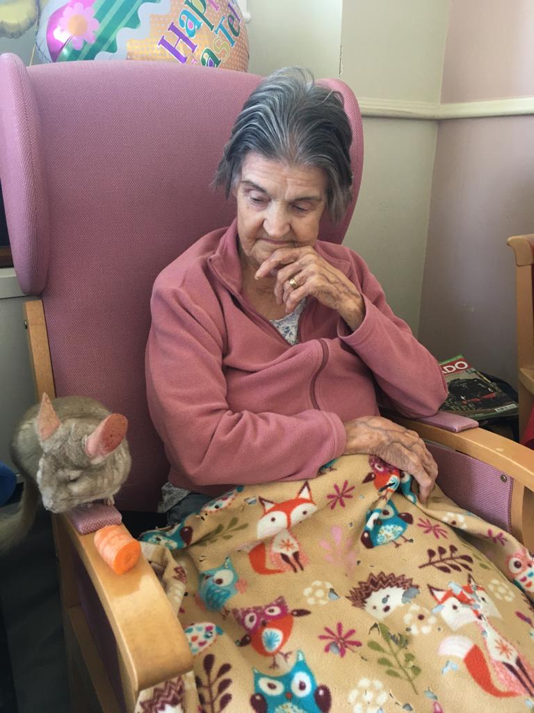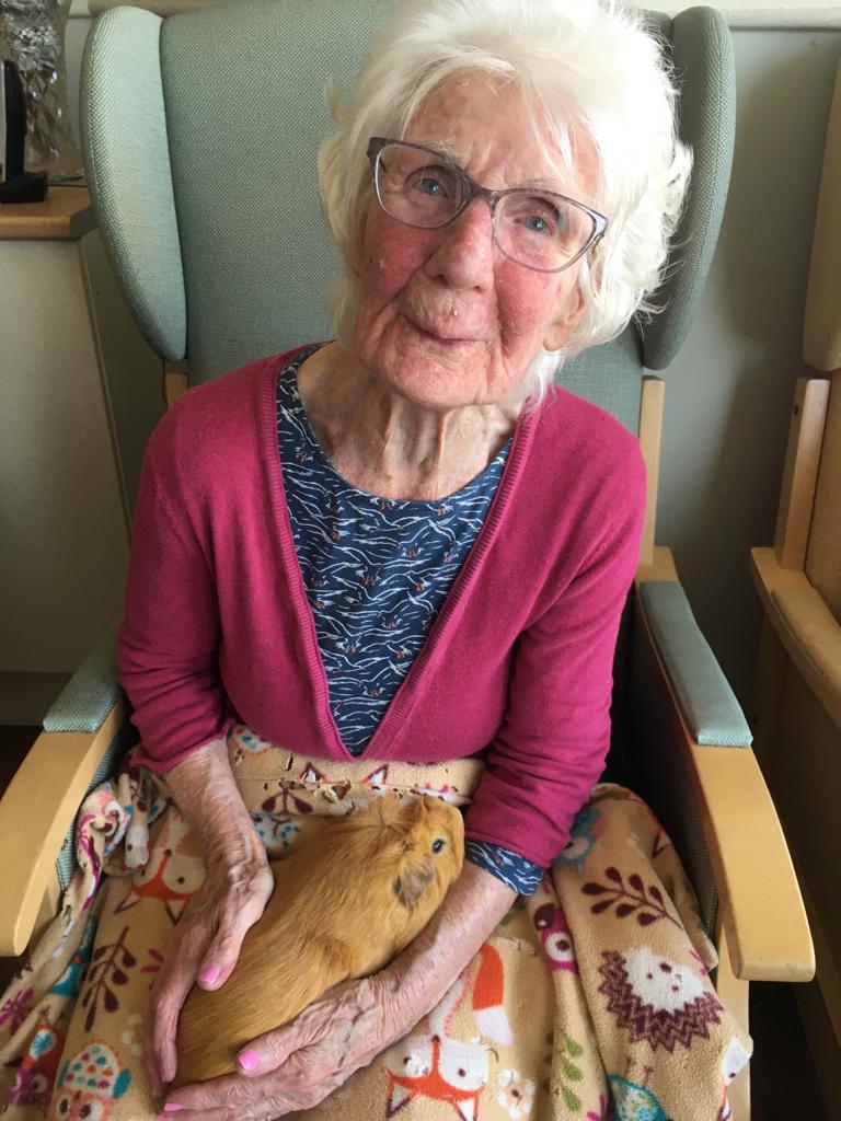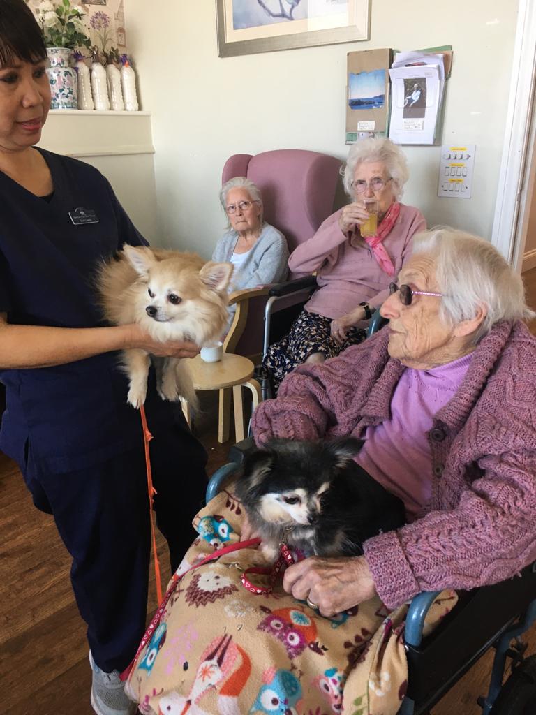 I will start with a bang and talk about the amazing visit we had with the animals on Wednesday. You might have seen some photos already? We had it all: dogs, snakes, tortoise, chihuahua, rabbits, bearded dragon and the rest!! The lovely pets brought so much fun, excitement and love to our lovely residents who could not stop laughing. Even our members of staff joined it – what a fabulous afternoon it was and we will book them again within the month! The lovely touch was that some of the pets were able to visit our residents in their room.