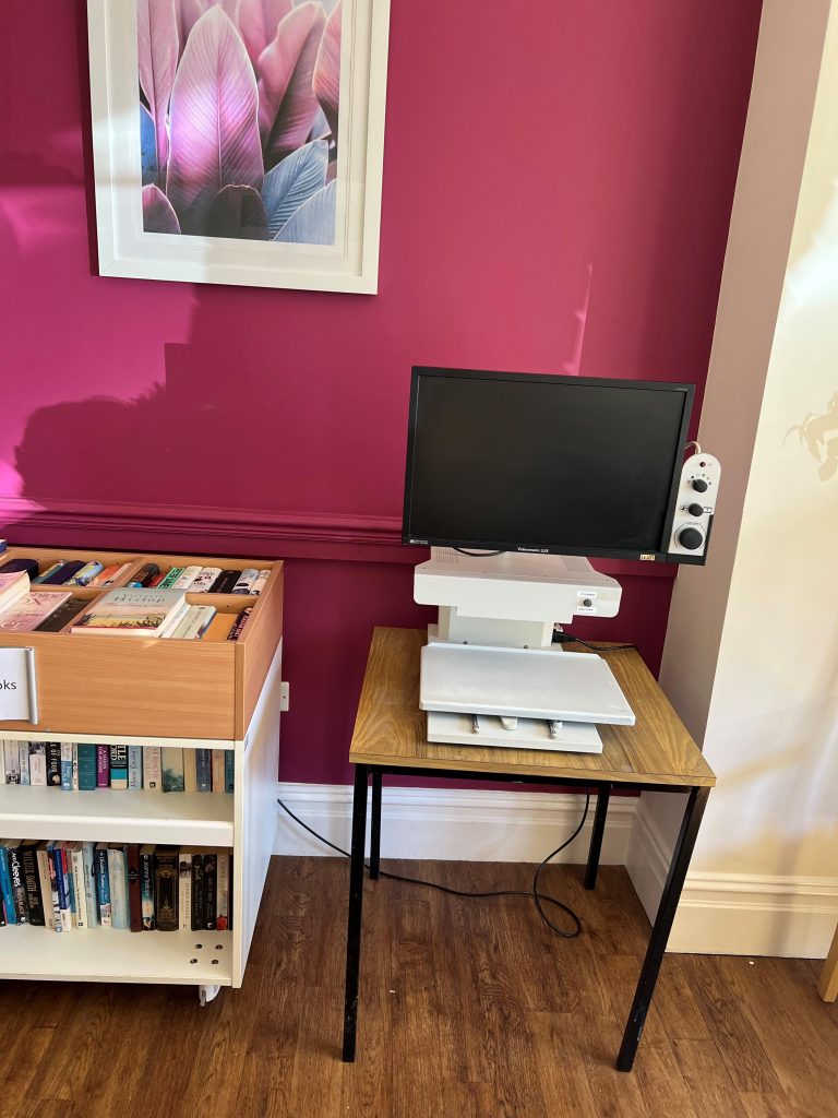Some of you might be aware of this but we have a magnifier in the café which is an amazing piece of kit! It is basically a digital magnifier that can help you zoom in on books, photos etc. You can zoom in / out, change the colours and contrast if this helps you see better. We know it will be amazing for some of you as it will allow you to reminisce. We placed it in a central location in the café , please do use it! I am a huge fan as my Mother uses one and “could not live without it”. Ian our maintenance assistant has put together a “how to use” guide which is laminated and presented by the magnifier. We would love to hear from you in terms of how you are finding it and how helpful you and your relative find it.