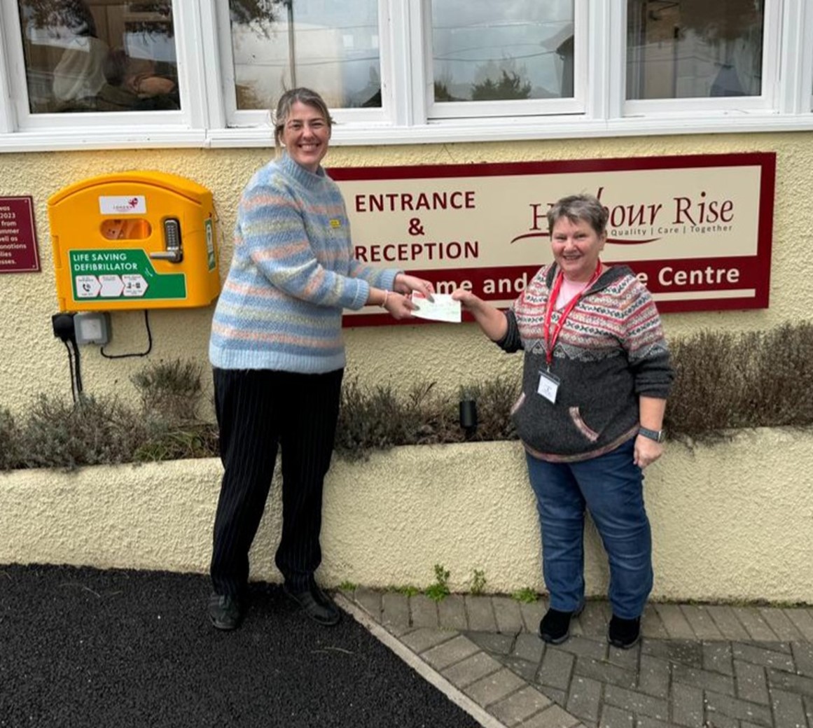 Please see the below photo of Mrs Julia Welch, the registered Manager of Harbour Rise presenting Su Garrod with a cheque for £150.